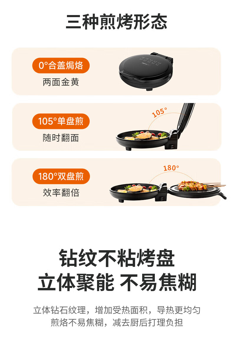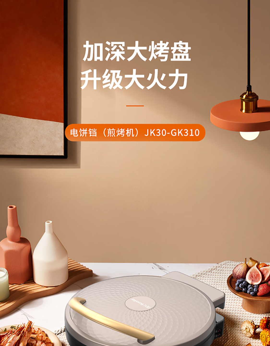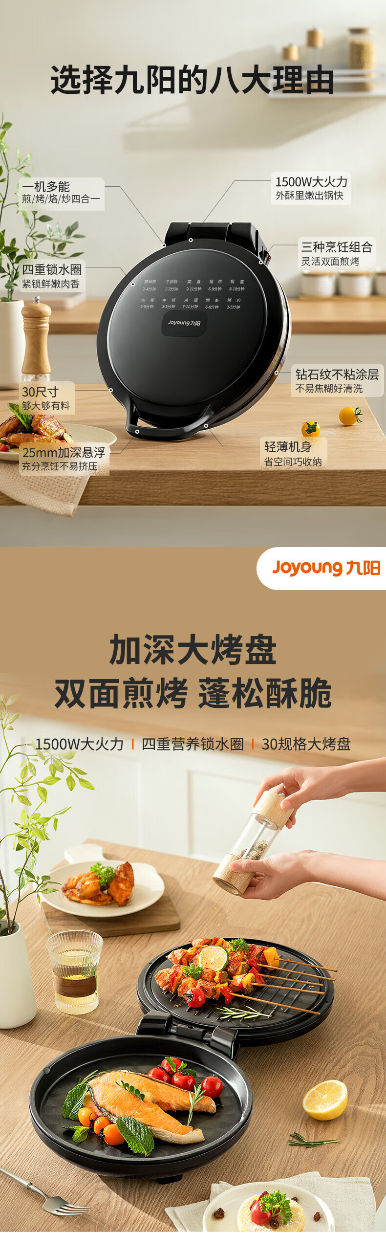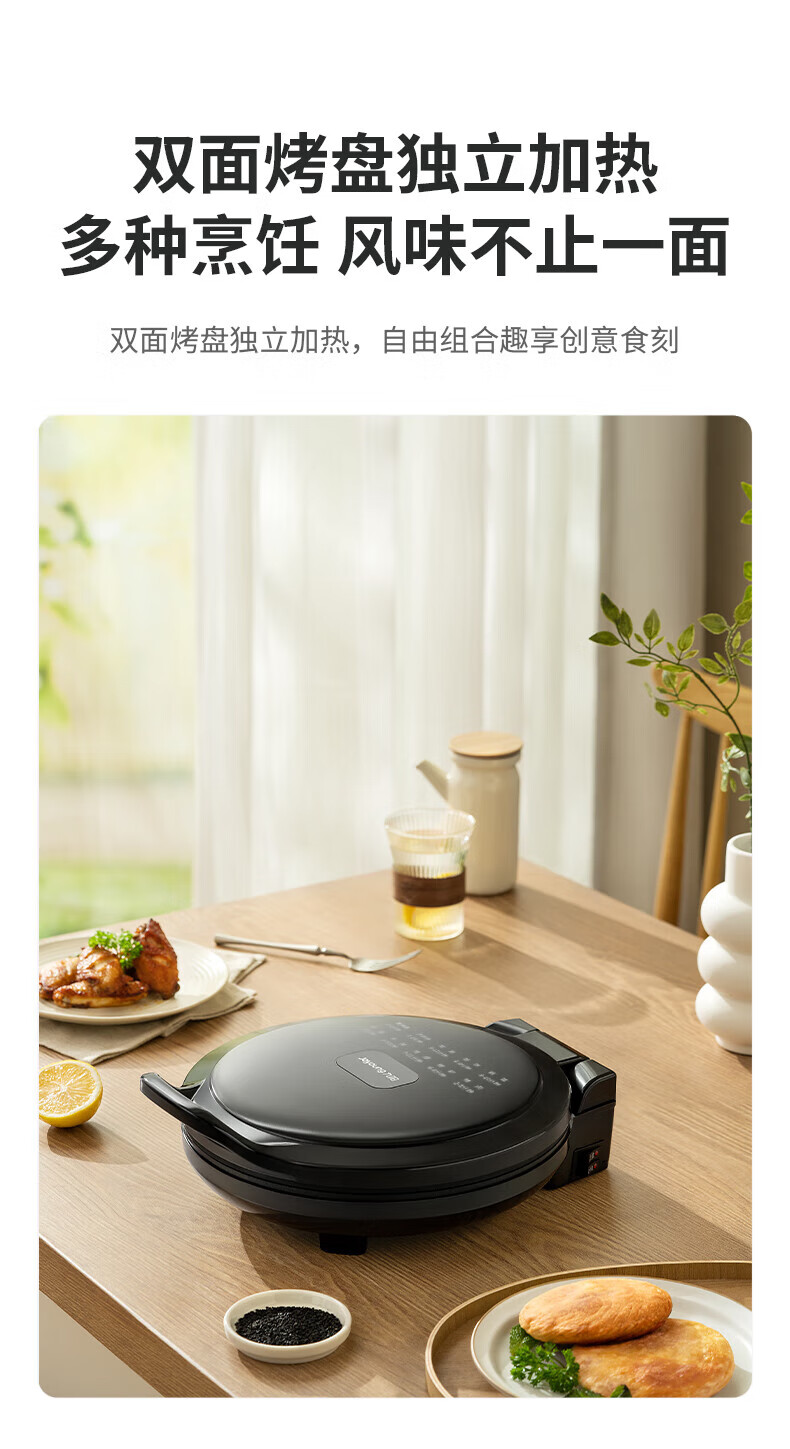 九阳(Joyoung)电饼铛 多功能煎饼机大容量双面加热多功能煎烤机 悬浮式不粘烤盘烙饼机 JK23-GK655