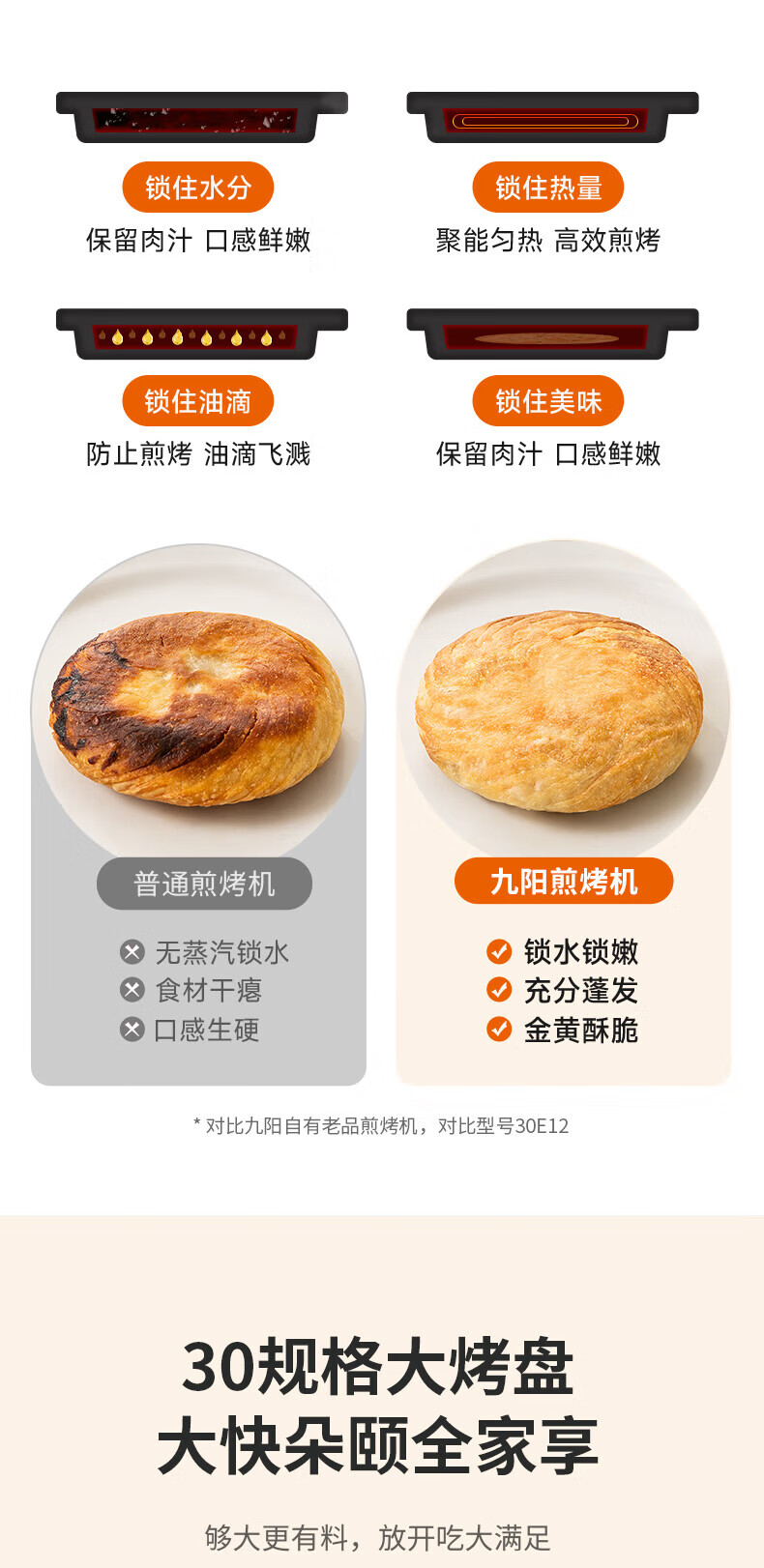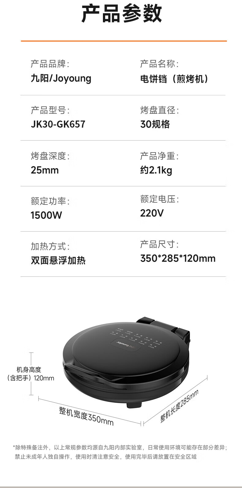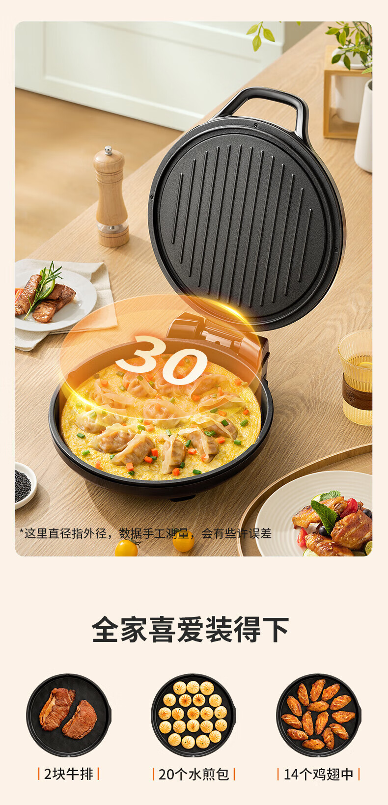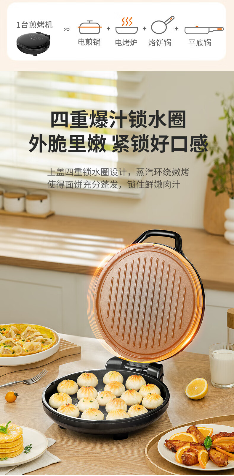 九阳(Joyoung)电饼铛 多功能煎饼机大容量双面加热多功能煎烤机 悬浮式不粘烤盘烙饼机 JK23-GK655