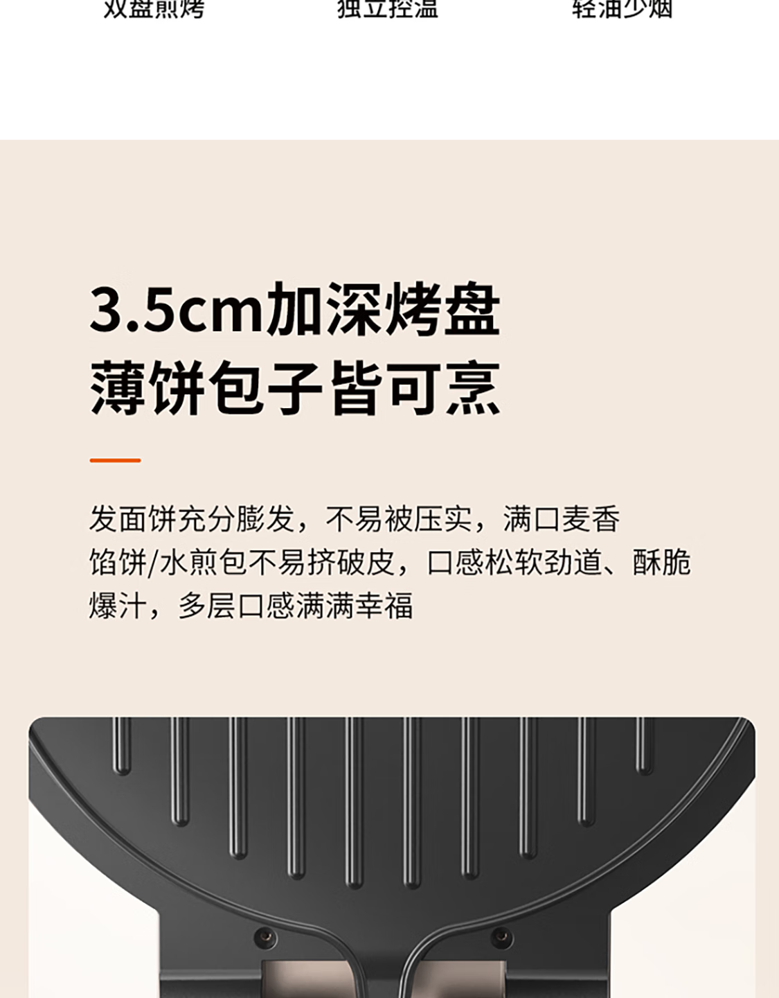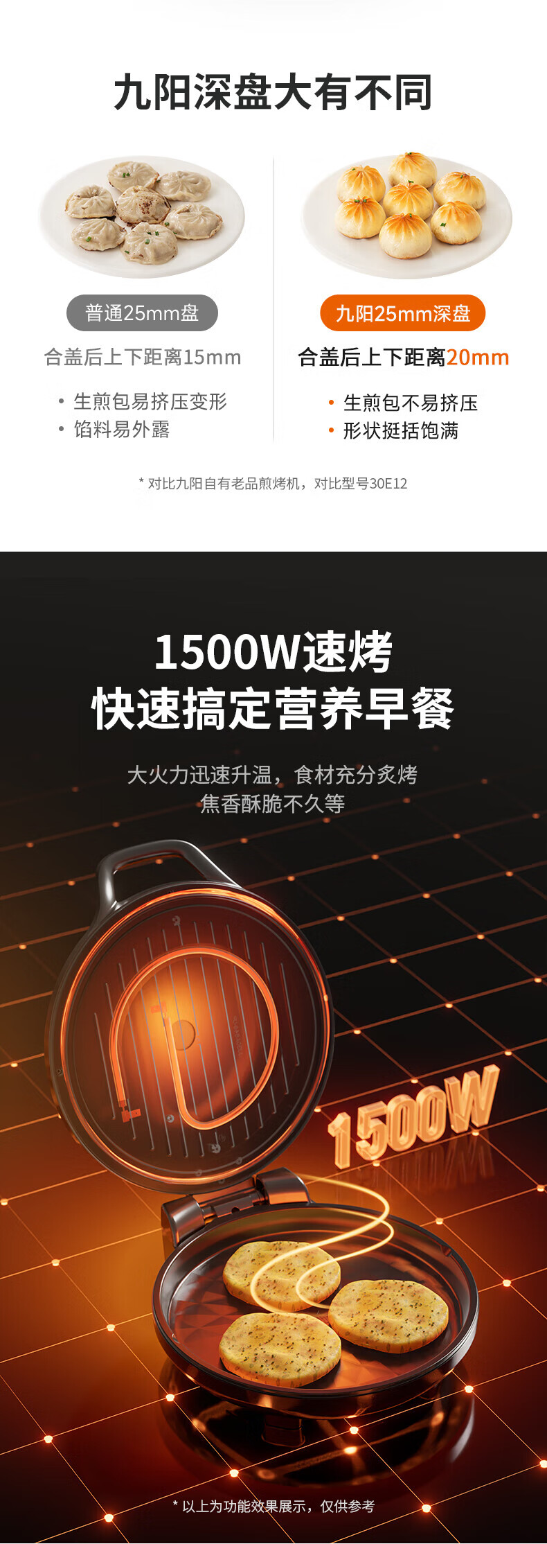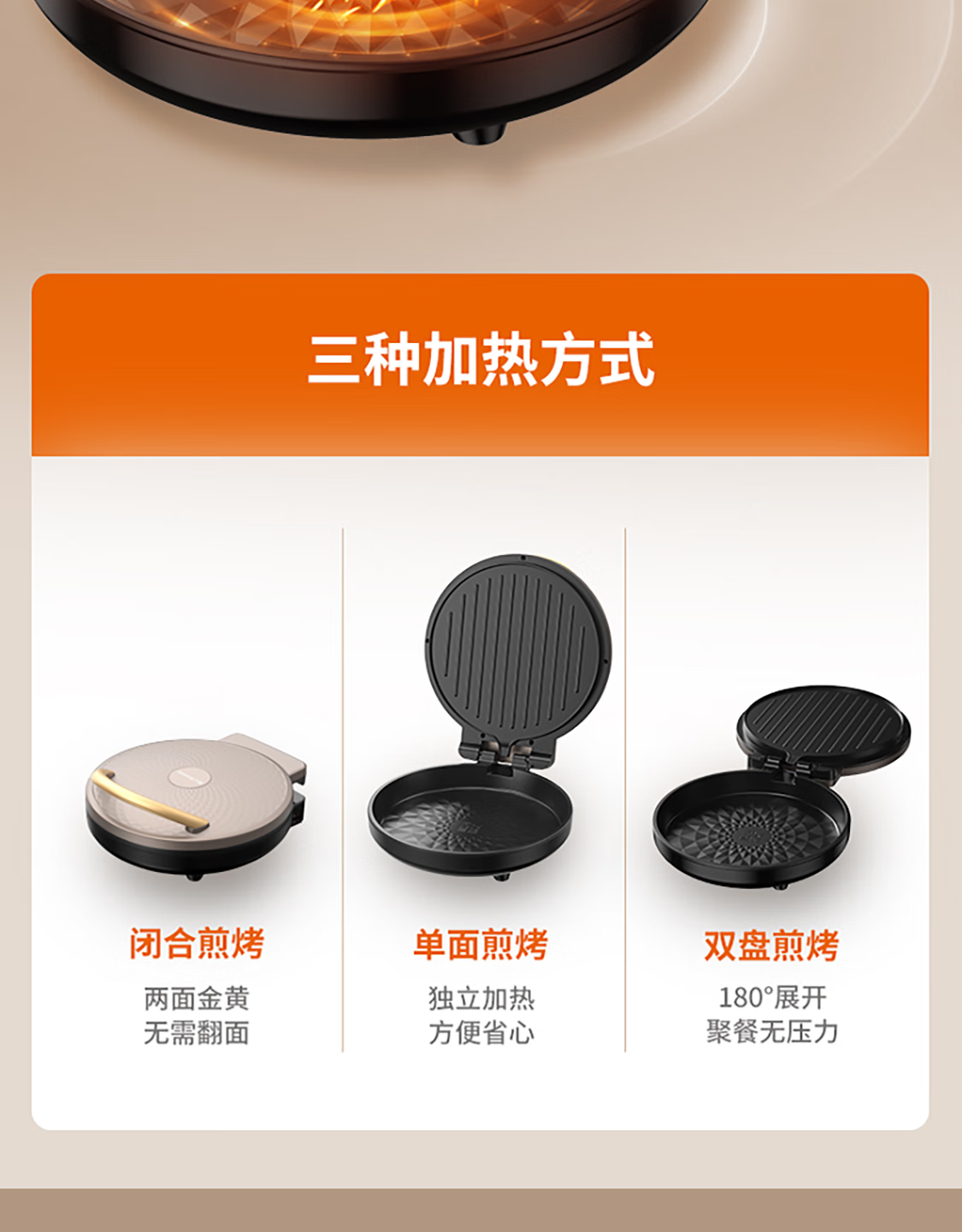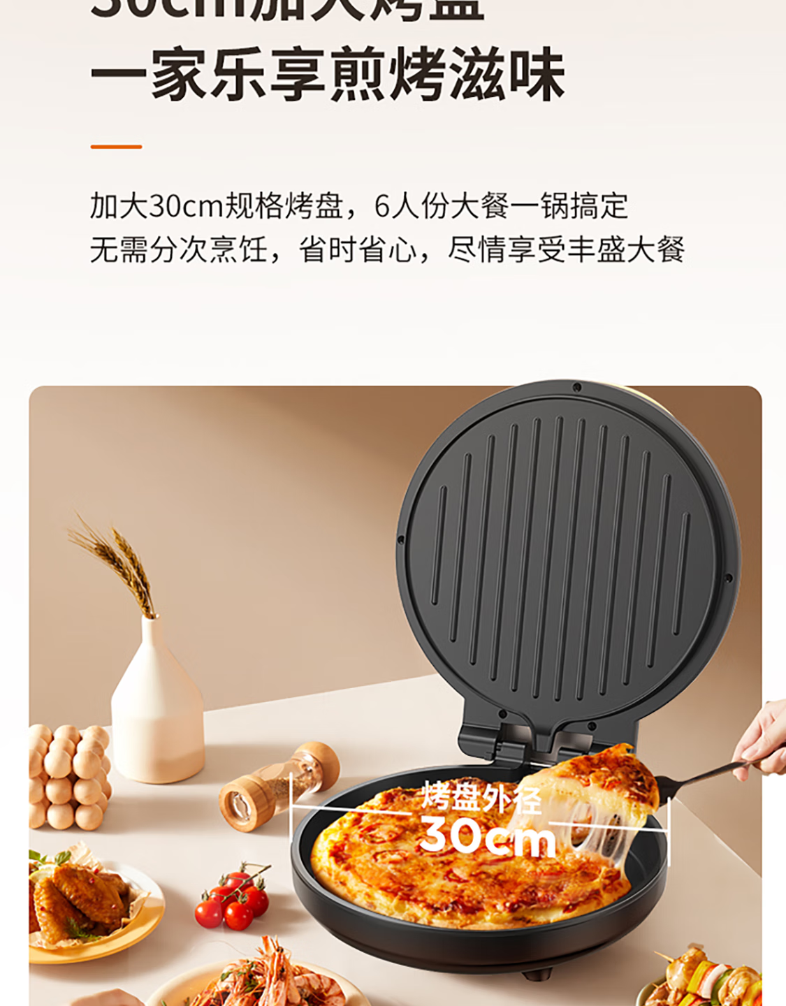 九阳(Joyoung)电饼铛 多功能煎饼机大容量双面加热多功能煎烤机 悬浮式不粘烤盘烙饼机 JK23-GK655