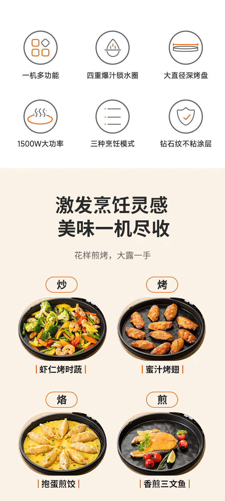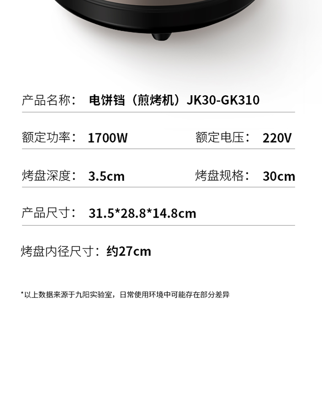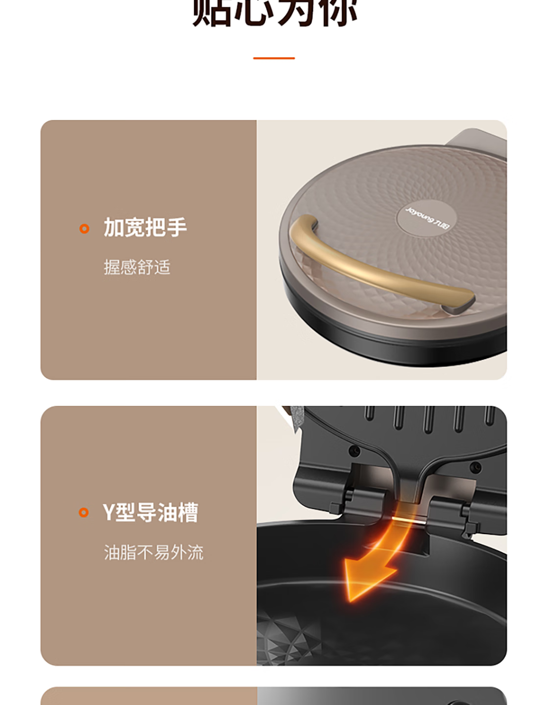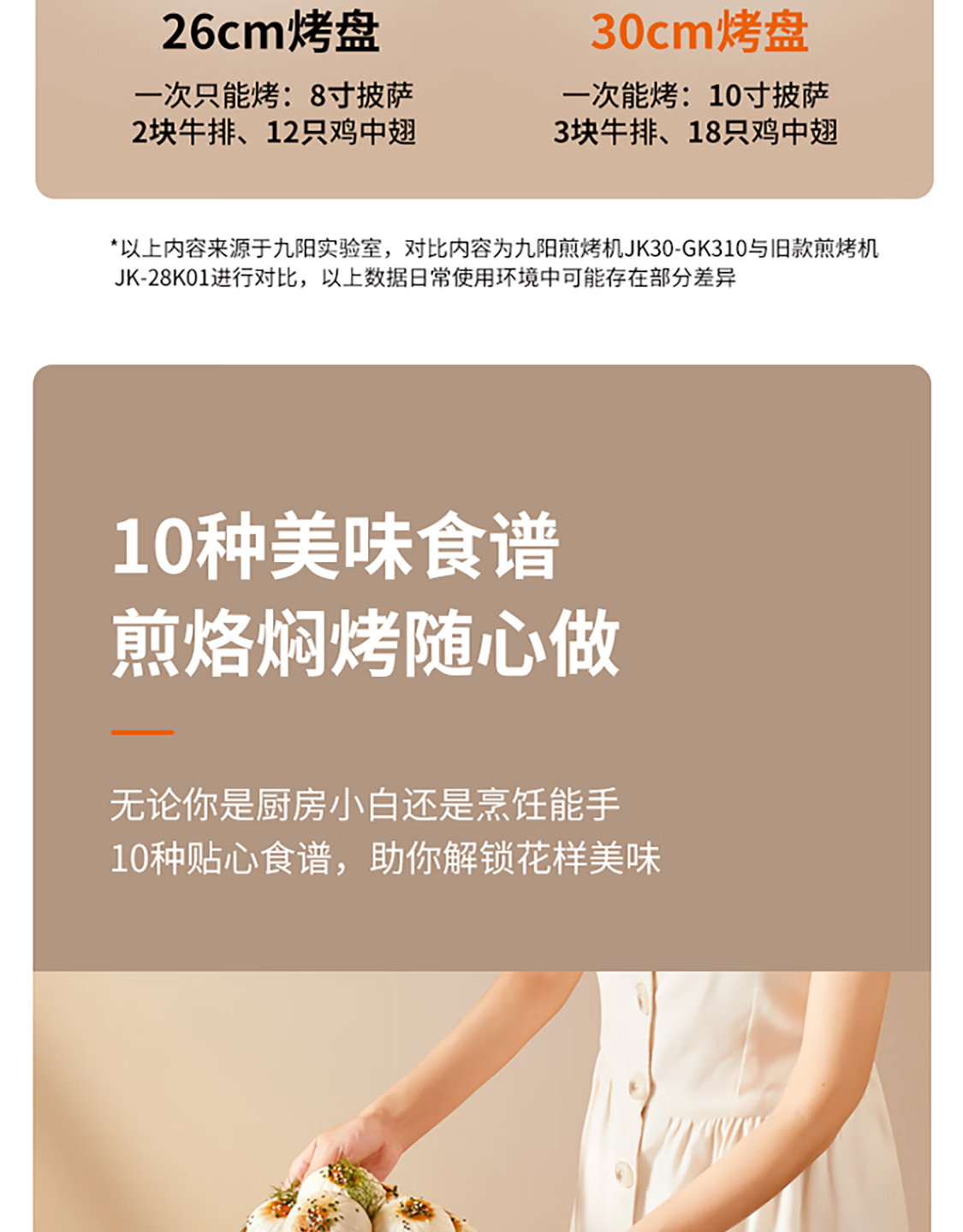 九阳(Joyoung)电饼铛 多功能煎饼机大容量双面加热多功能煎烤机 悬浮式不粘烤盘烙饼机 JK23-GK655