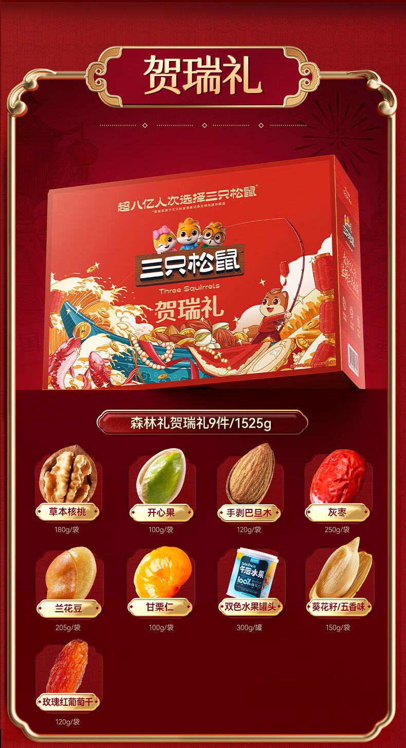 三只松鼠 坚果礼盒 炒货干果果干混合礼盒 贺瑞礼干果礼盒1525g