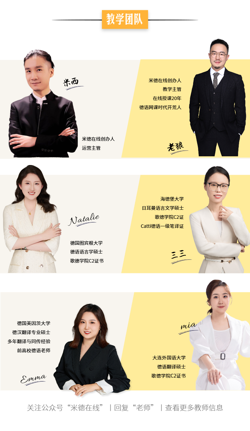 - 米德在线,专注德语网课教学12年,致力打造精致、优秀的德语网课,塑造高效、先进的在线学习方式。米德的宗旨:让德语学习更简单!