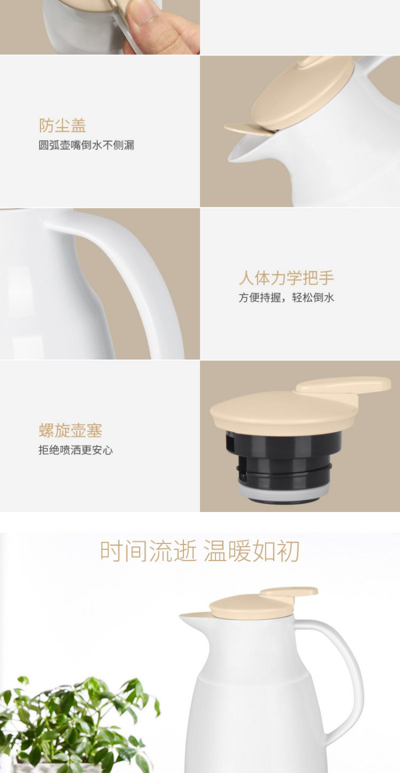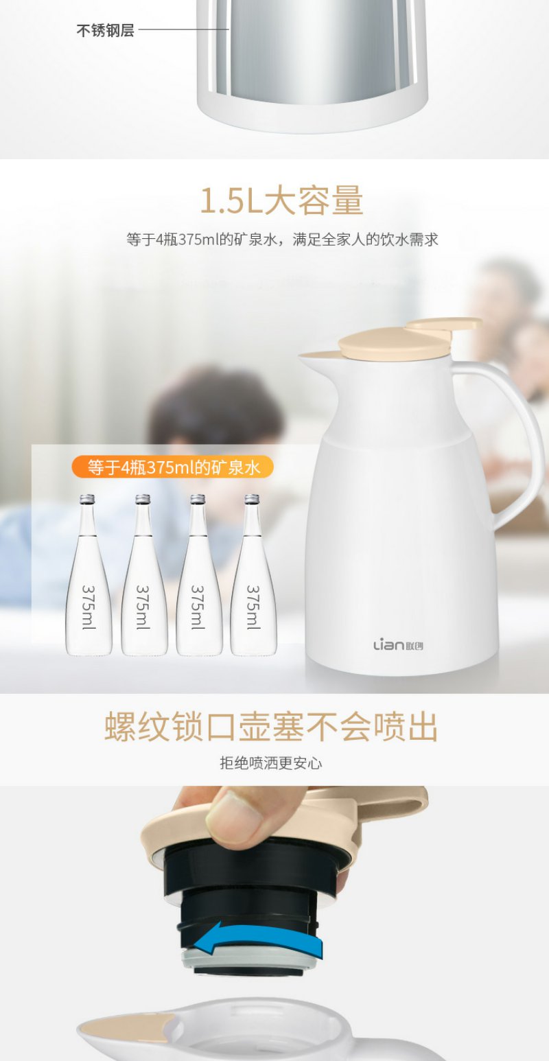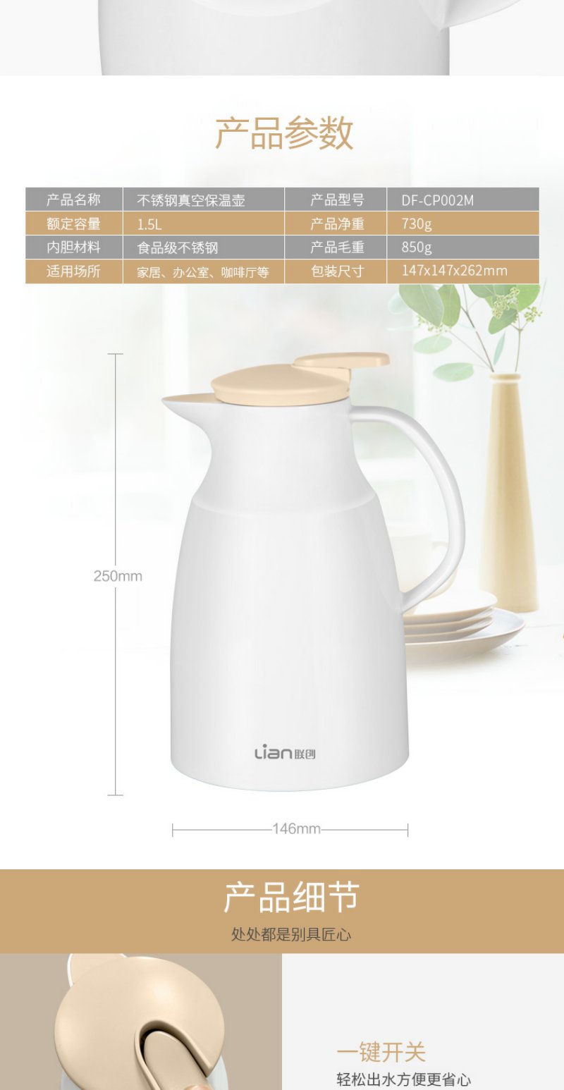 联创(LIAN) 保温水壶 不锈钢双层真空保温壶 DF-CP002M 白色