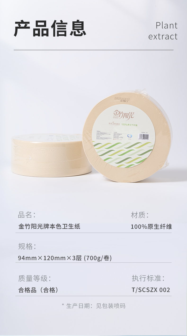 金竹阳光医护母婴级本色小盘卷纸94mm*120mm*3层700g/卷(大卷纸)12卷/箱