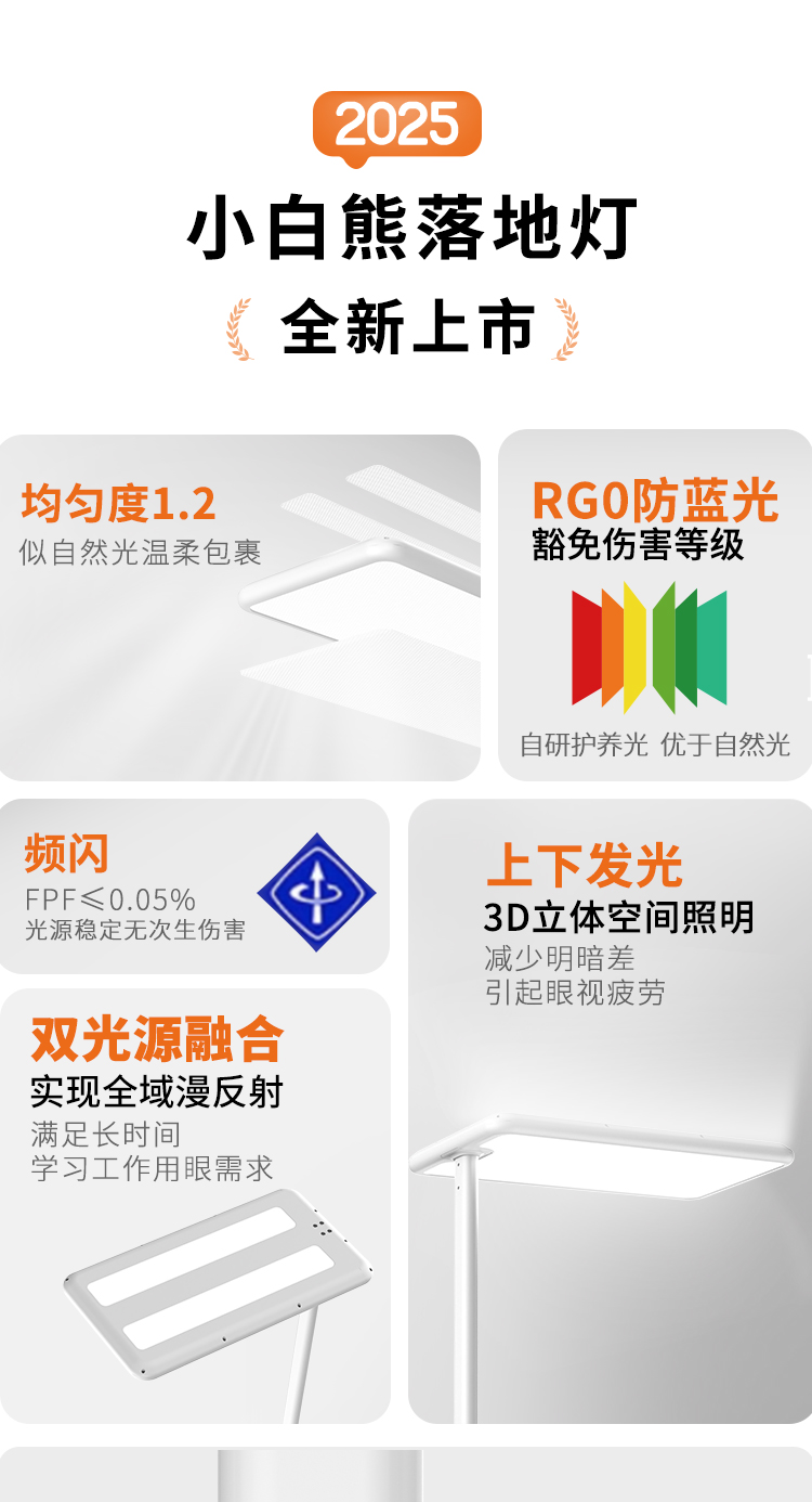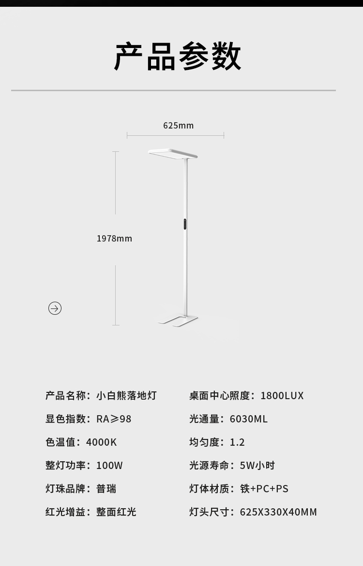 贝发知乐 小白熊落地灯 整面红光增益+益光谱
