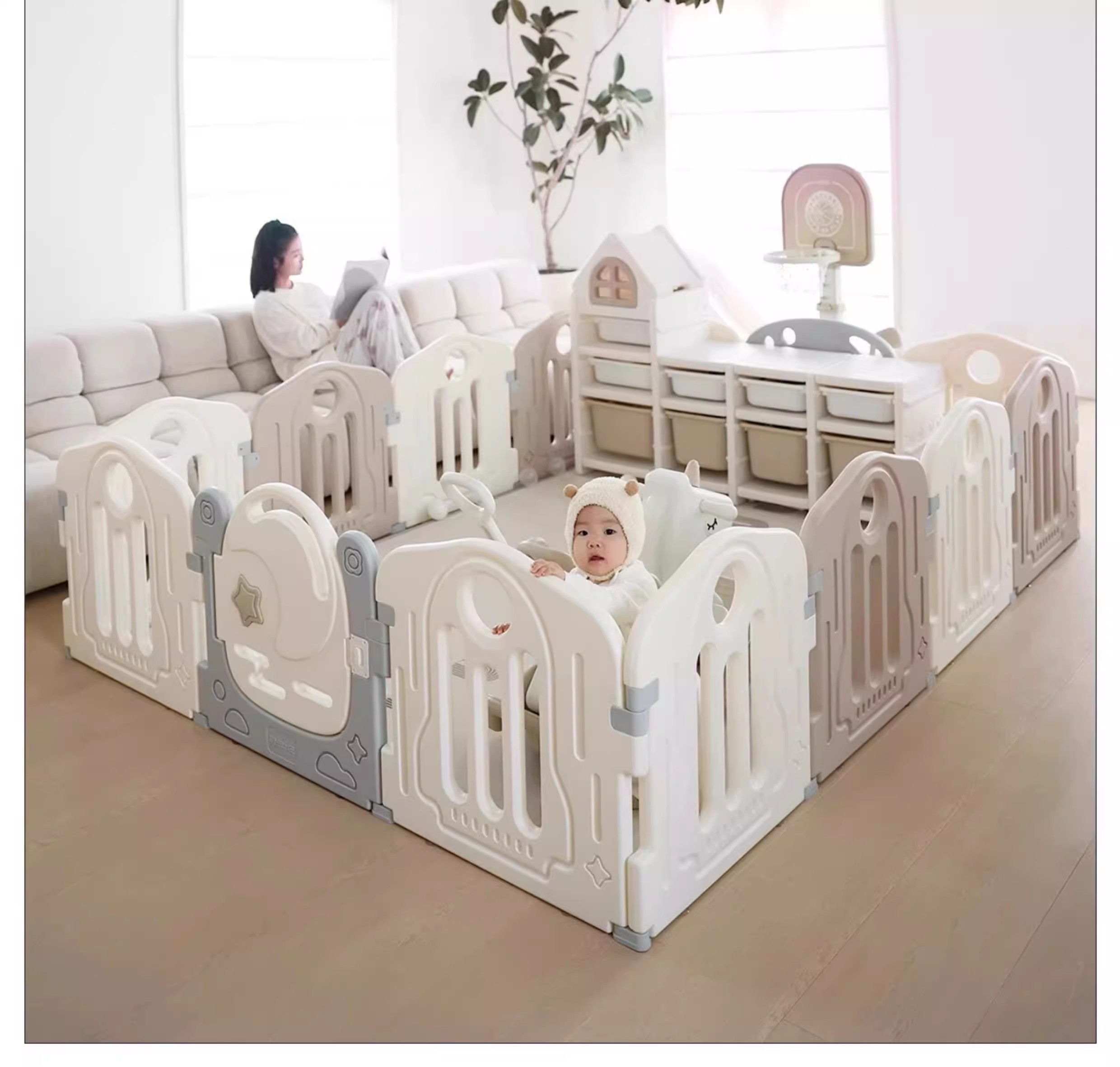 贝易宇航员宝宝游戏爬爬垫围栏婴儿防护栏室内家用地上爬行垫一体【部分选项会员下单送:小熊收纳筐+伙伴龙故事机,围栏+爬行垫套餐还送独角兽五合一摇马,联系客服参加哦】