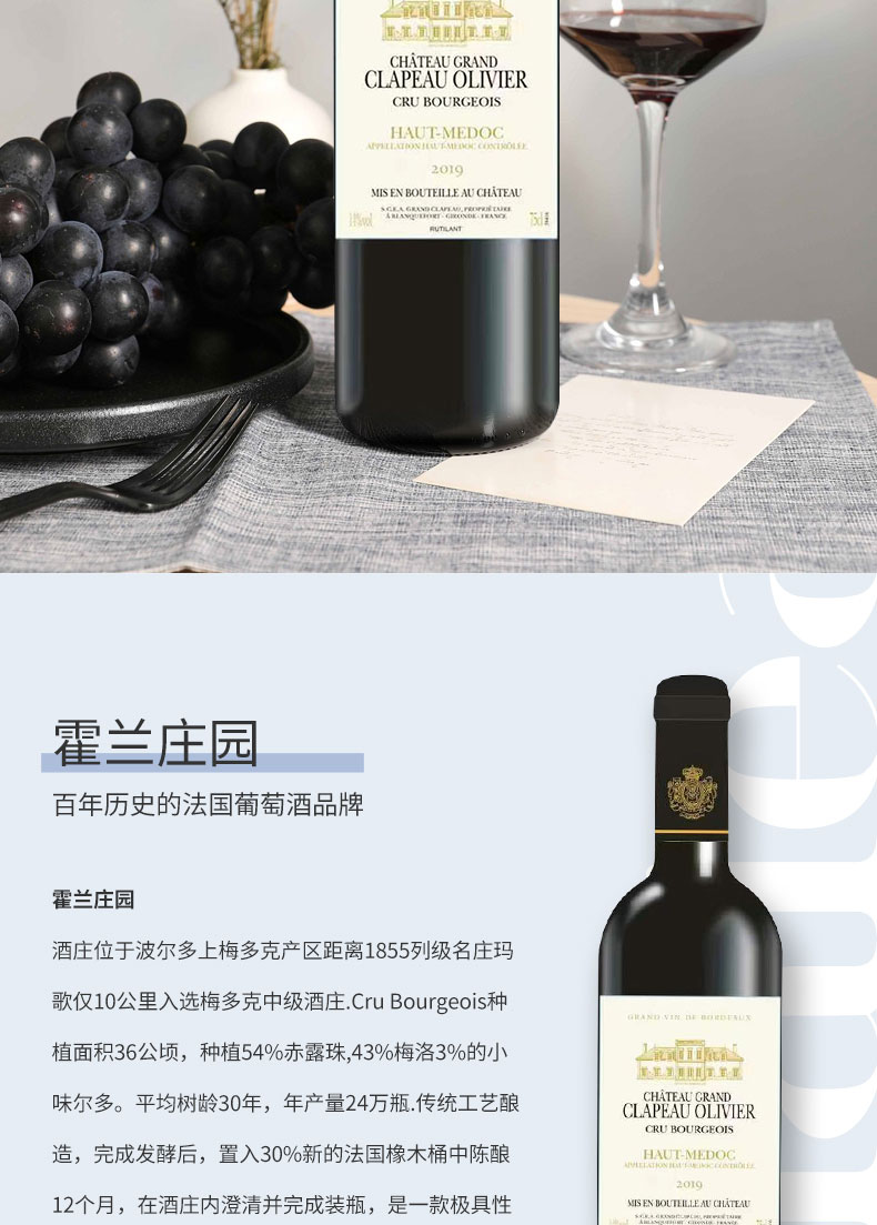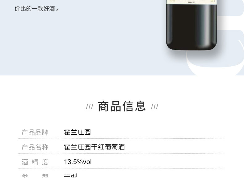 【法国进口】霍兰庄园干红葡萄酒 13%vol 750ml /瓶
