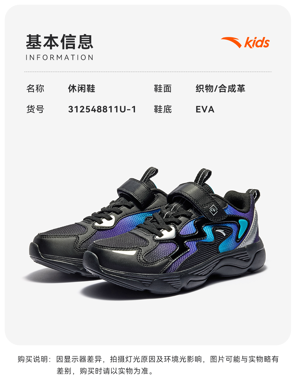 超级安踏儿童魔术贴休闲鞋秋冬轻便运动鞋男大童跑步鞋312548811U