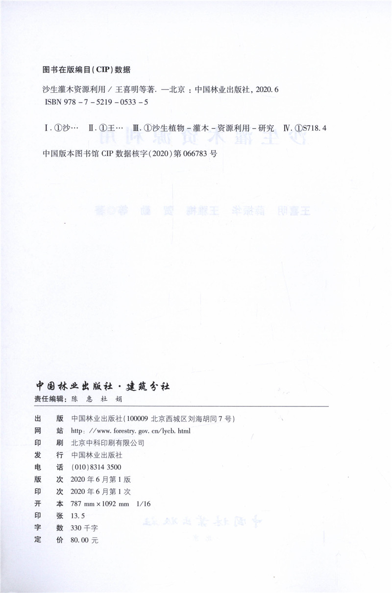 沙生灌木资源利用 0533 王喜明 沙生植物 灌木 资源利用 研究 林业科技 中国林业出版社