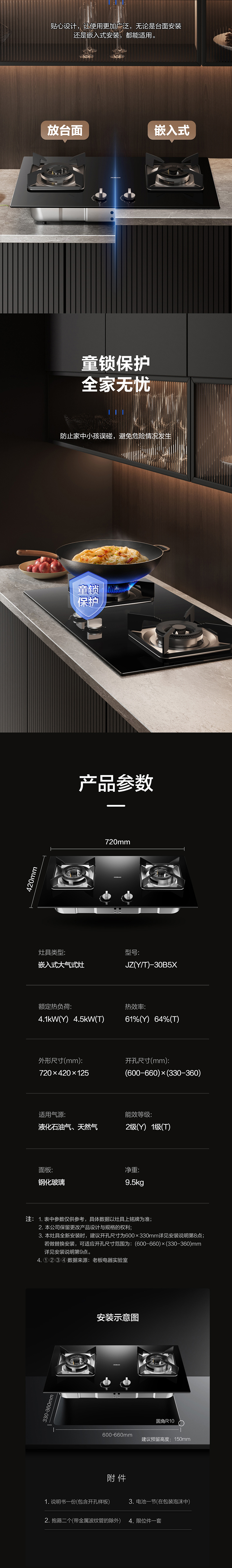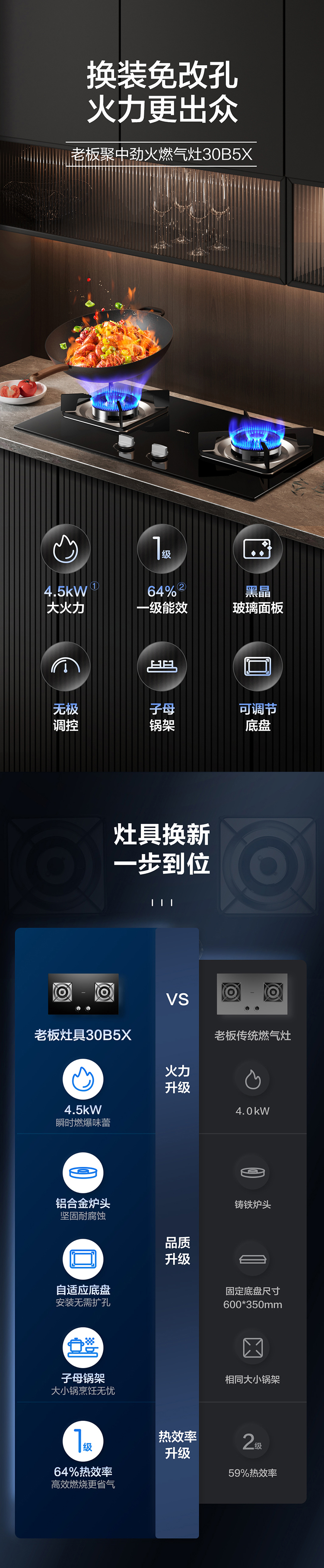 [王一博代言款]老板30B5X小尺寸燃气灶家用天然气煤气灶台炉灶
