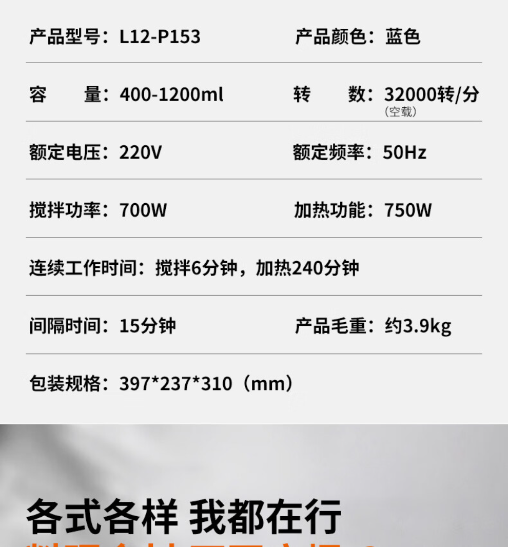 九阳 L12-P153 高速破壁调理机(迎)—rxs