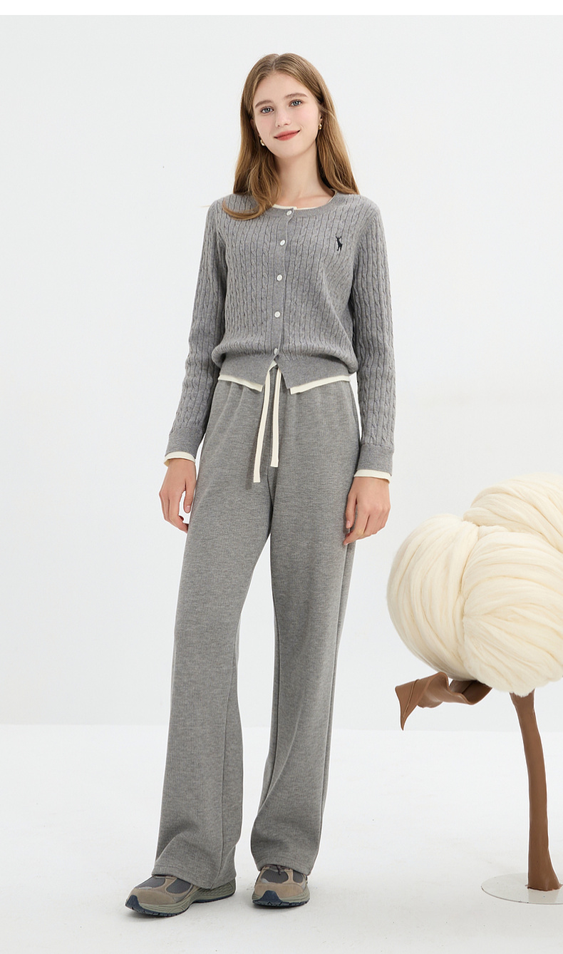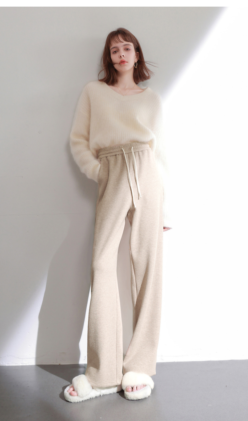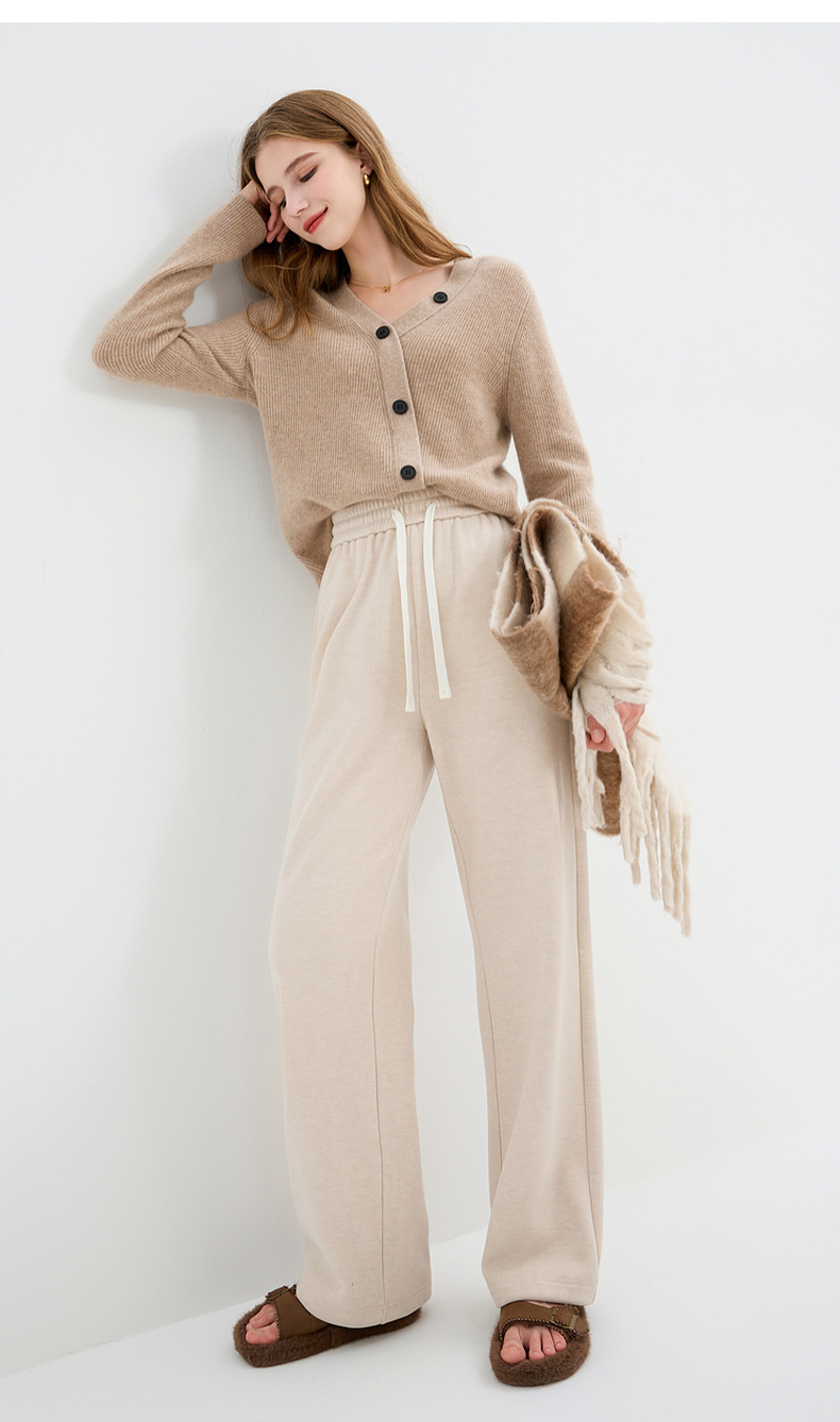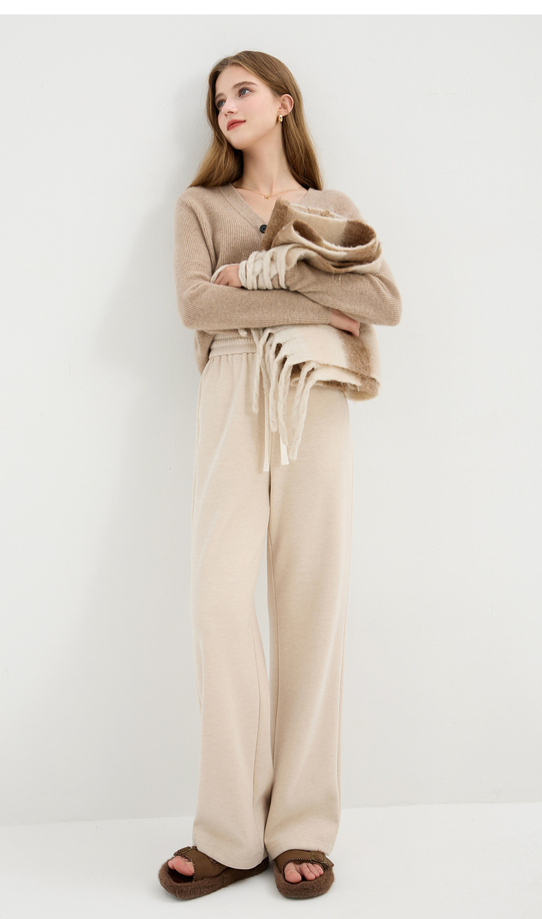 三彩2025冬季新款加绒保暖休闲长裤高腰松紧直筒裤宽松简约M