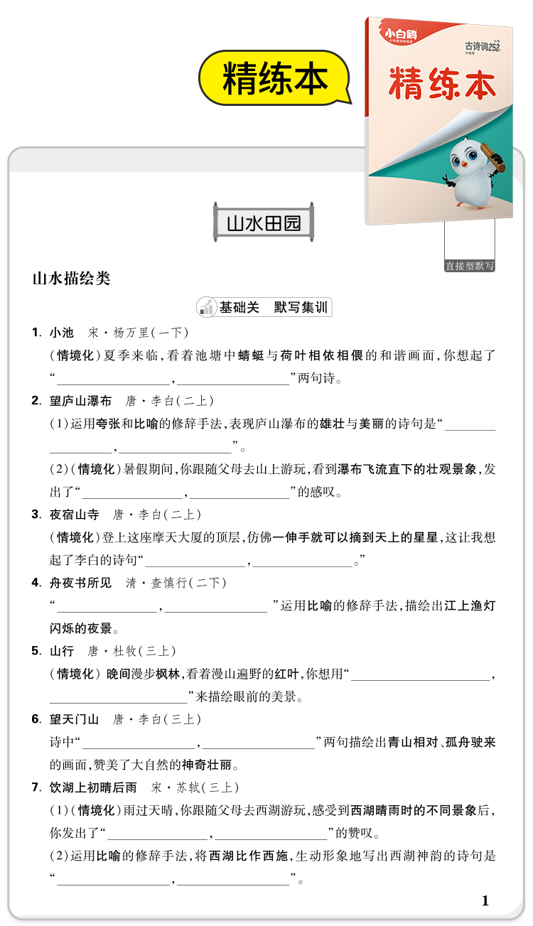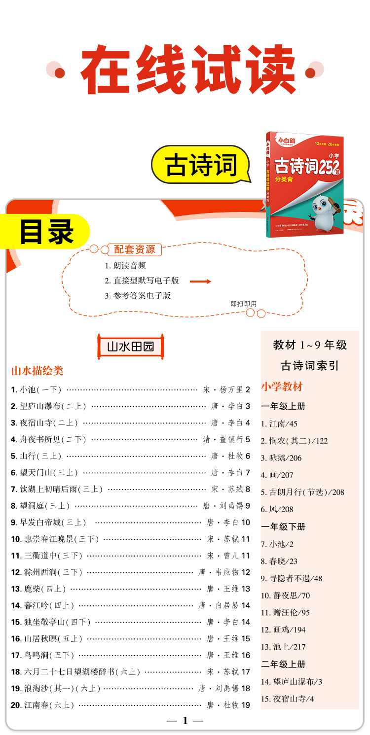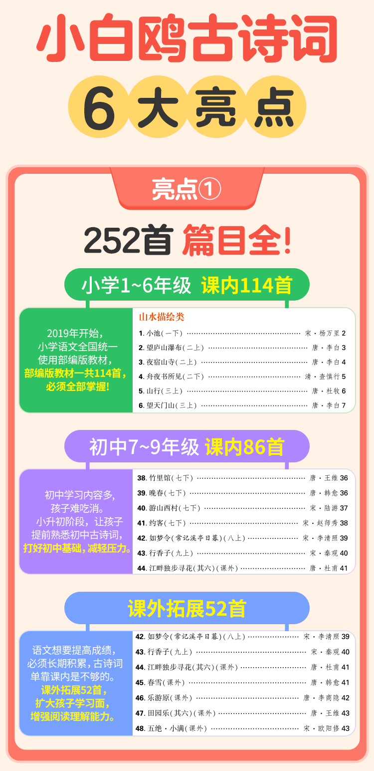 2025小白鸥星空小升初古诗词252首小学生必背古诗词大全翻译人教版四五六年级语文阅读同步练习专项训练小古文唐诗宋词含75首