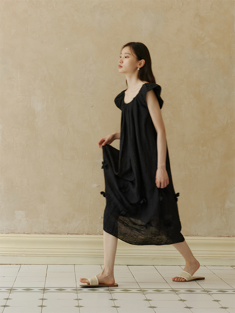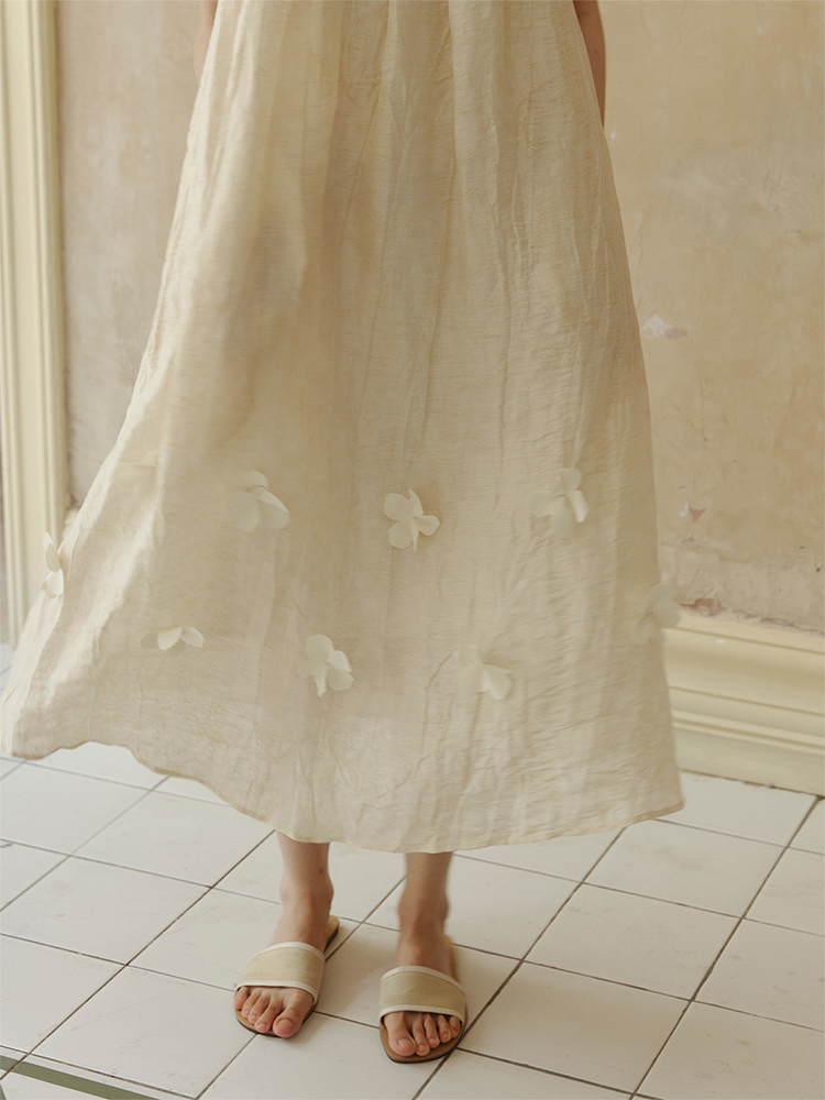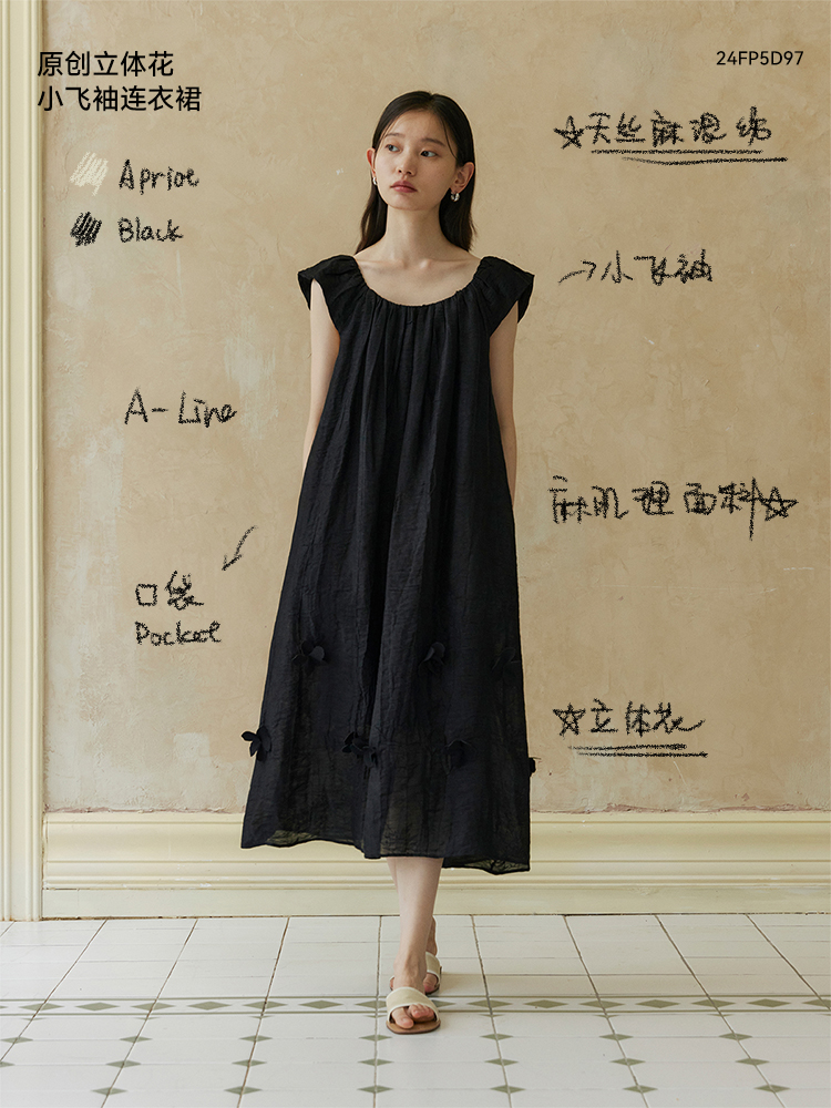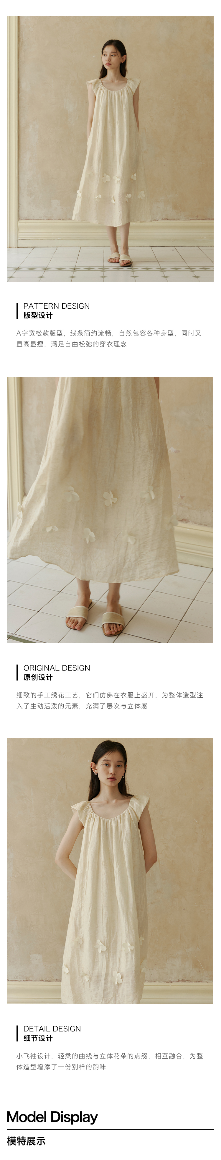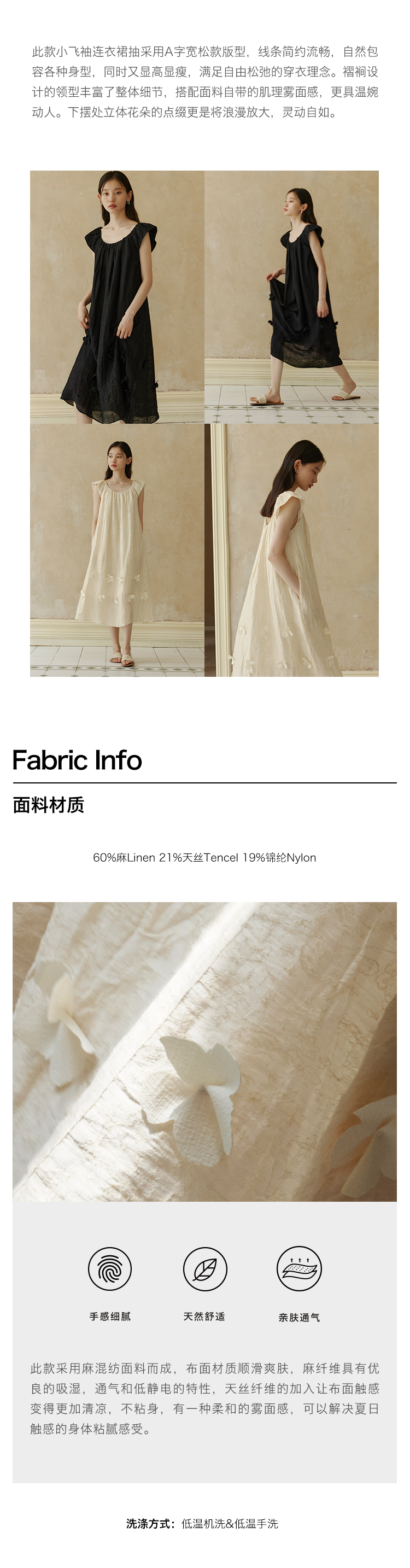 ForPoem 现货 24/SS原创设计慵懒浪漫立体花朵小飞袖气质优雅天丝长裙