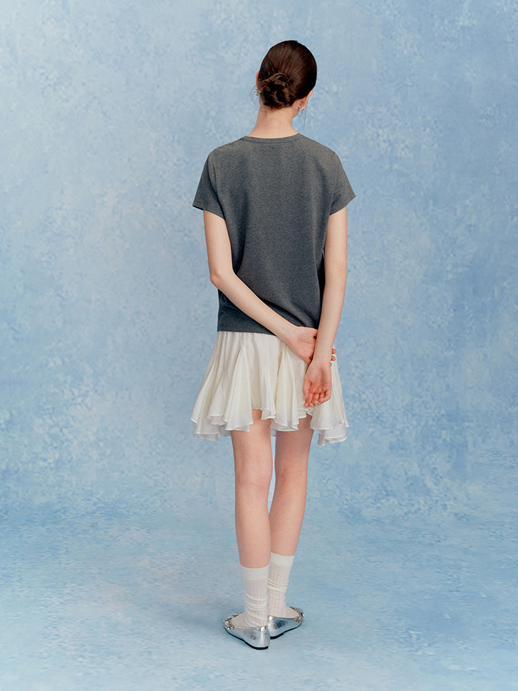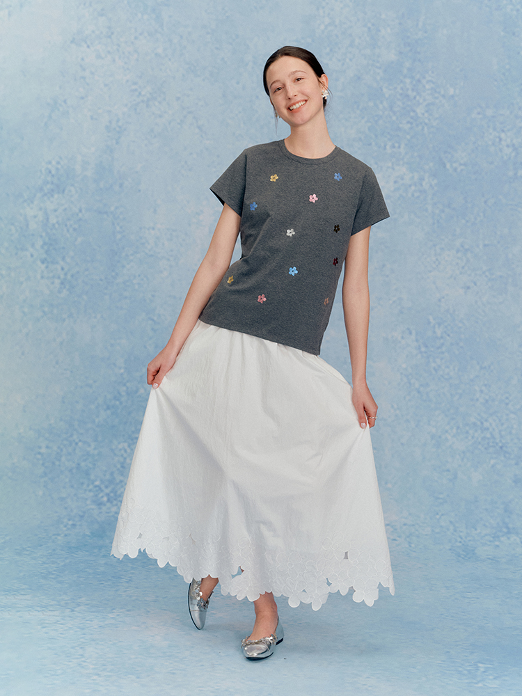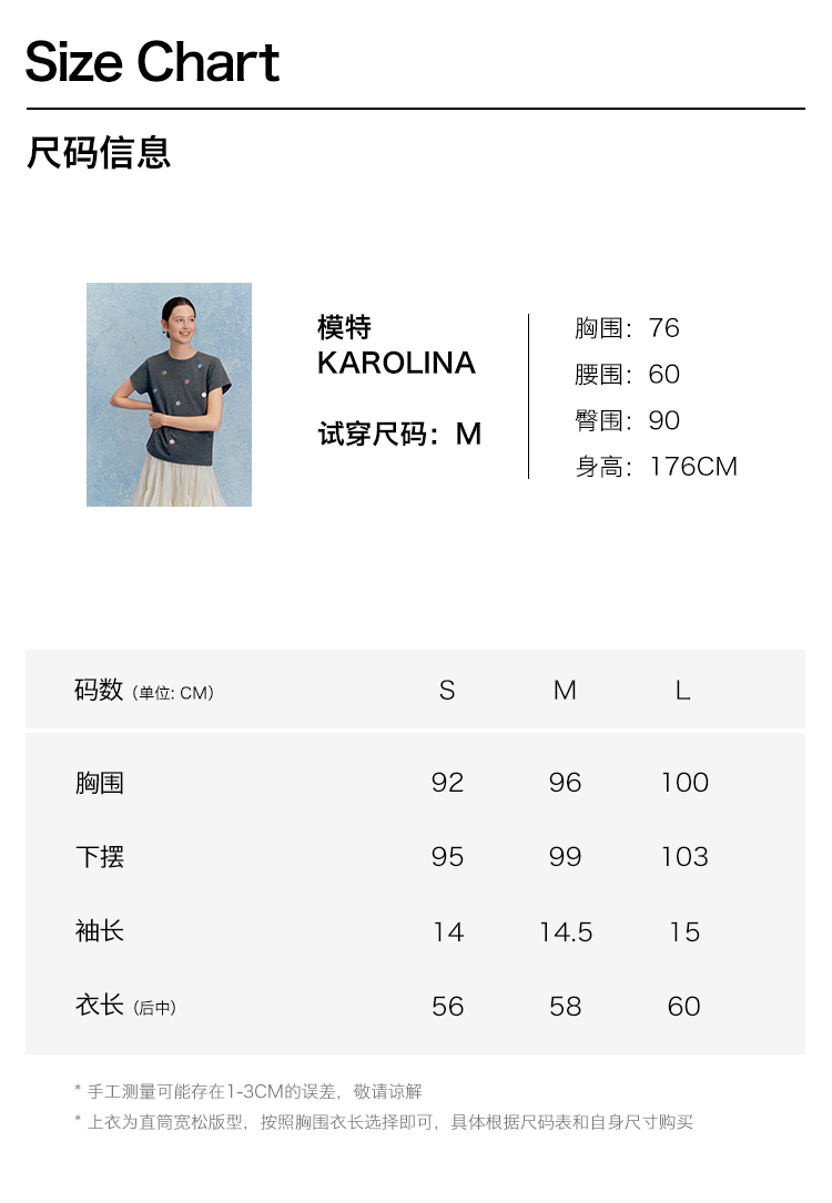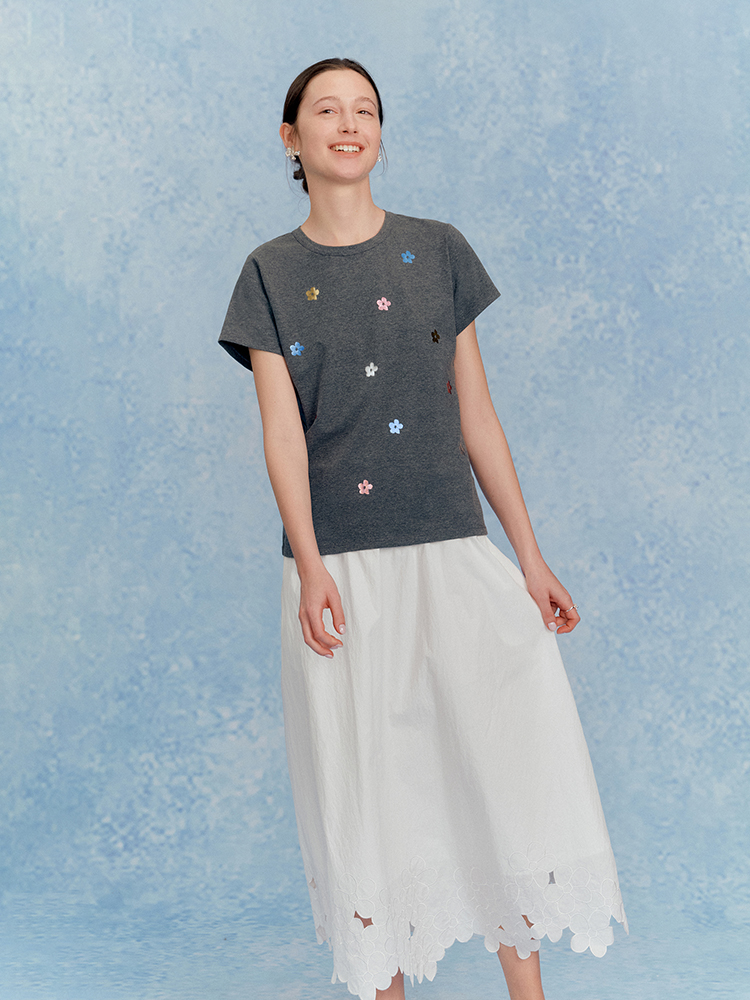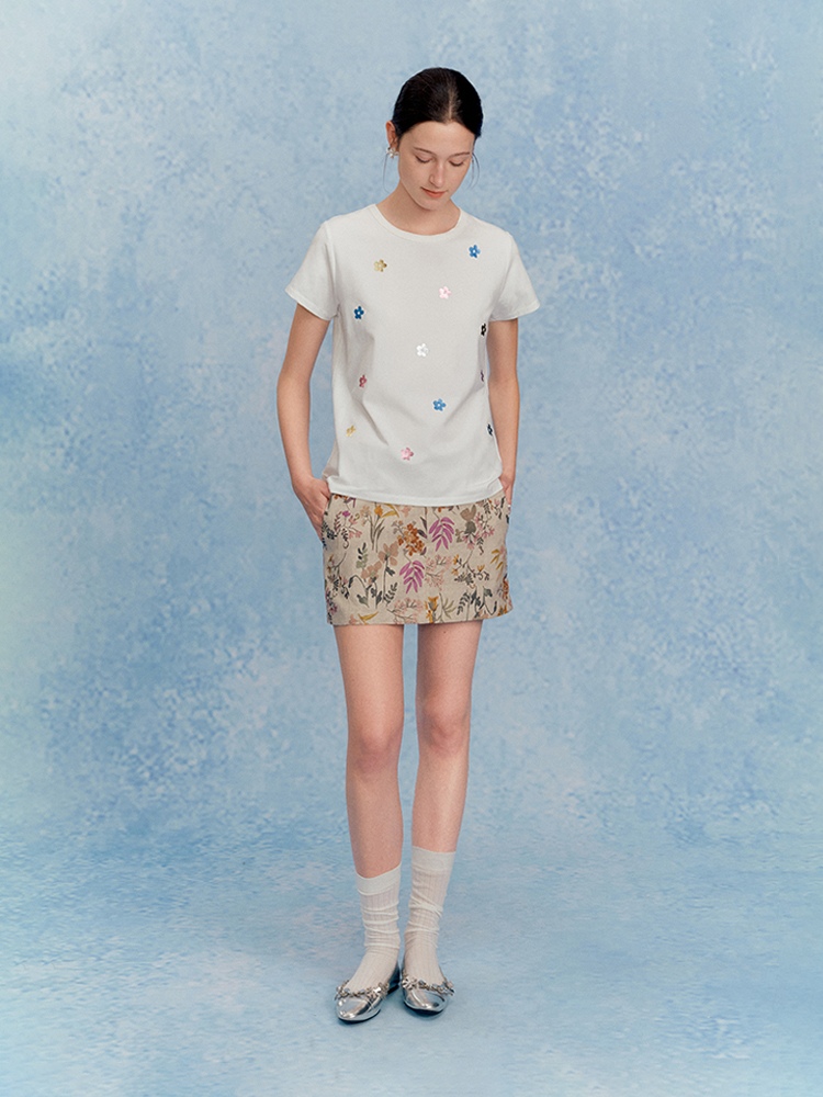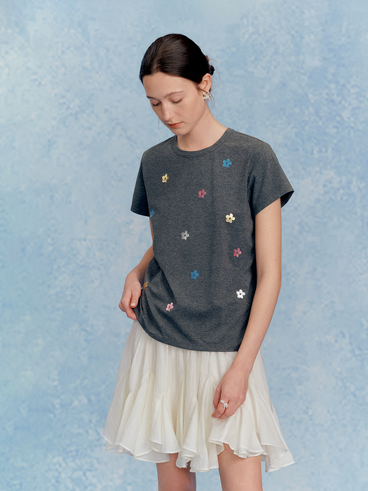 ForPoem 现货 25/SS原创设计棉混纺正肩彩色花朵烫金T恤上衣