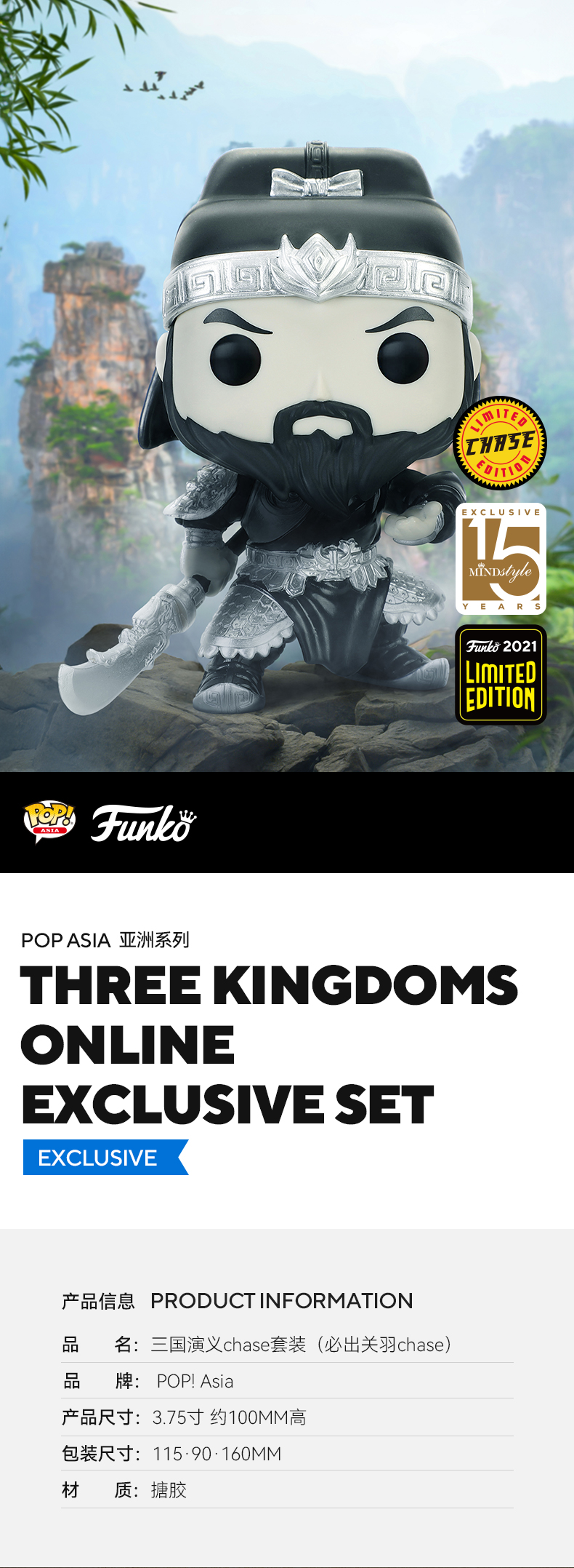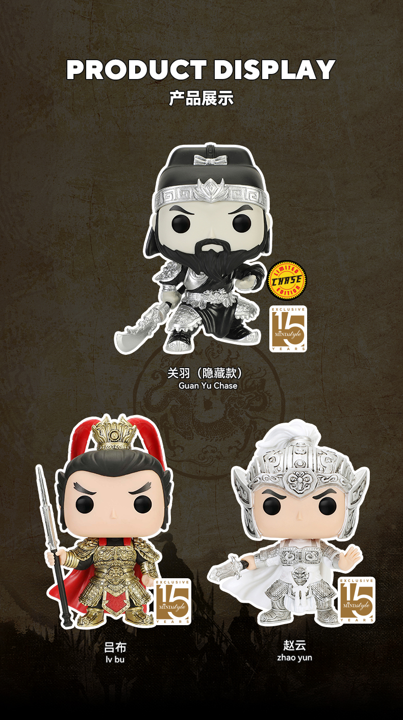 MINDstyle独家限定套装(Funko POP! Asia 三国演义 Chase关羽+赵云+吕布)限定手办公仔摆件