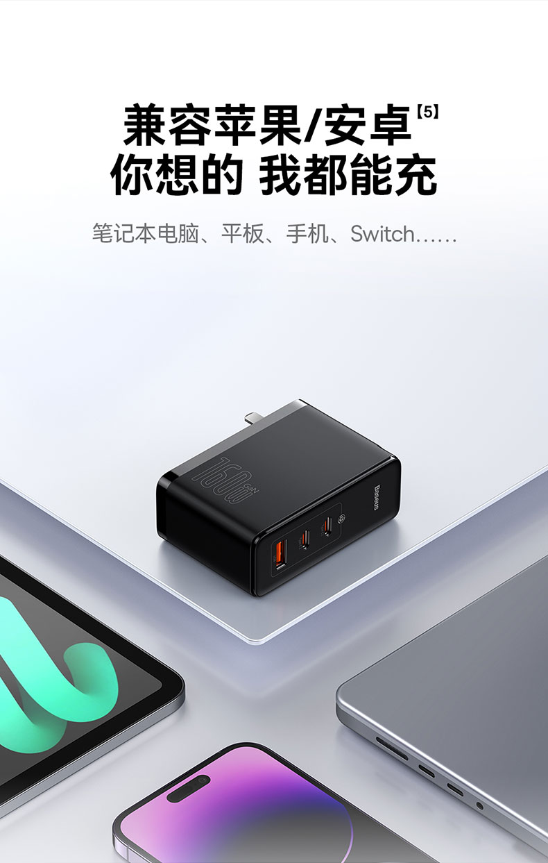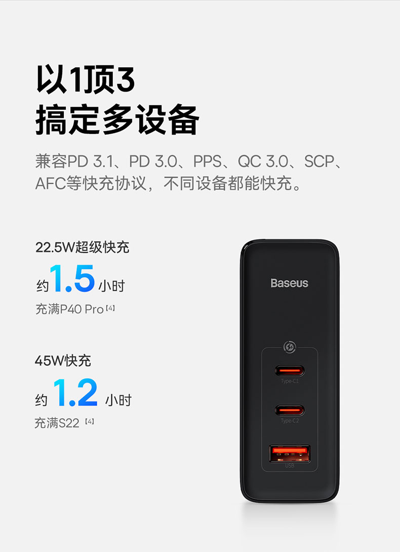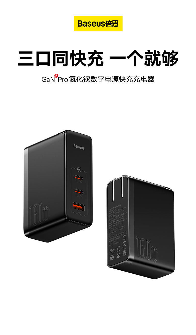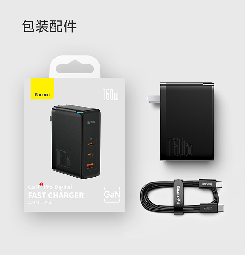 倍思 GaN5 Pro 氮化镓数字电源 快充充电器 2C口+1USB口