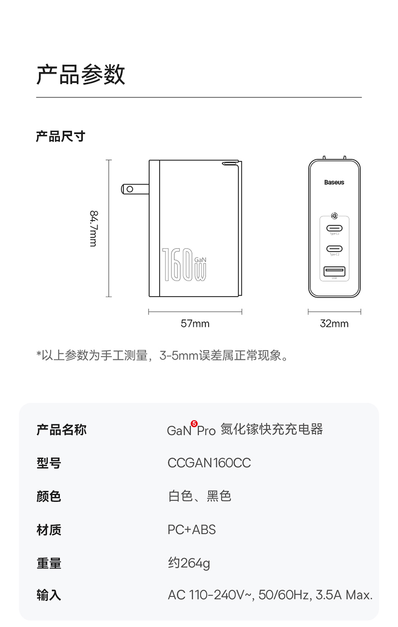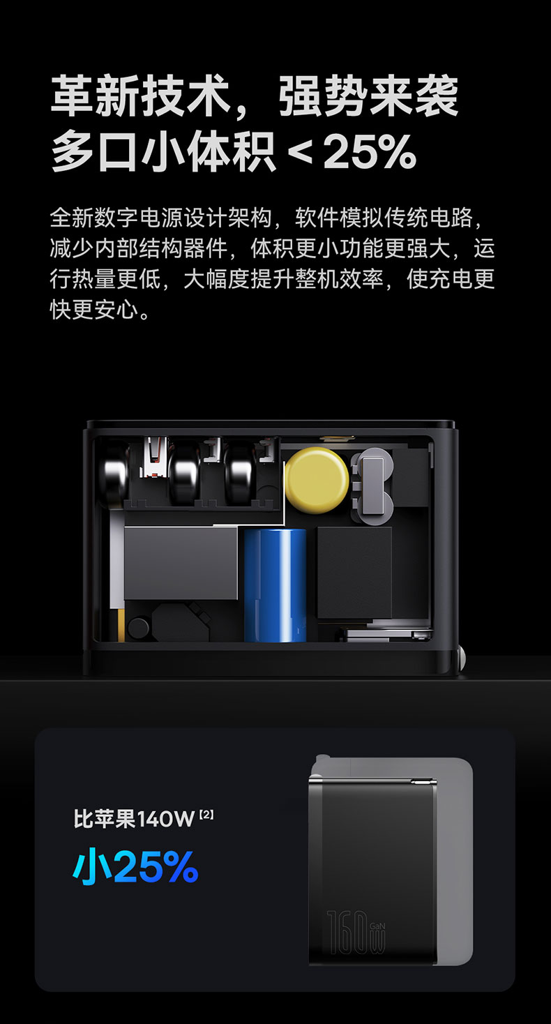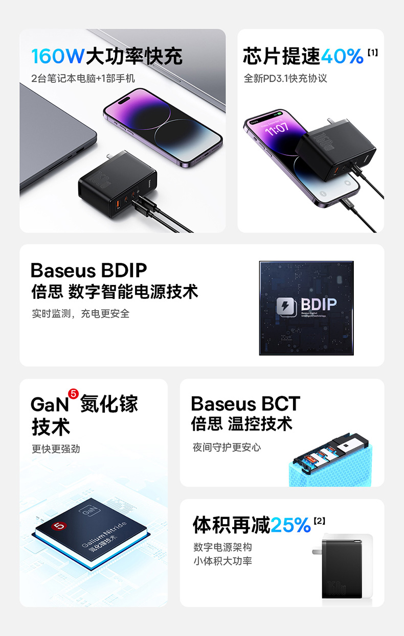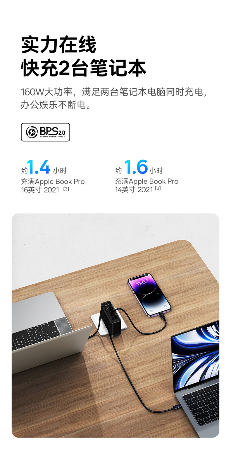 倍思 GaN5 Pro 氮化镓数字电源 快充充电器 2C口+1USB口