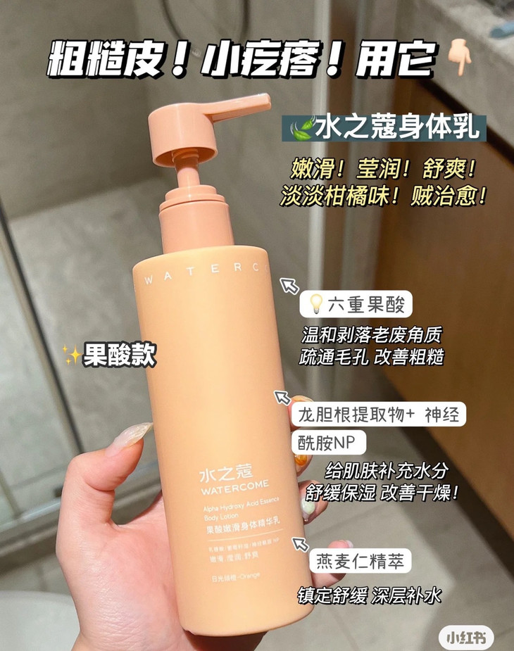 清爽不粘腻,自带清香,关键是能够有效嫩肤不伤肤,高保湿。 真的是满足了我对于身体乳的所有的想象! 坚持用一个月左右,万年糙皮鸡皮都能感觉到一点点在变嫩滑! 边果酸嫩肤边修护,皮肤会越来越细嫩光滑,是鸡皮肤救星没错了!