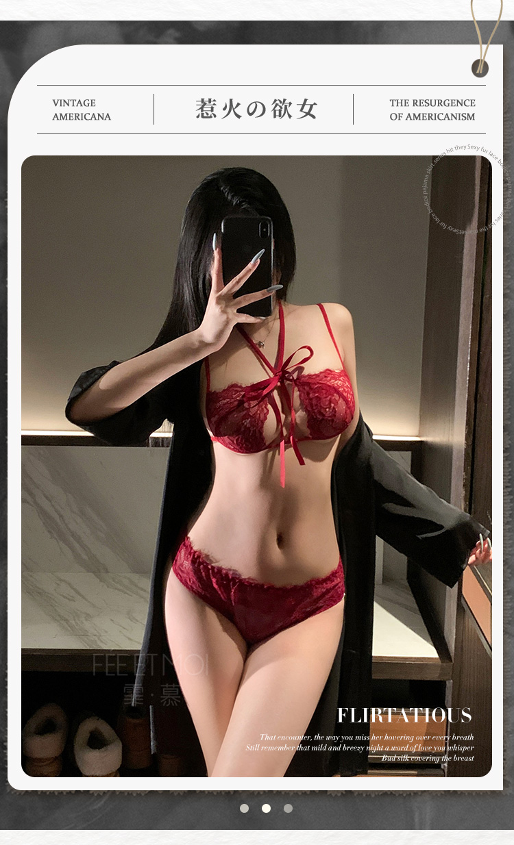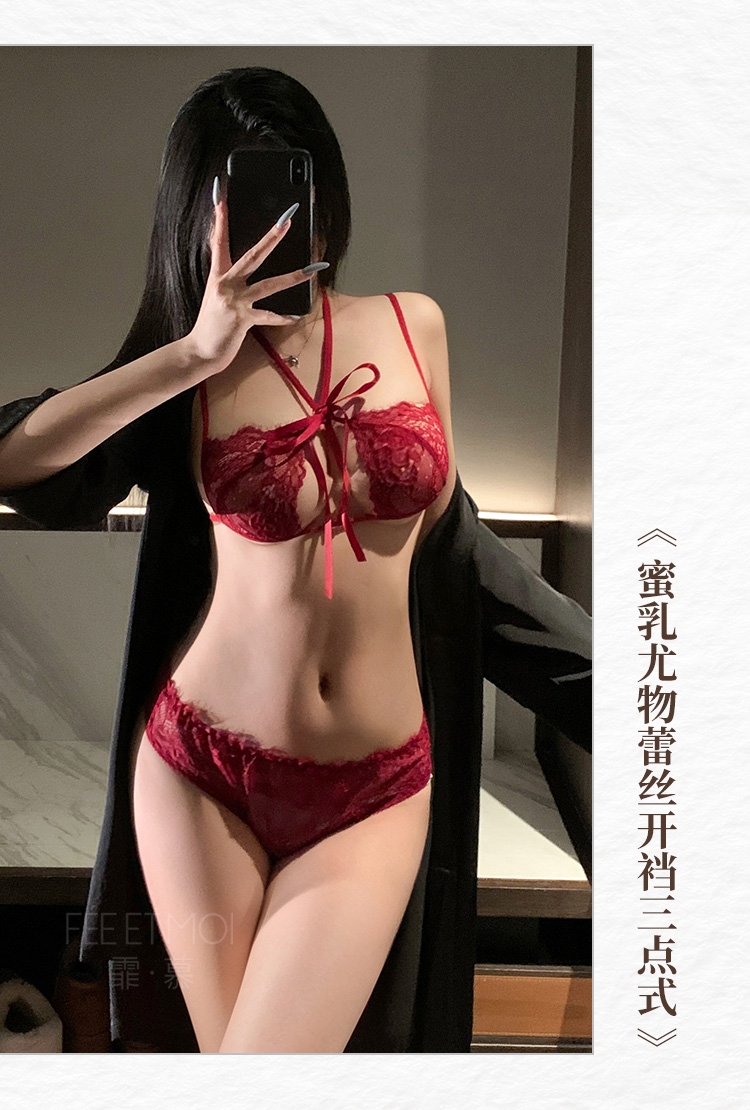 【霏慕】情人节内裤蜜乳尤物蕾丝开裆三点式情趣内衣性感情趣睡衣6339