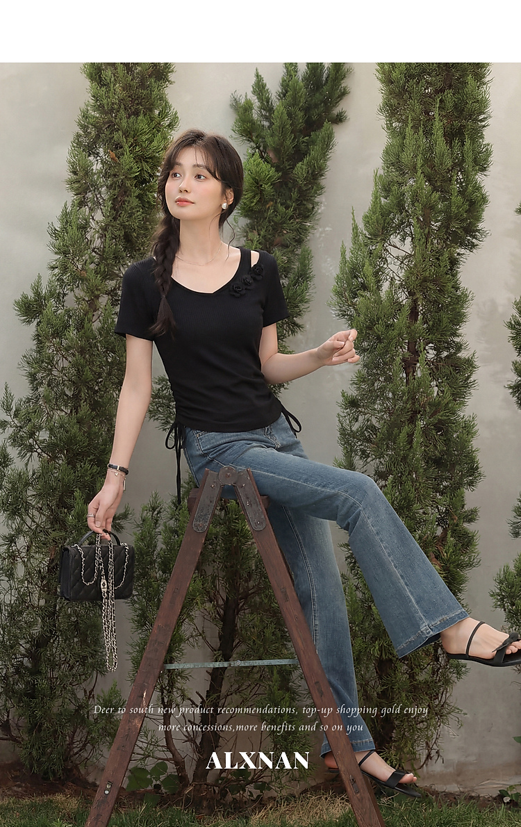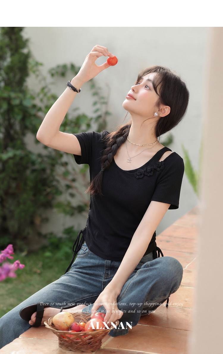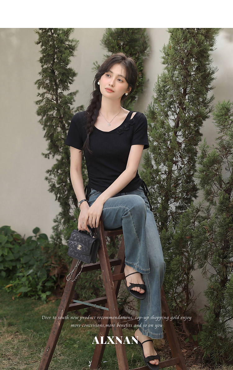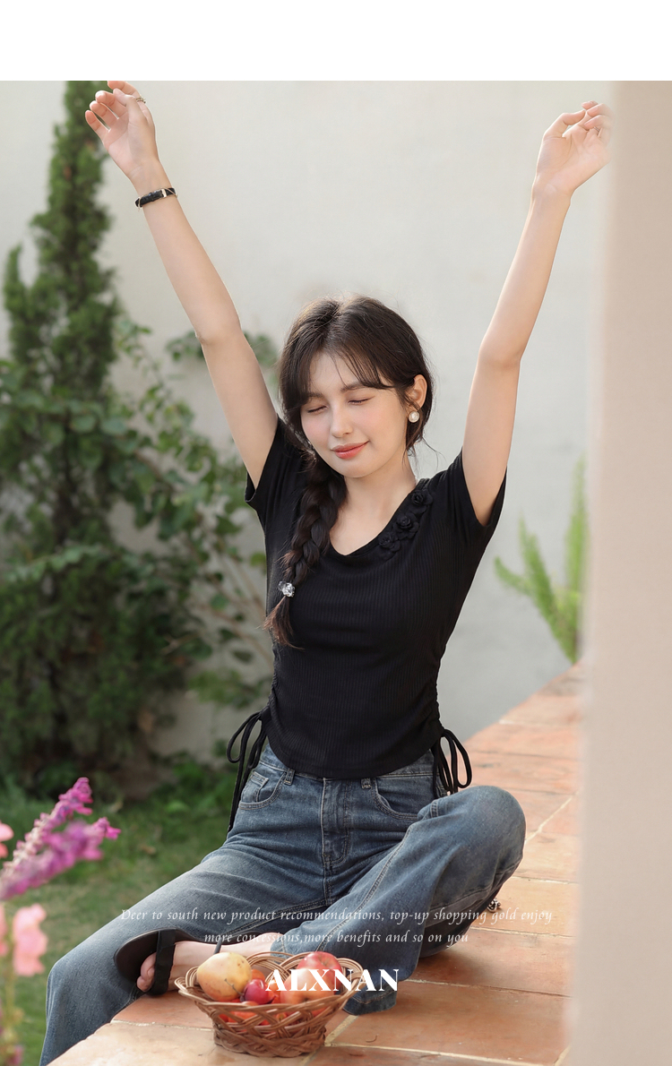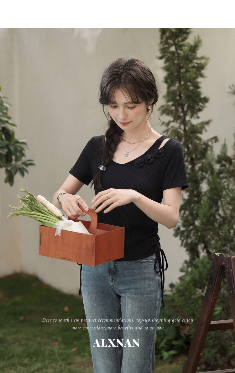 鹿向南「花间柔语」紫色短袖T恤女2026夏新款法式气质设计感上衣