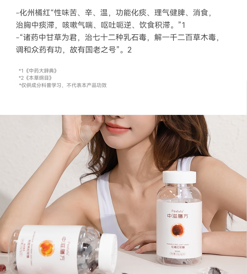 【化州橘红】中滋膳方 化橘红甘草软糖 清爽化痰清嗓用嗓多必备 FSSC食品安全认证