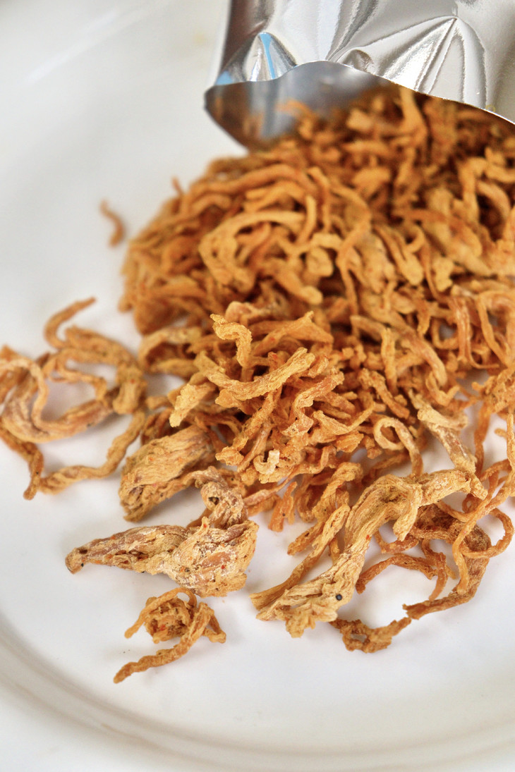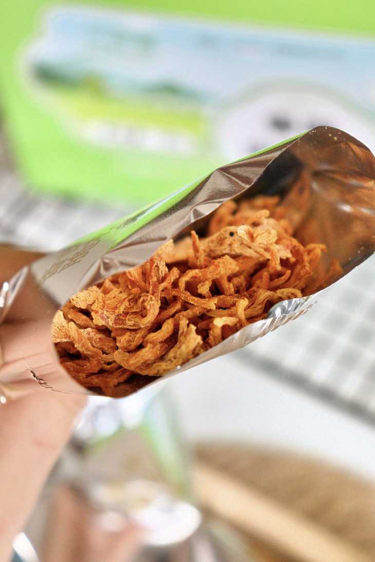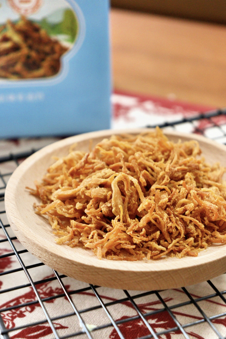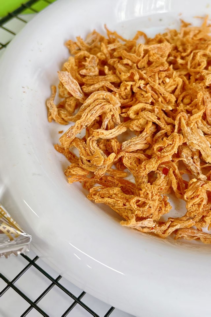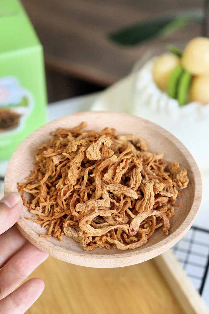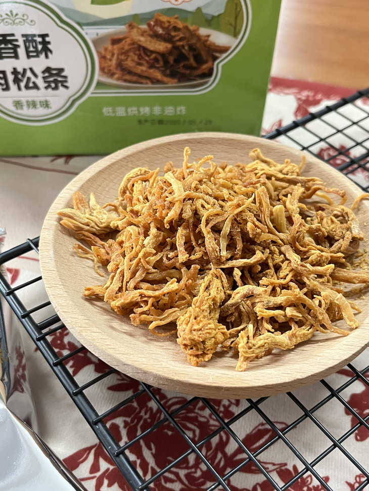 不光可以空口吃 它可以搭配粥、面、面包等食用 提升食物的口感和风味 将香酥鸡肉松条撒在白粥上,能增加粥的香味和口感 将其加入泡面中,香气和口感瞬间提升 还可以用来制作肉松小贝、肉松卷等美味食品 这些多样化的用途使得香酥鸡肉松条成为家庭烘焙和零食的优选!