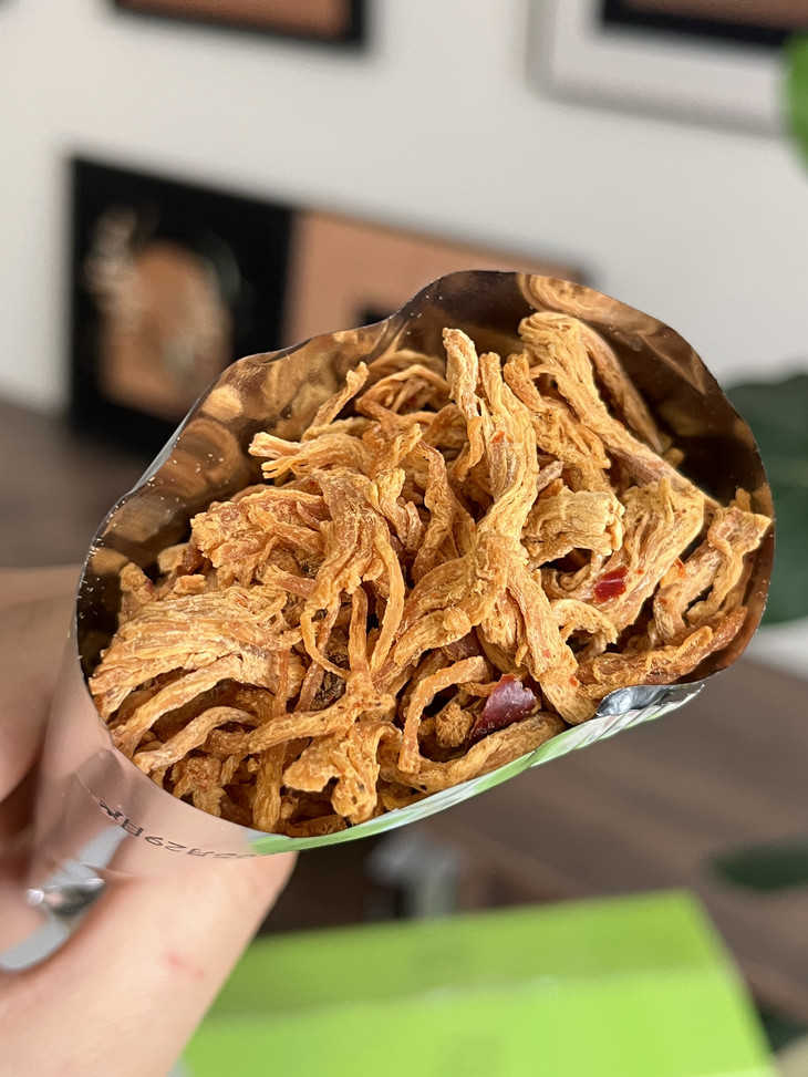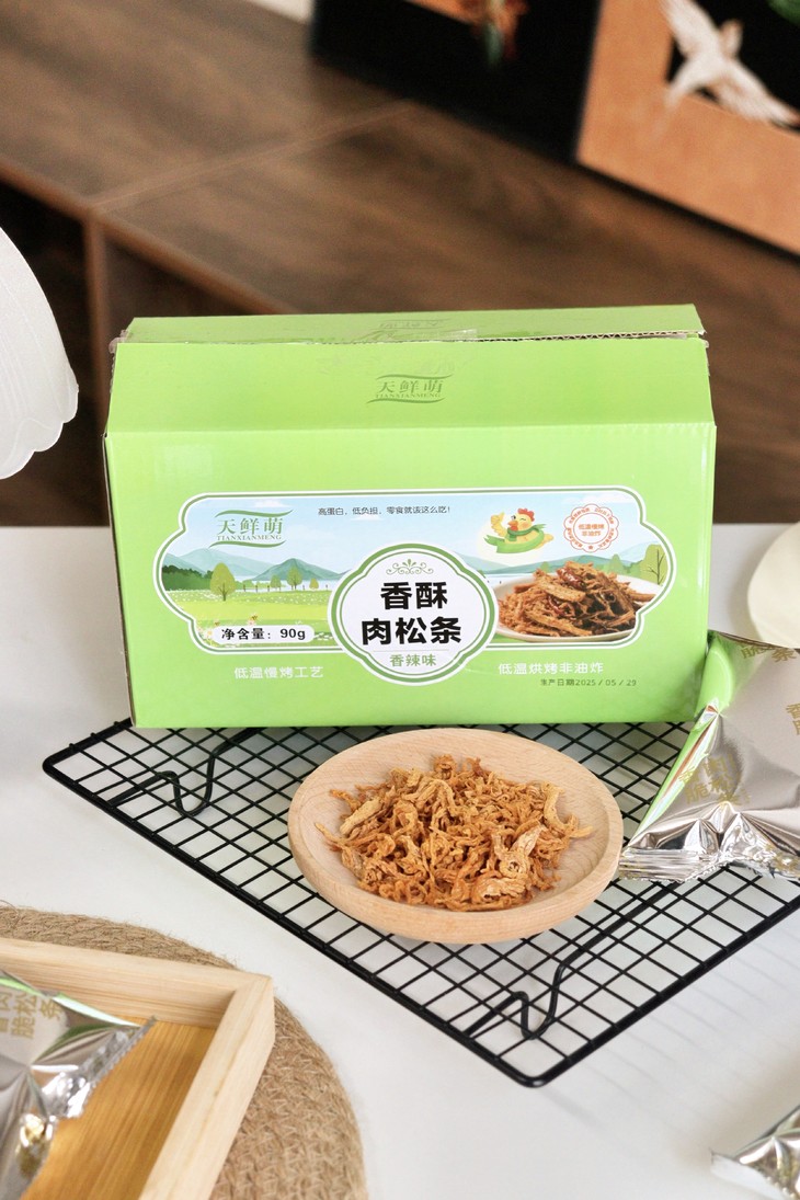 它简直就是零食界的叛徒! 超解馋还无负担! 明明是肉,偏要伪装成酥条 一口下去全是鸡胸肉的扎实感 😋鲜!香!酥!脆! 这种肉松条经过特殊工艺制作 肉香扑鼻,口感酥脆,不咸不腻 越嚼越香,后味还透着甘甜~ 香辣味直冲天灵盖,原味奶香勾魂… 根本停不下来! 就连我家不爱吃饭的小神兽 也能用它配白粥喝两碗! 无论是空口吃还是搭配其他食材 都能带来美妙的味觉体验