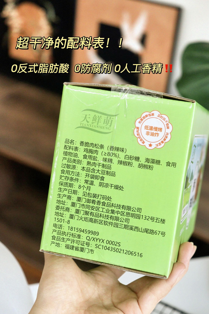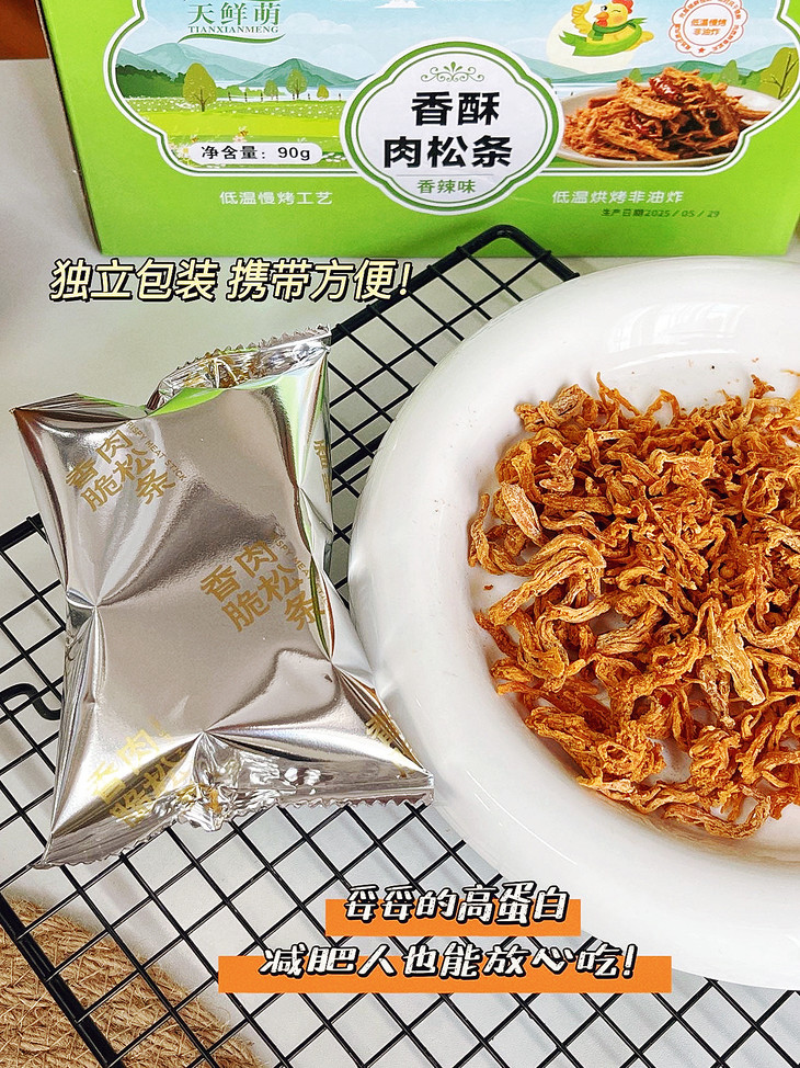健身党含泪认证🥹超解馋!无负担! 这玩意儿比鸡胸肉好吃100倍 配料表干净到像健身餐! 高蛋白暴击来了! 👉挑食宝宝、自律期、减脂期、健身减脂宝子们的天选零食❗️ 一口酥脆,满嘴肉香,好吃到舔手指 天鲜萌·香酥肉松条 ✅香辣味 & 原味双杀 配料干净到妈妈都放心! 🔥全网吃货都在疯抢这款肉松条 因为它把吃肉的快乐和吃零食的罪恶感 彻底撕碎重组了! 直接看实拍图 💢不同于市面上那些用豆粉做的假肉松 咱们这款是实打实鸡肉含量超80%! 撕开包装可见清晰肉丝纤维!👇