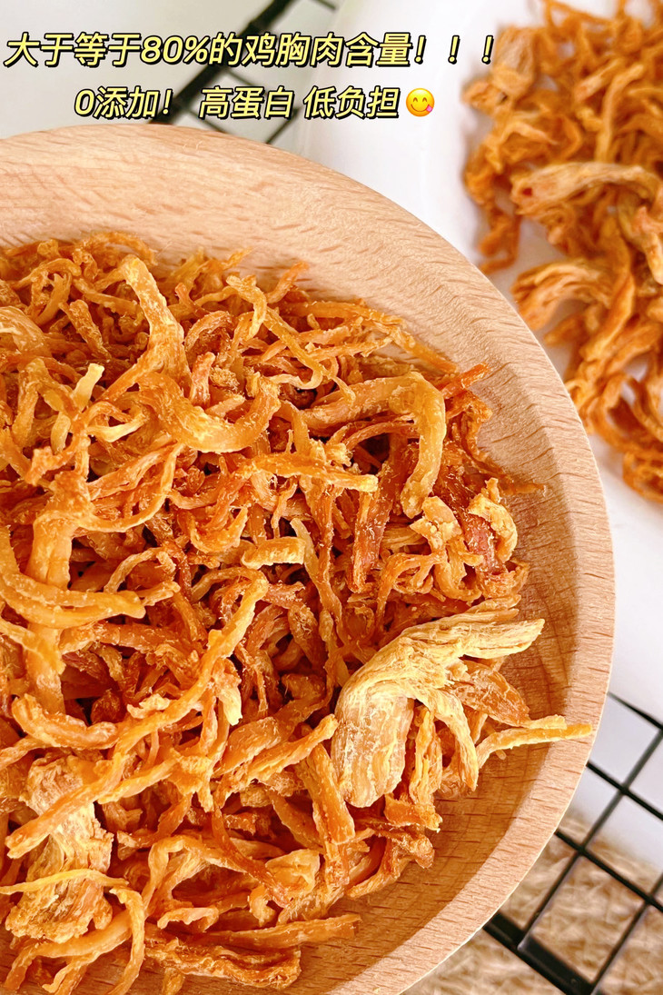 原料狠活!≥80%鸡胸肉的纯净革命 鸡胸肉的黄金标准 只选“运动系”鸡胸肉 精选养殖周期足、肉质紧实的鸡小胸部位 每块肉需人工剔除筋膜、结缔组织 实测蛋白质含量达30g+/100g 脂肪残留率<0.5%,低于普通肉松50% 确保肌纤维完整蓬松~ 真正做到“吃肉不贴膘”