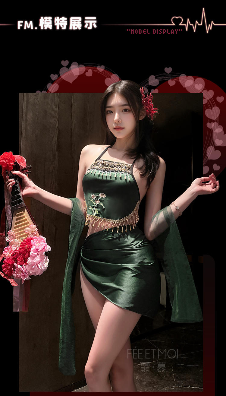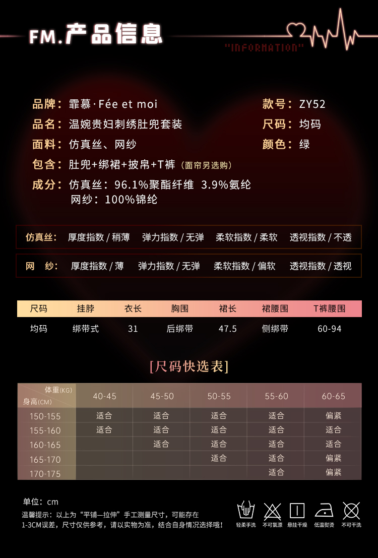 【情趣内衣】霏慕 温婉贵妇刺绣肚兜套装ZY52