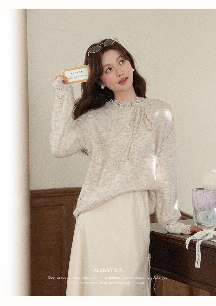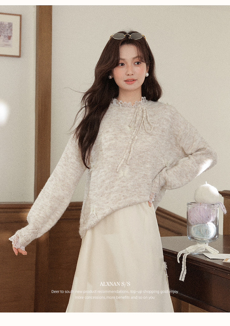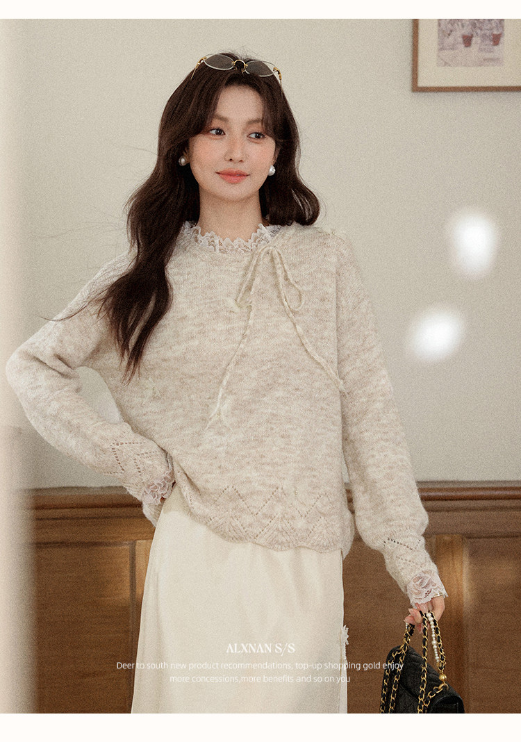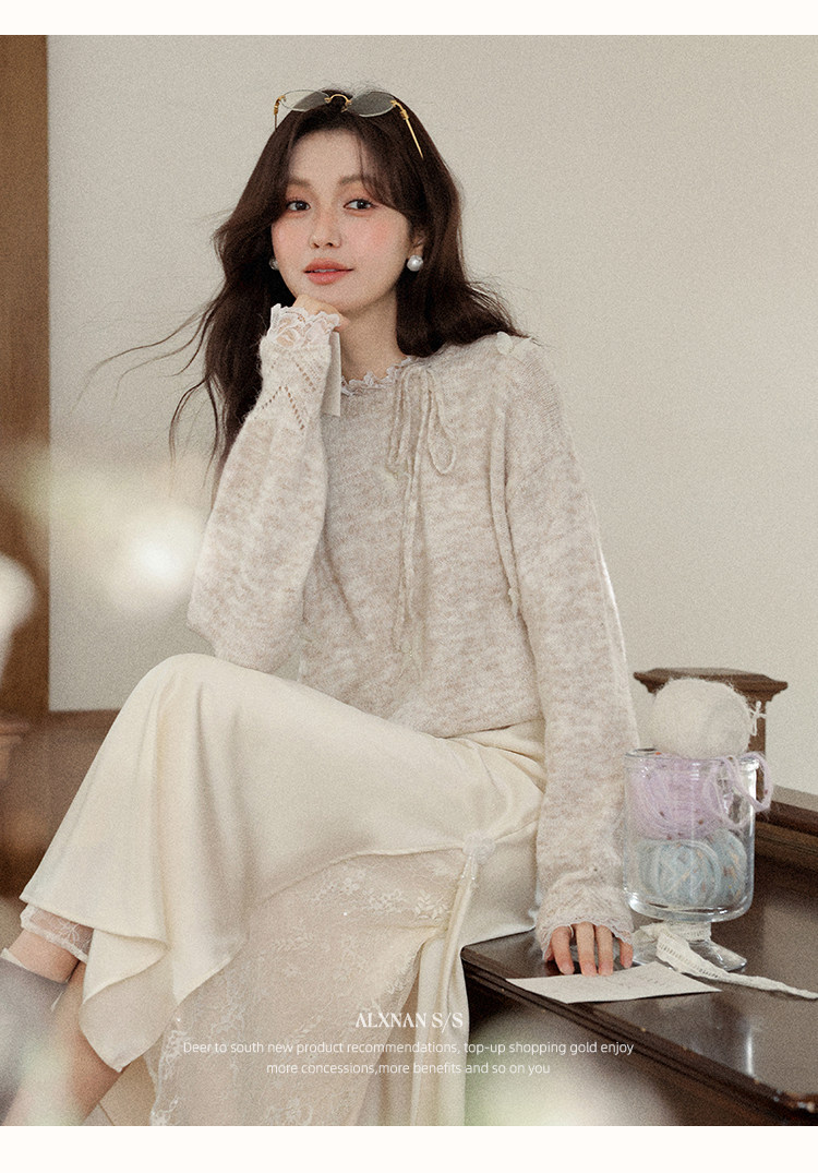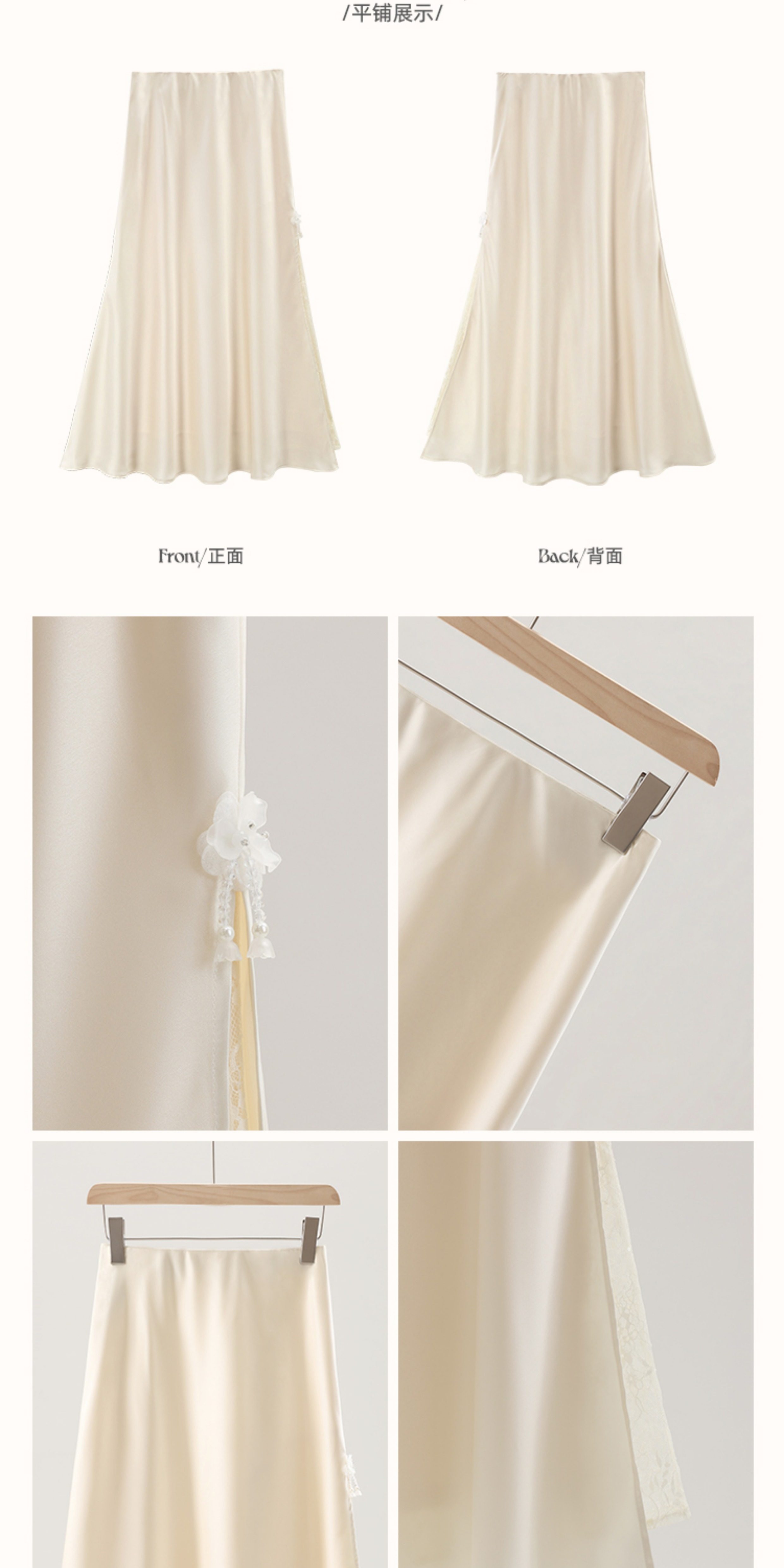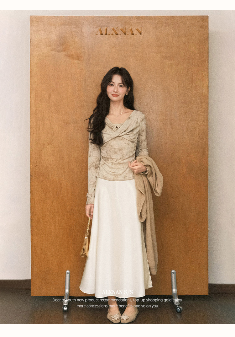 鹿向南「月光染」杏色法式半身裙女秋冬缎面半裙气质拼接蕾丝裙子
