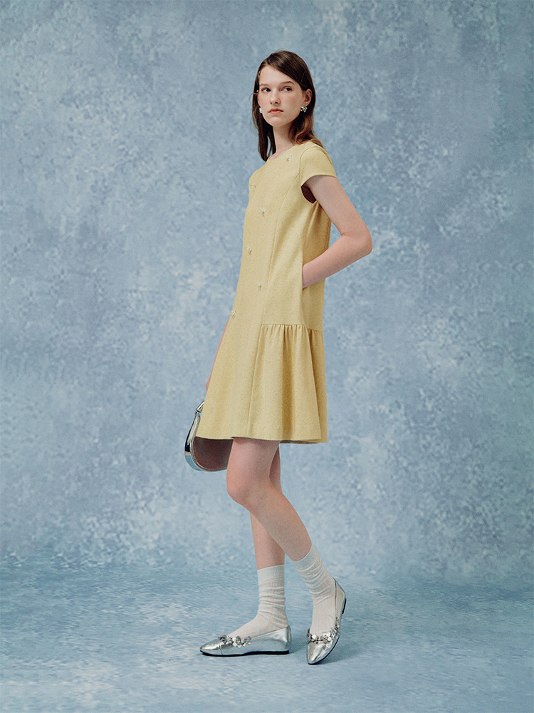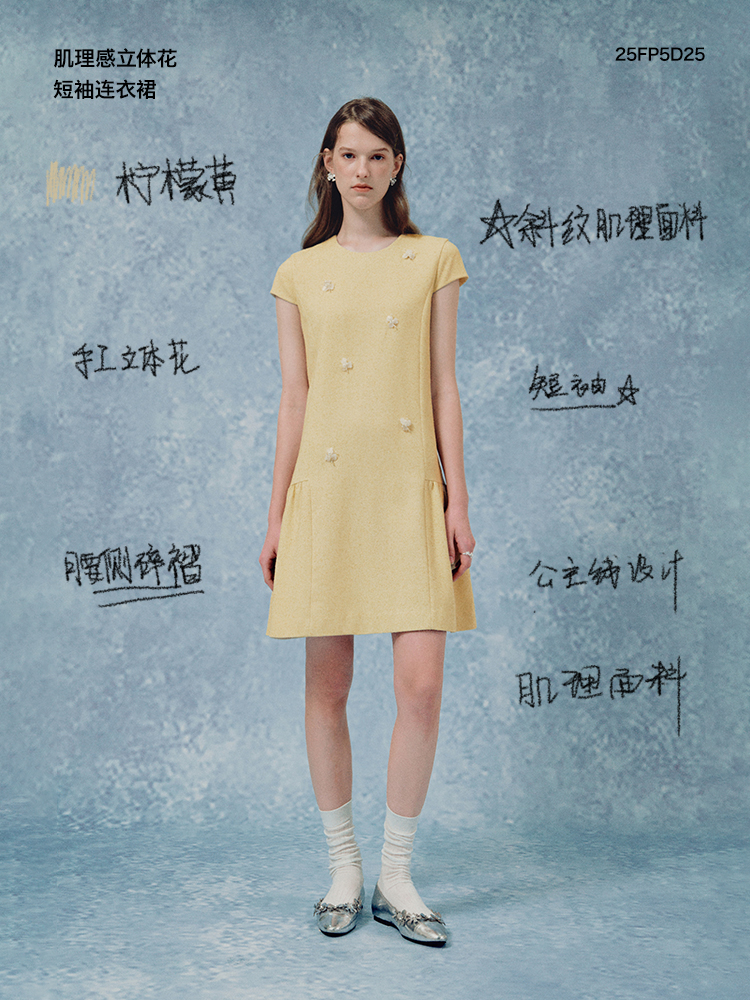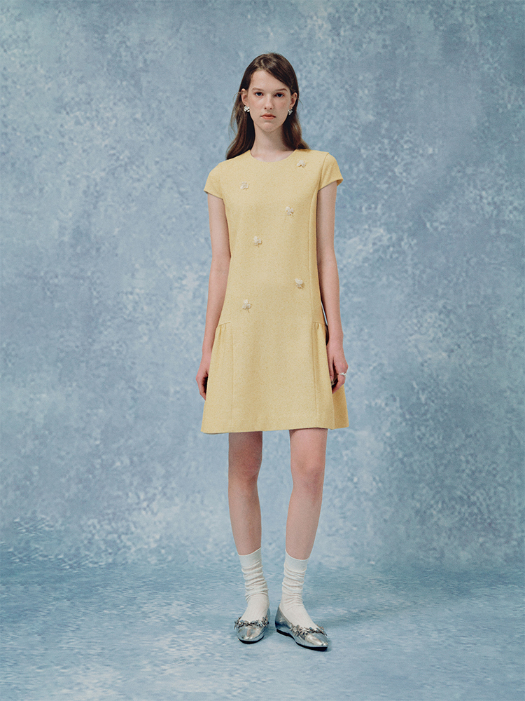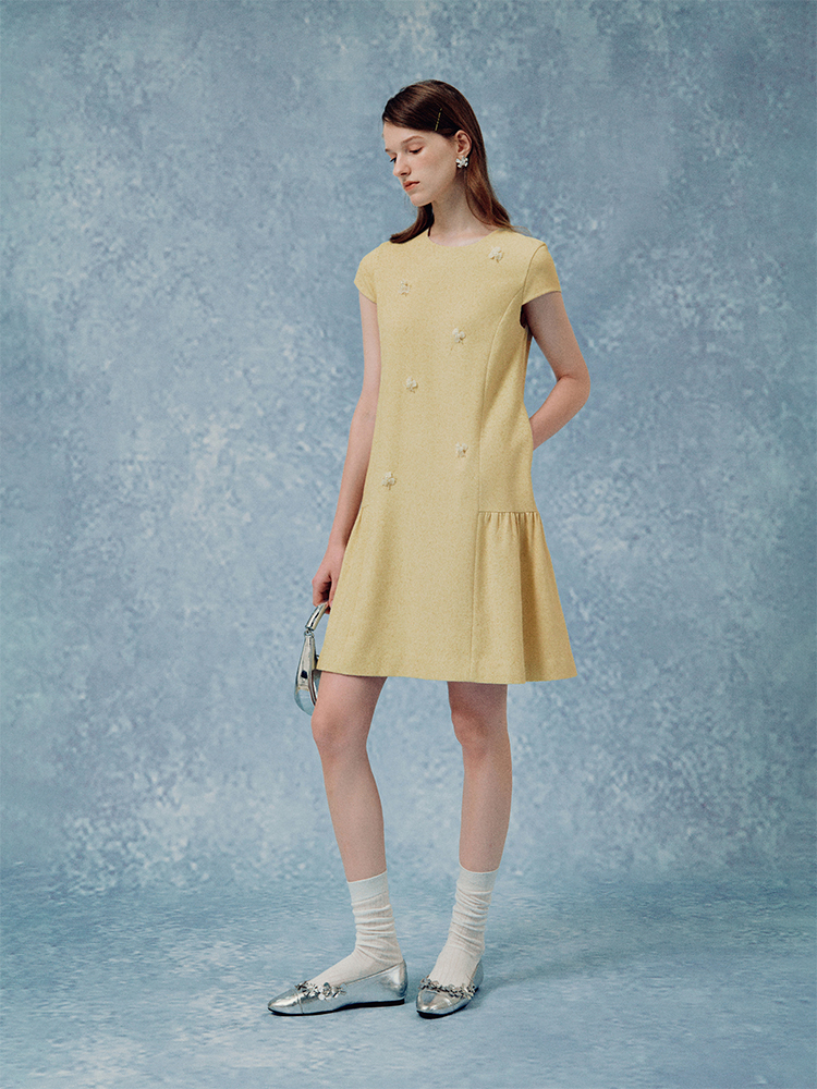 ForPoem 现货 25/SS原创设计肌理感精致珍珠花短袖连衣裙