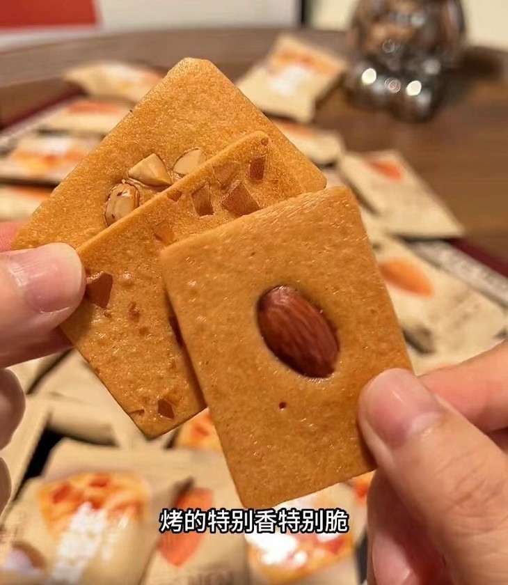 关键是❗ 打开后几乎每一个都有果仁儿,真的有坚果 不是照骗,而且巴旦木烤了之后好香好好吃!! 带点微甜🍡中间的腰果 丰富了口味的层次,特别香🤤🤤🤤