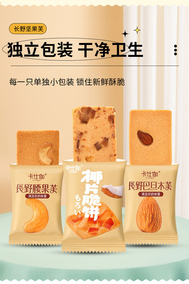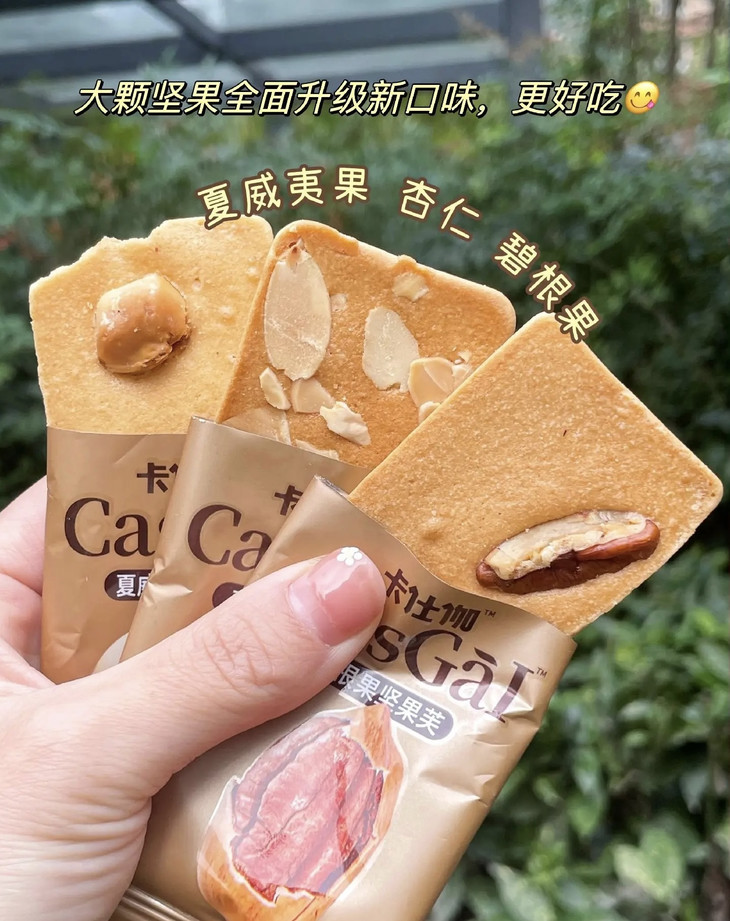 平时爱吃巴旦木嘛❓ 爱吃香香的腰果和椰片嘛❓ 爱吃酥脆的饼干嘛❓ 恰巧你都💕的话 那么一定要看看卡仕伽的这个长野坚果芙 集巴旦木、腰果、椰片和饼干于一体的坚果脆饼干 新口味更有碧根果、夏威夷果、杏仁3种坚果,一次集齐6种口味坚果芙。 酥脆可口🉑🉑好吃到停不下来!!