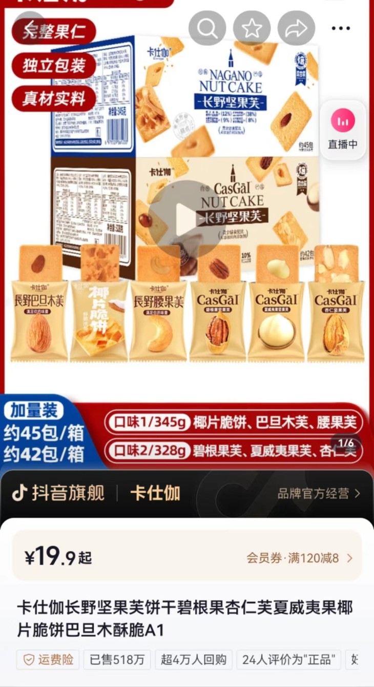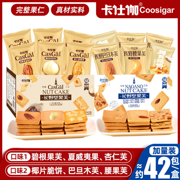 🔥🔥🔥【卡仕伽长野坚果芙】全网1000+万单大爆款!!! 与辉同行战略合作品牌的✔✔ 有夏威夷果,碧根果,杏仁芙3种口味混合,一箱42包左右