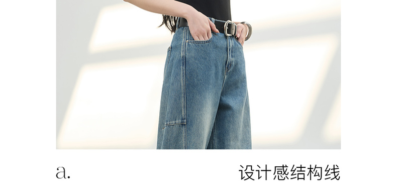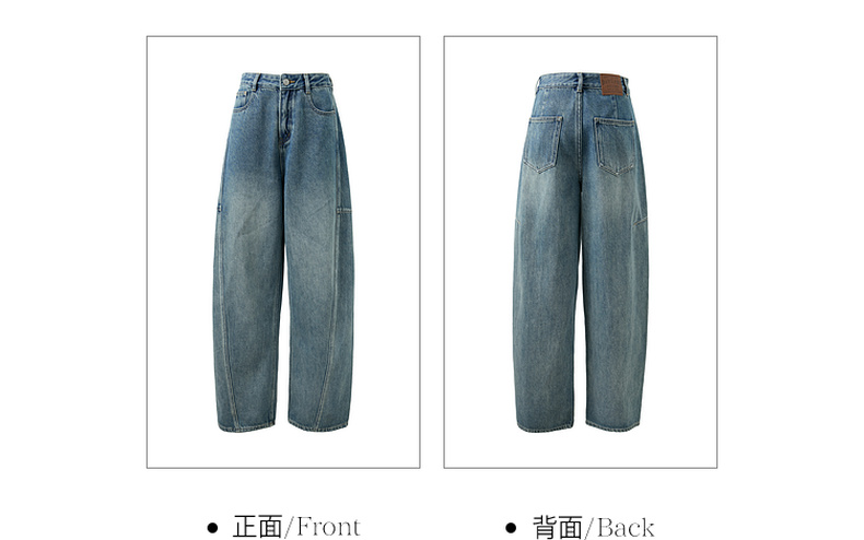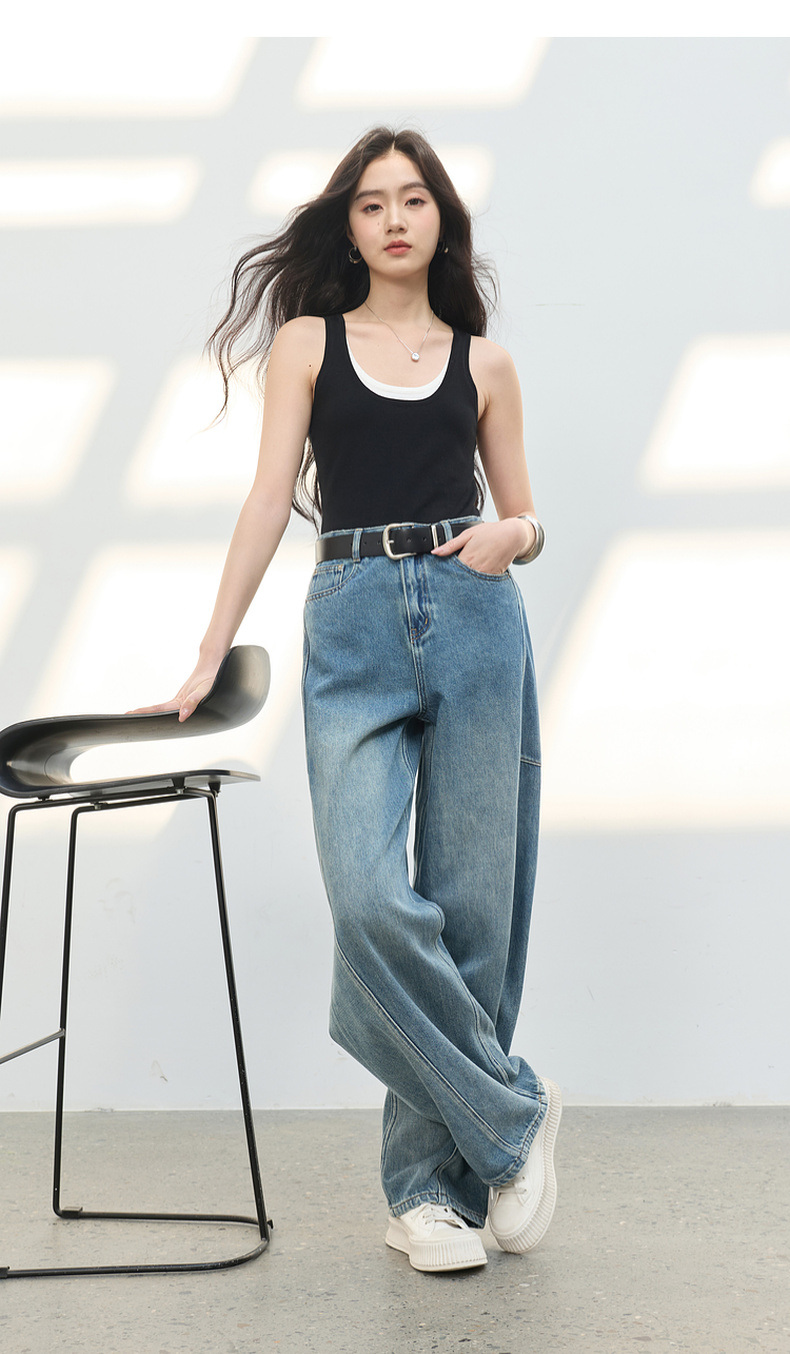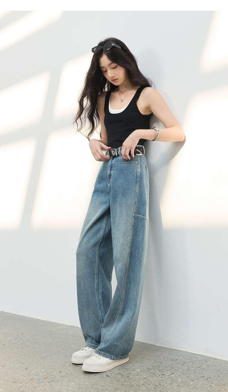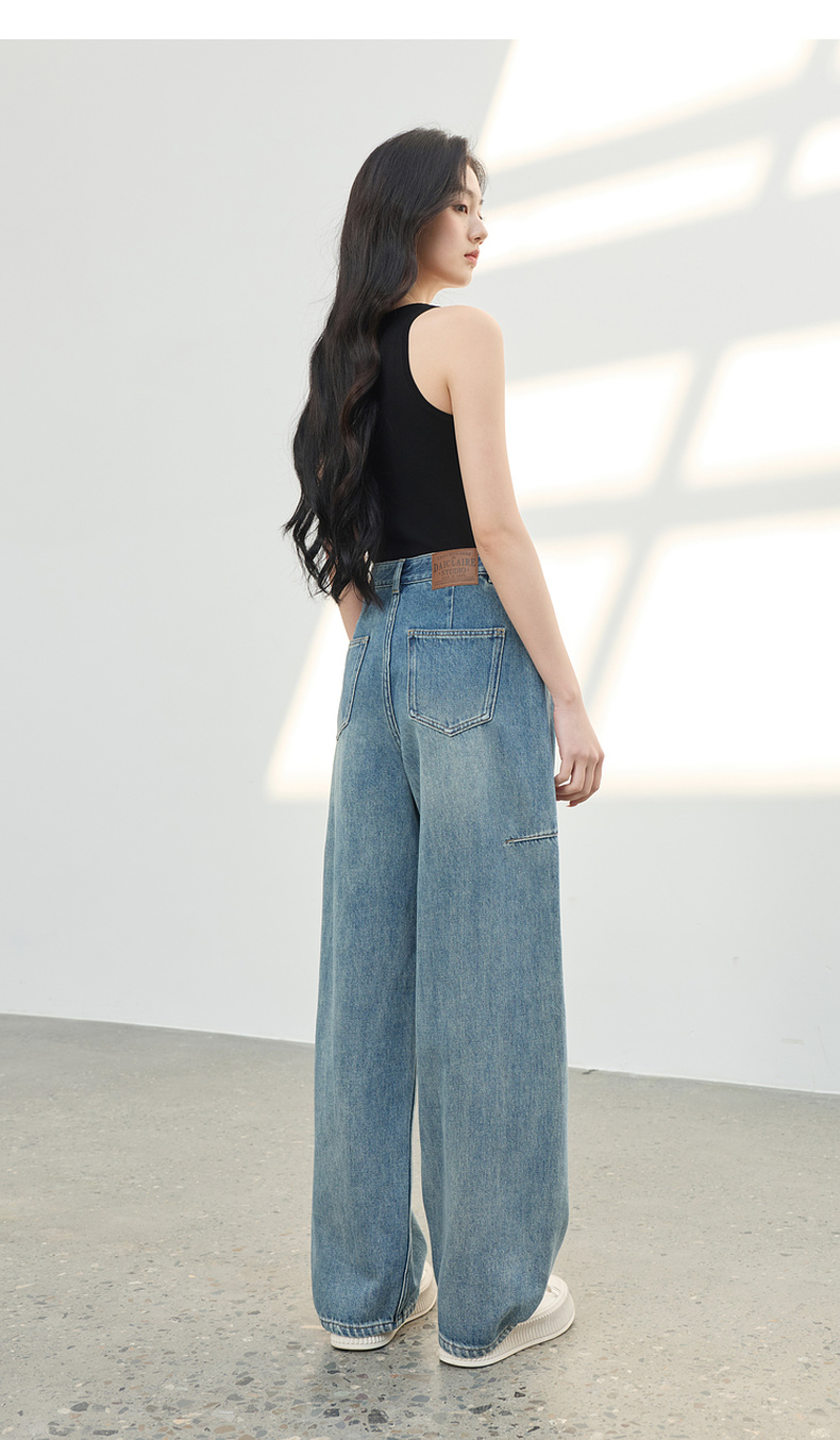 三彩2026春季新款复古休闲裤高腰牛仔裤长裤宽松弯刀裤显瘦垂感M