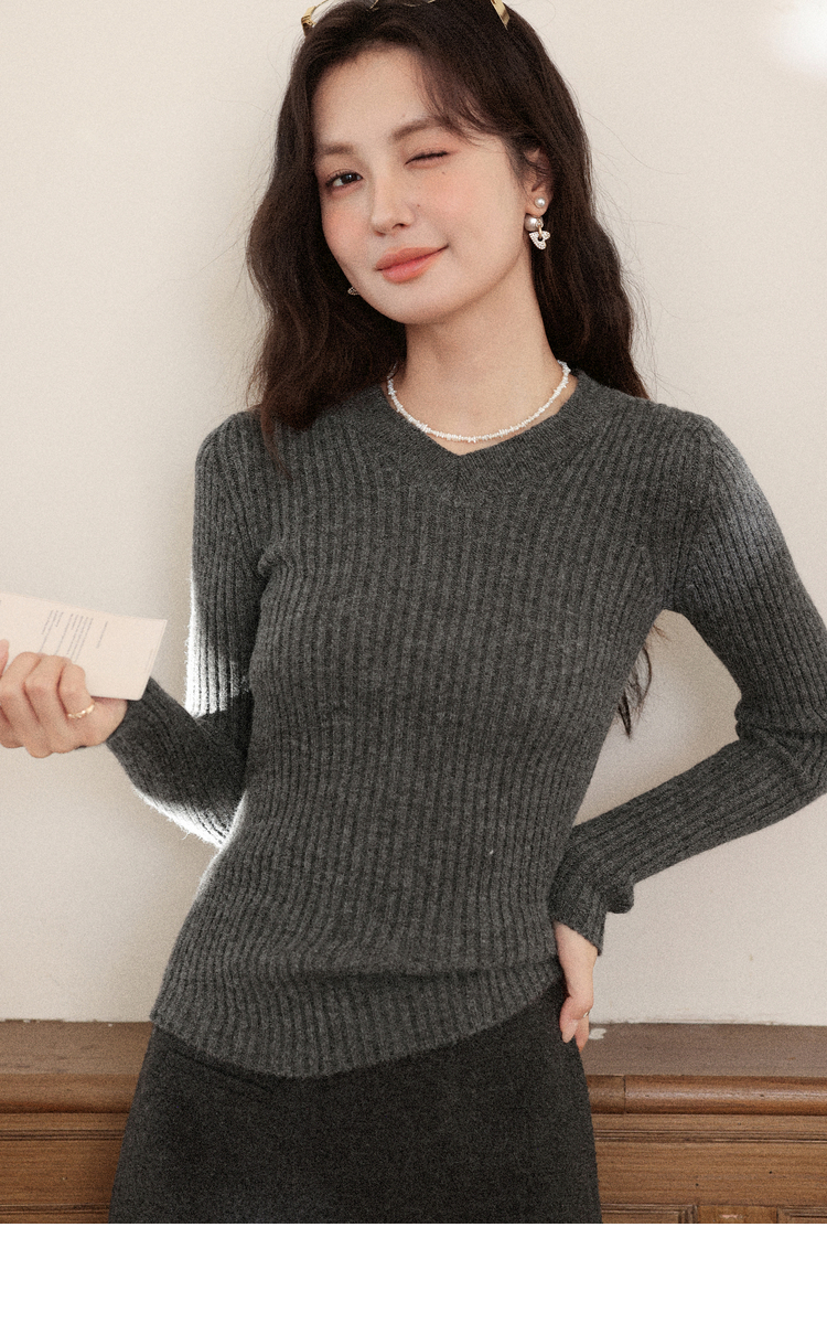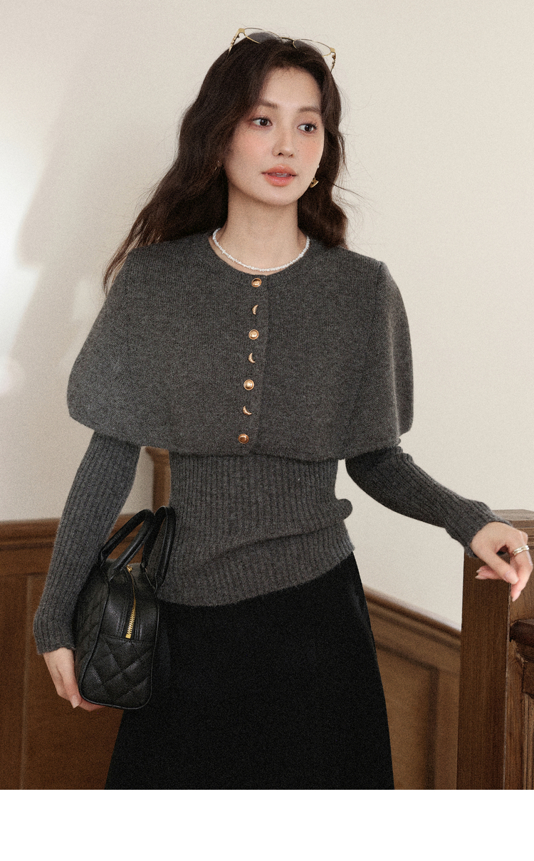 鹿向南「优雅公主」灰色毛衣长袖上衣女斗篷披肩外套秋冬款两件套