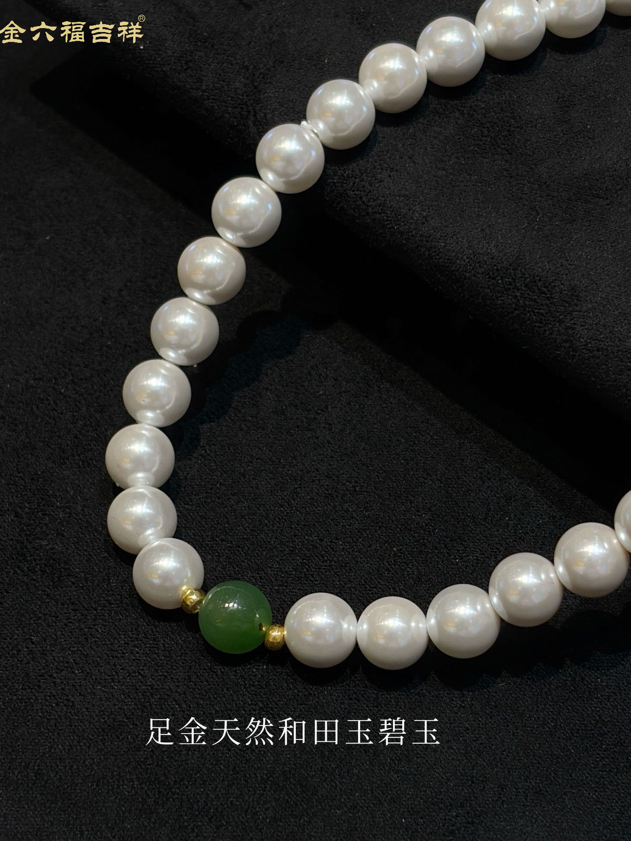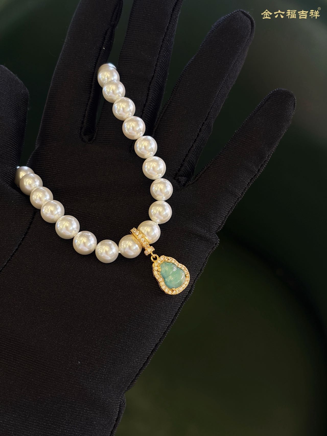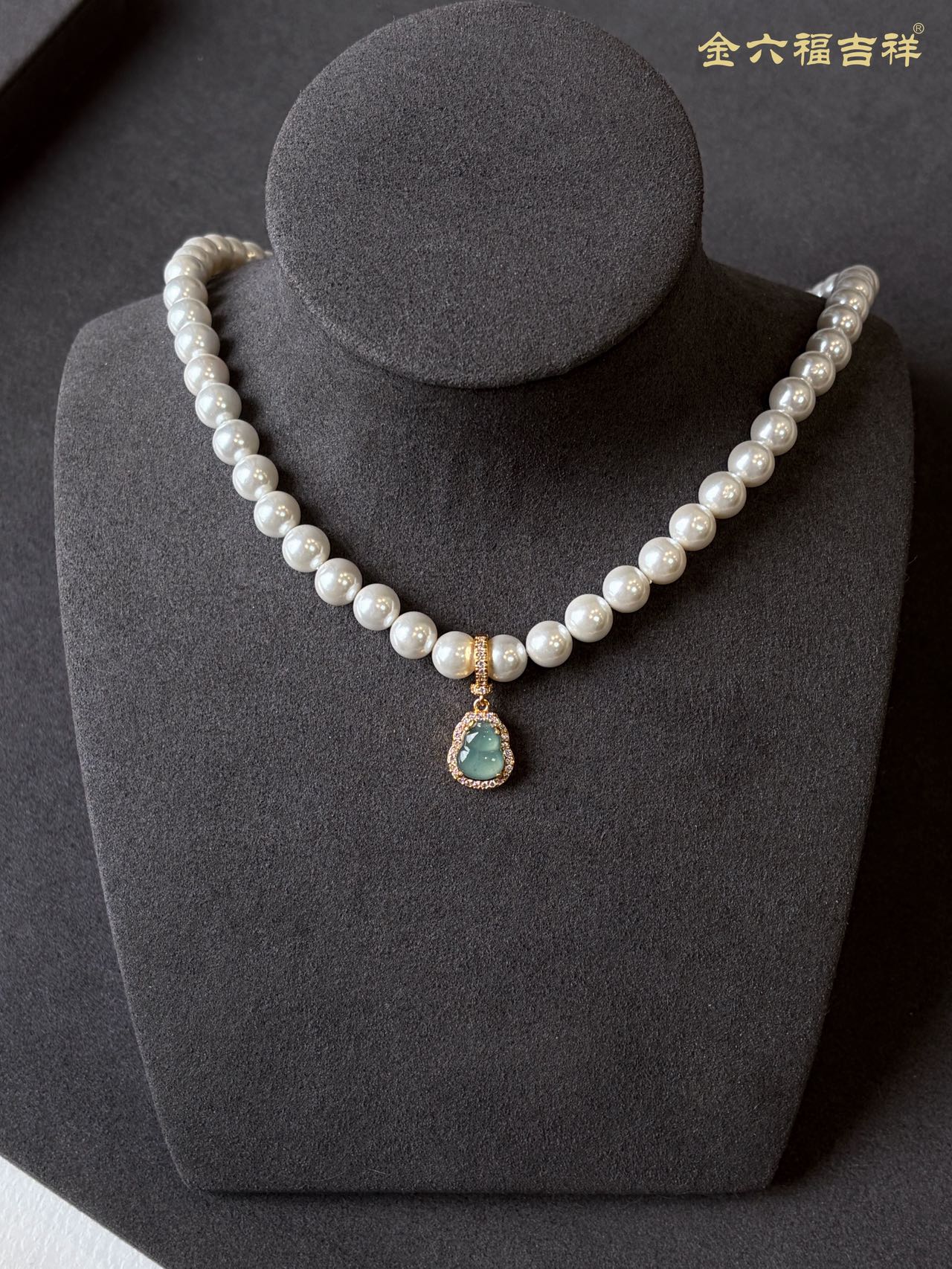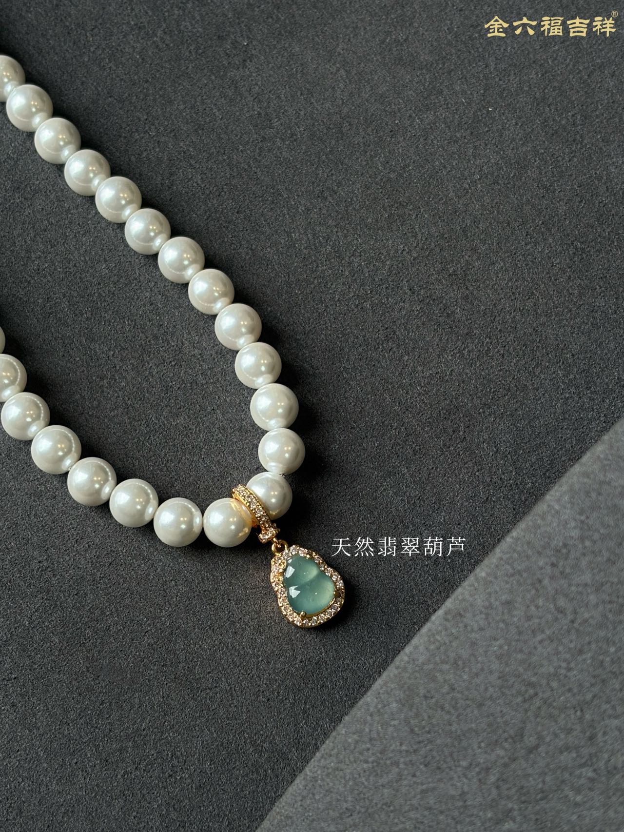 【母亲节礼物】金六福吉祥 足金和田玉澄波贝影项链/天然翡翠葫芦深海幻光项链