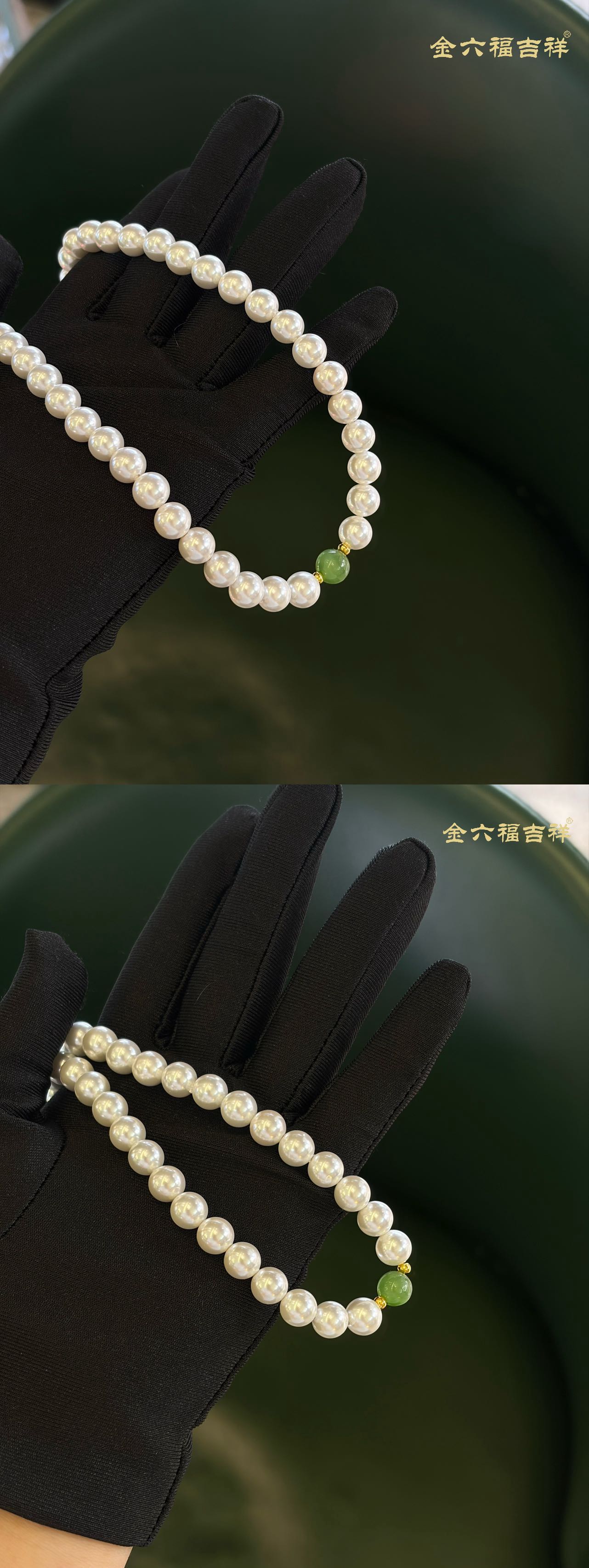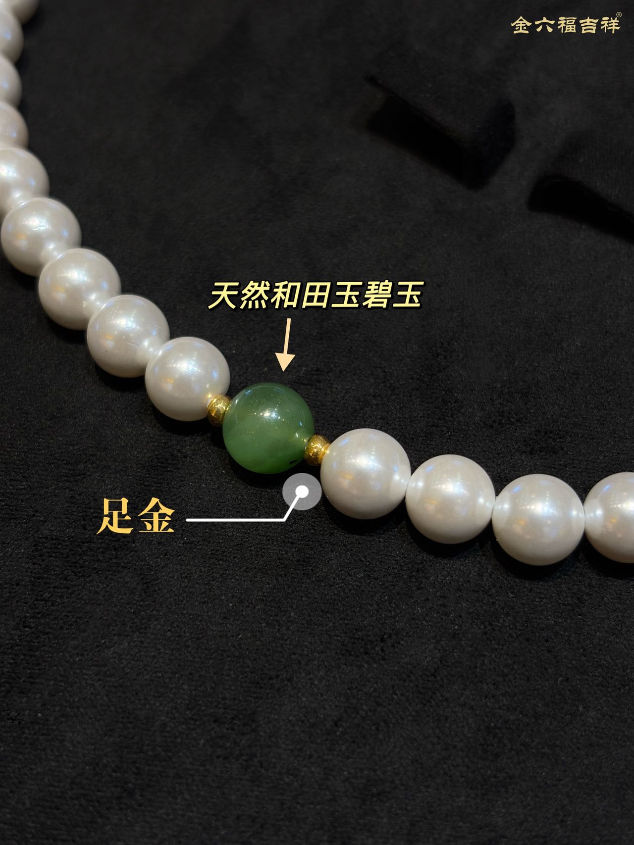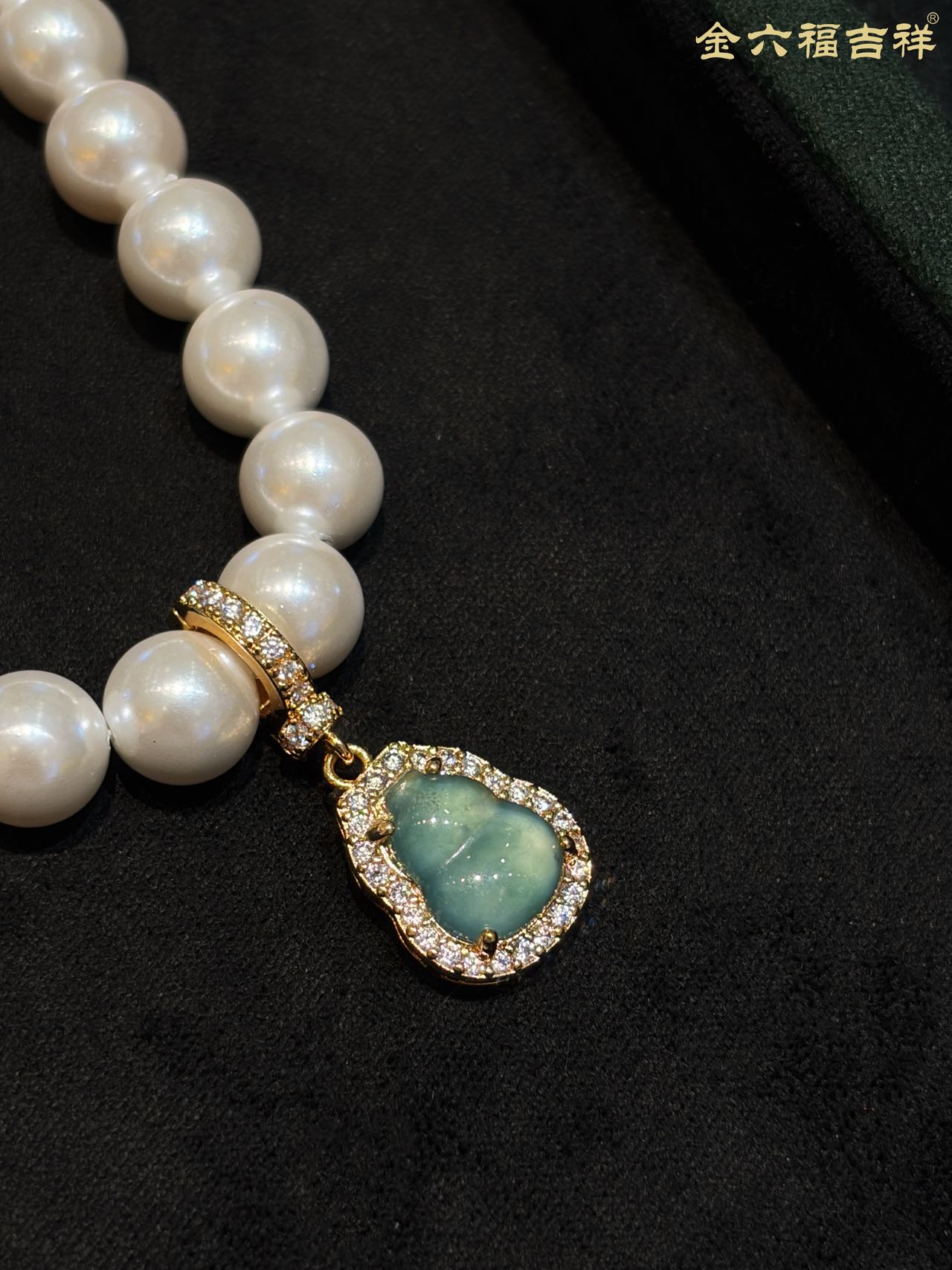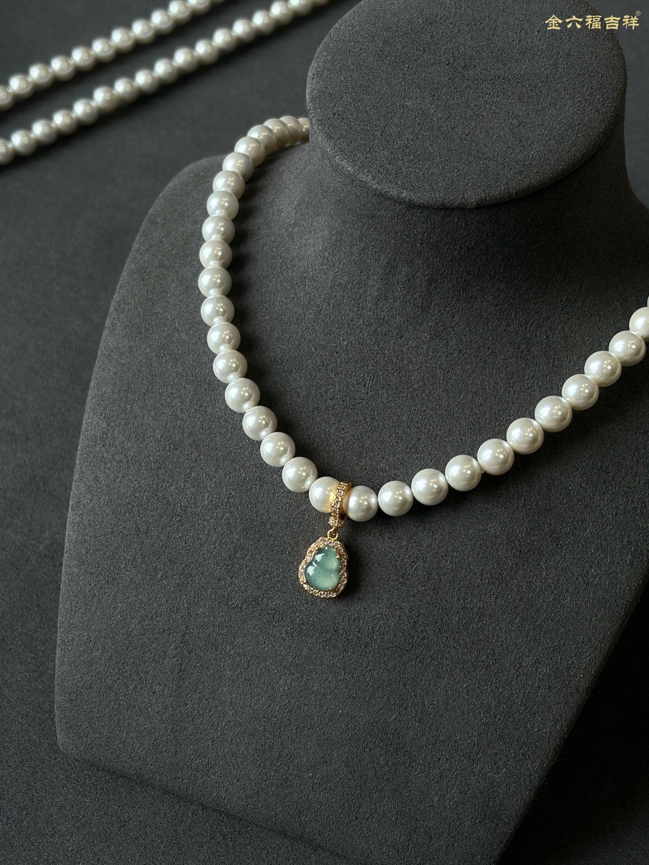 【母亲节礼物】金六福吉祥 足金和田玉澄波贝影项链/天然翡翠葫芦深海幻光项链