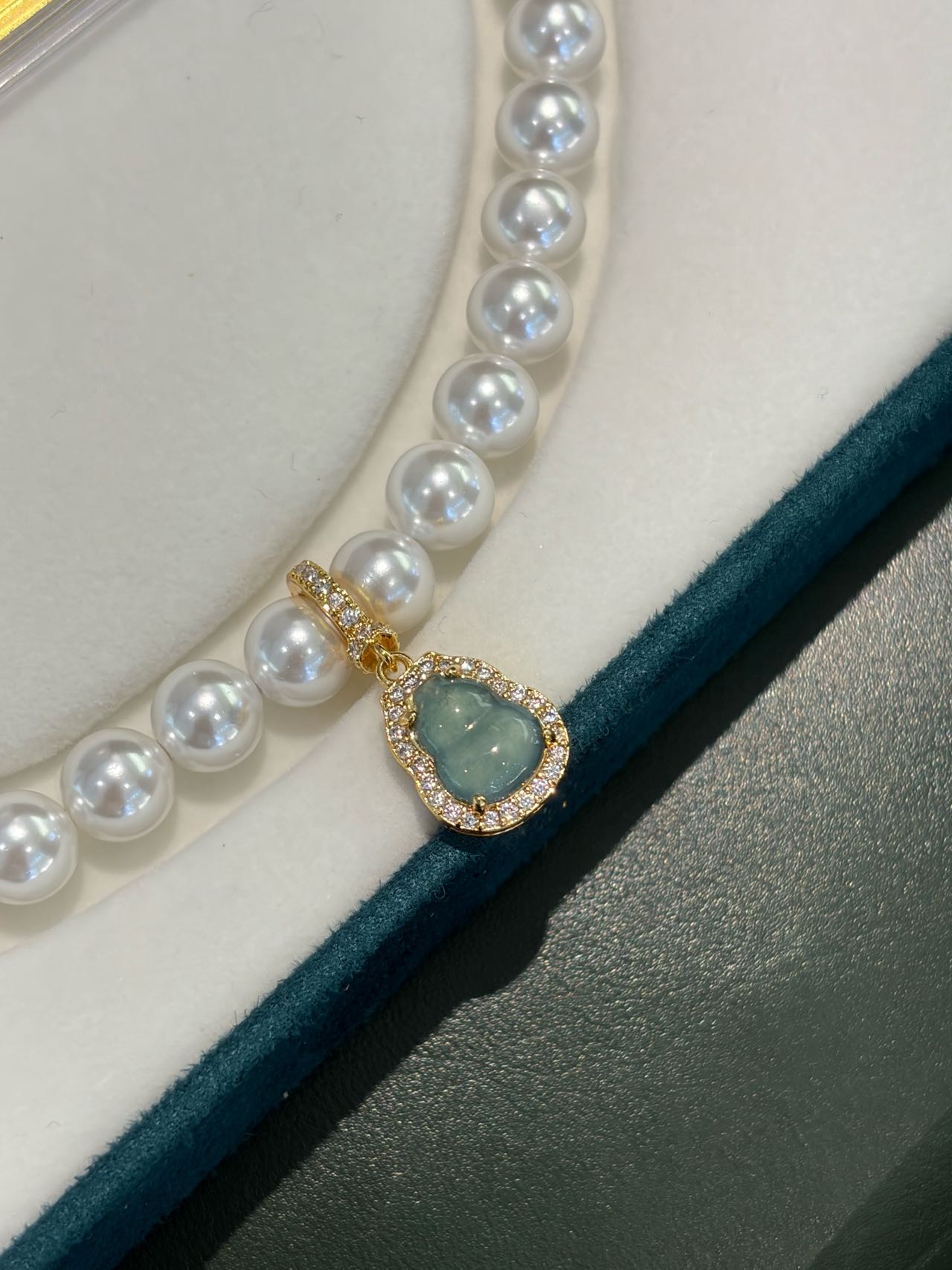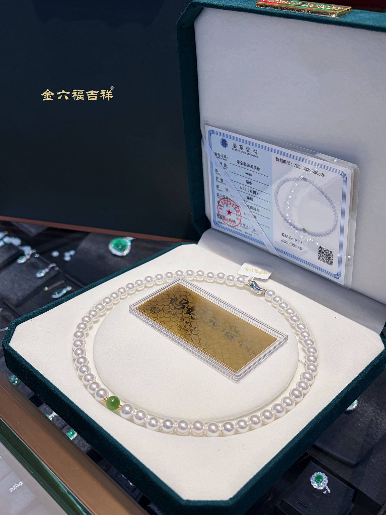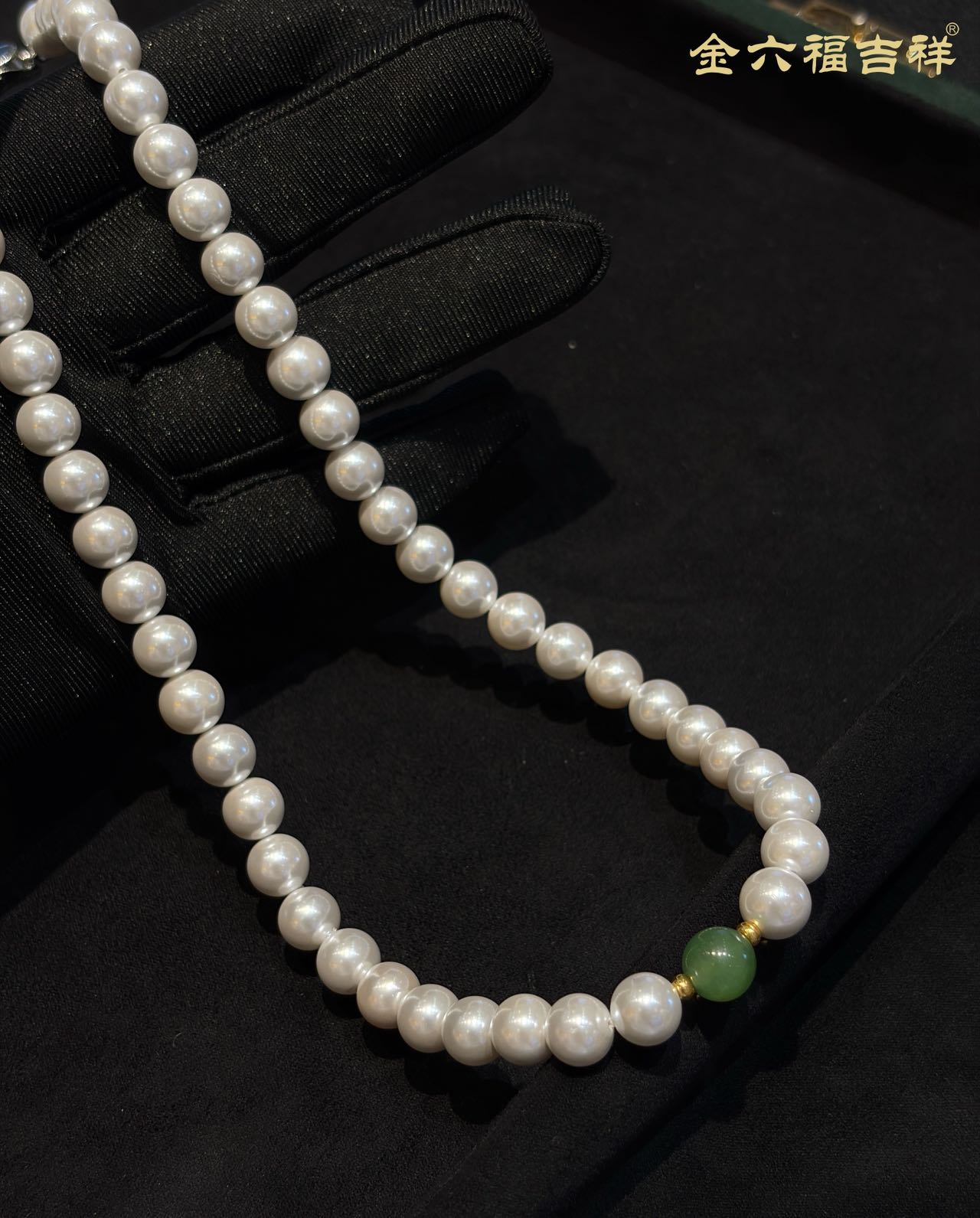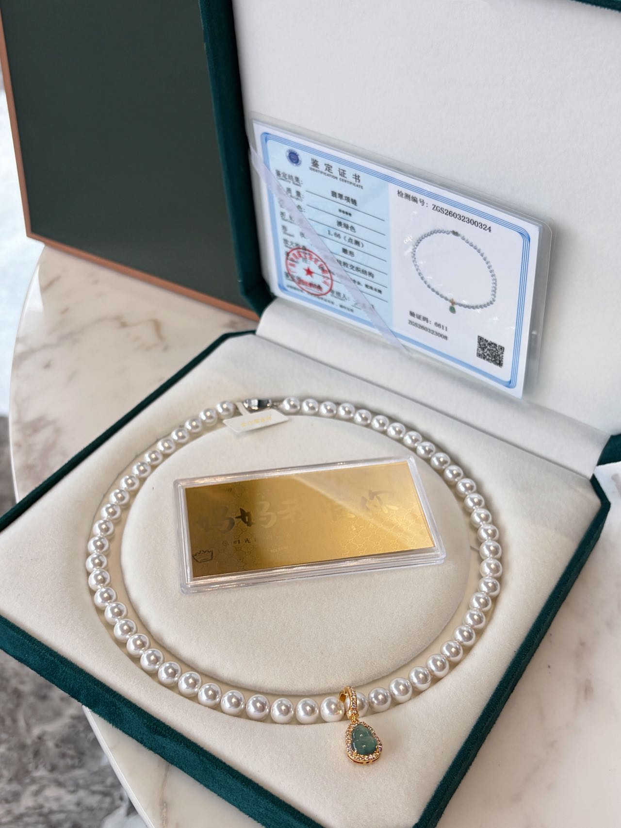 【母亲节礼物】金六福吉祥 足金和田玉澄波贝影项链/天然翡翠葫芦深海幻光项链