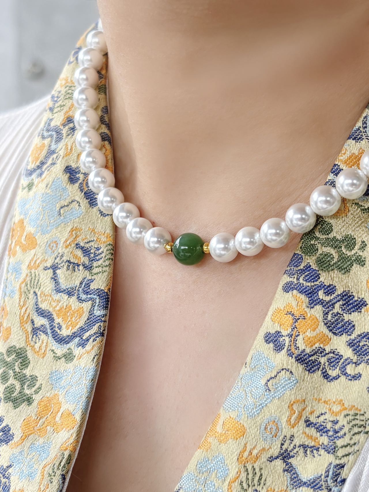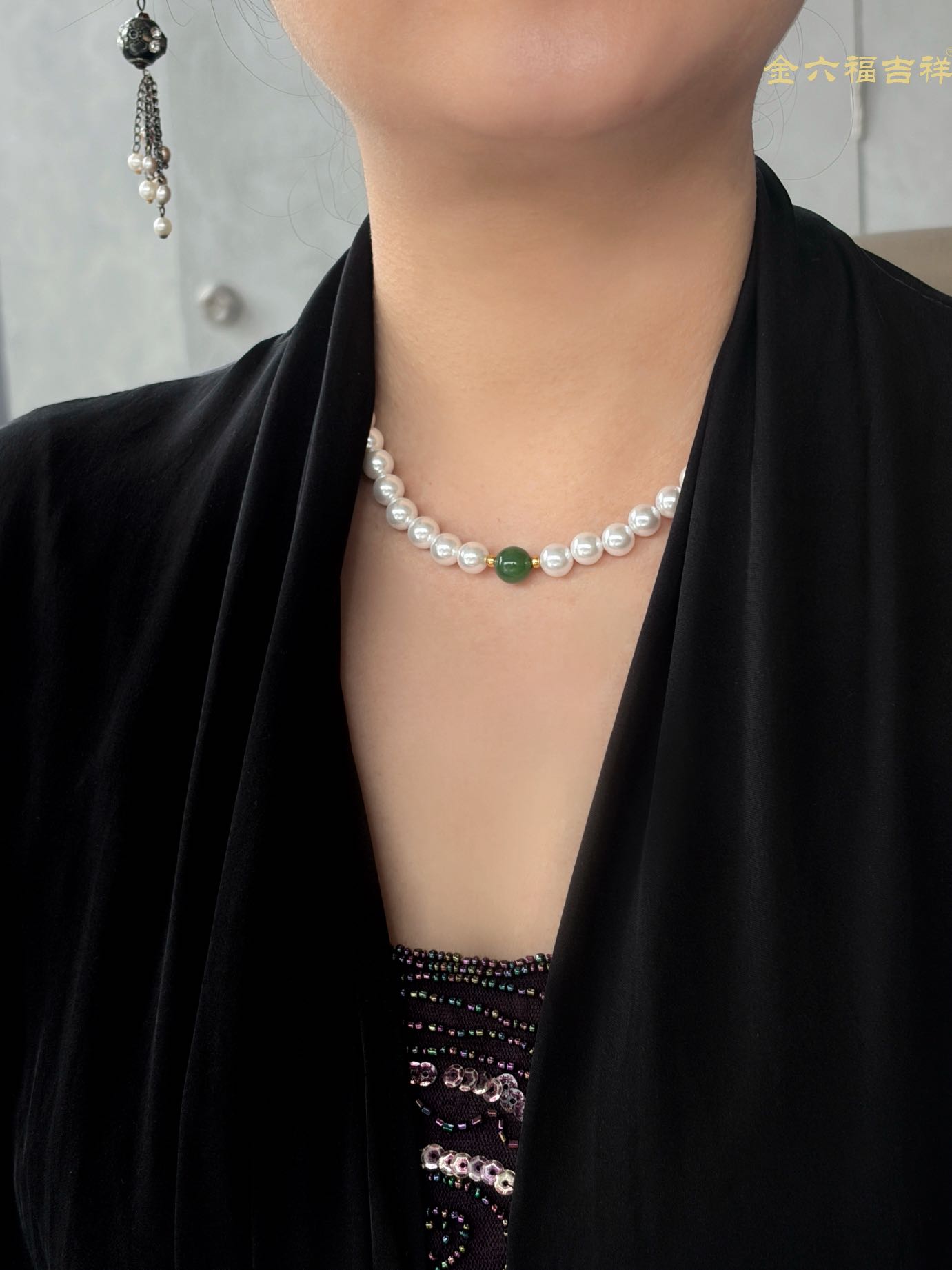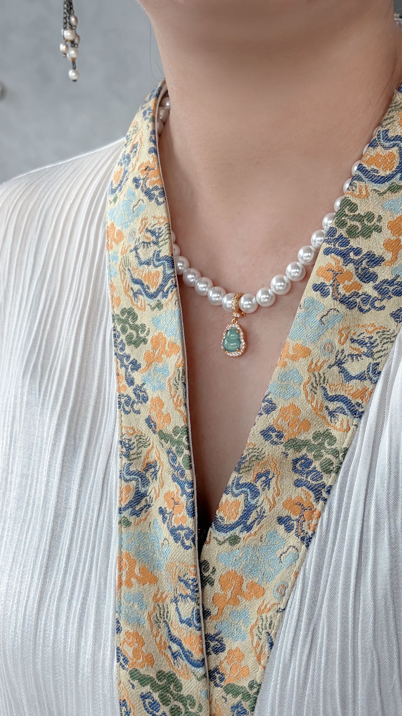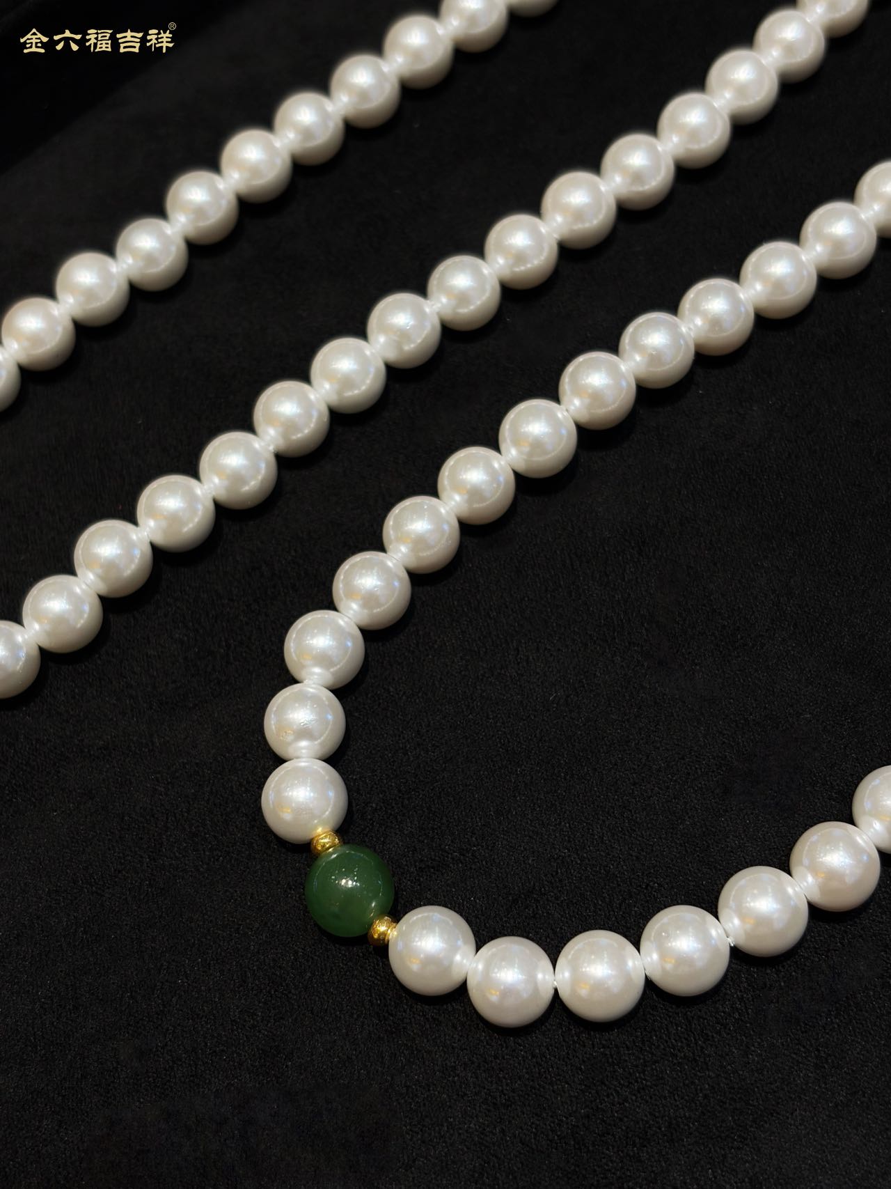 【母亲节礼物】金六福吉祥 足金和田玉澄波贝影项链/天然翡翠葫芦深海幻光项链
