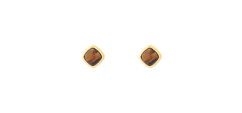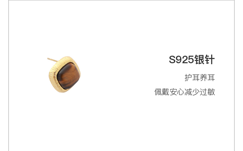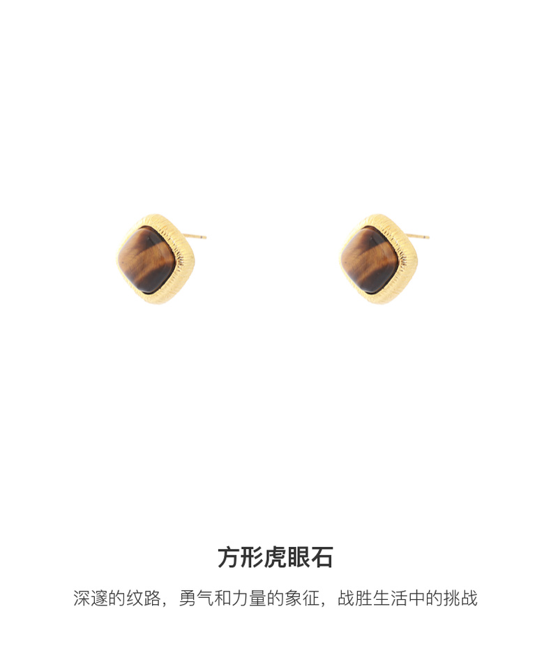 【美拉德系列】三彩2025新款复古虎眼石耳钉S925银针经典方形个性