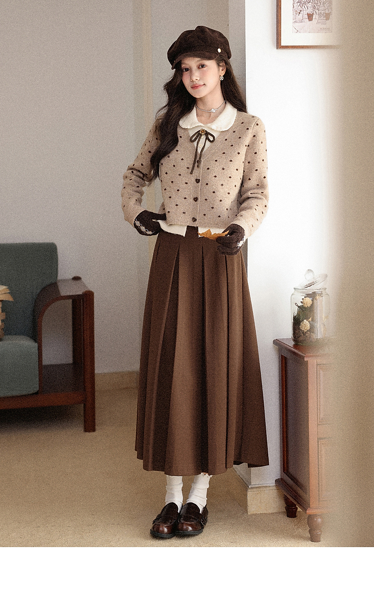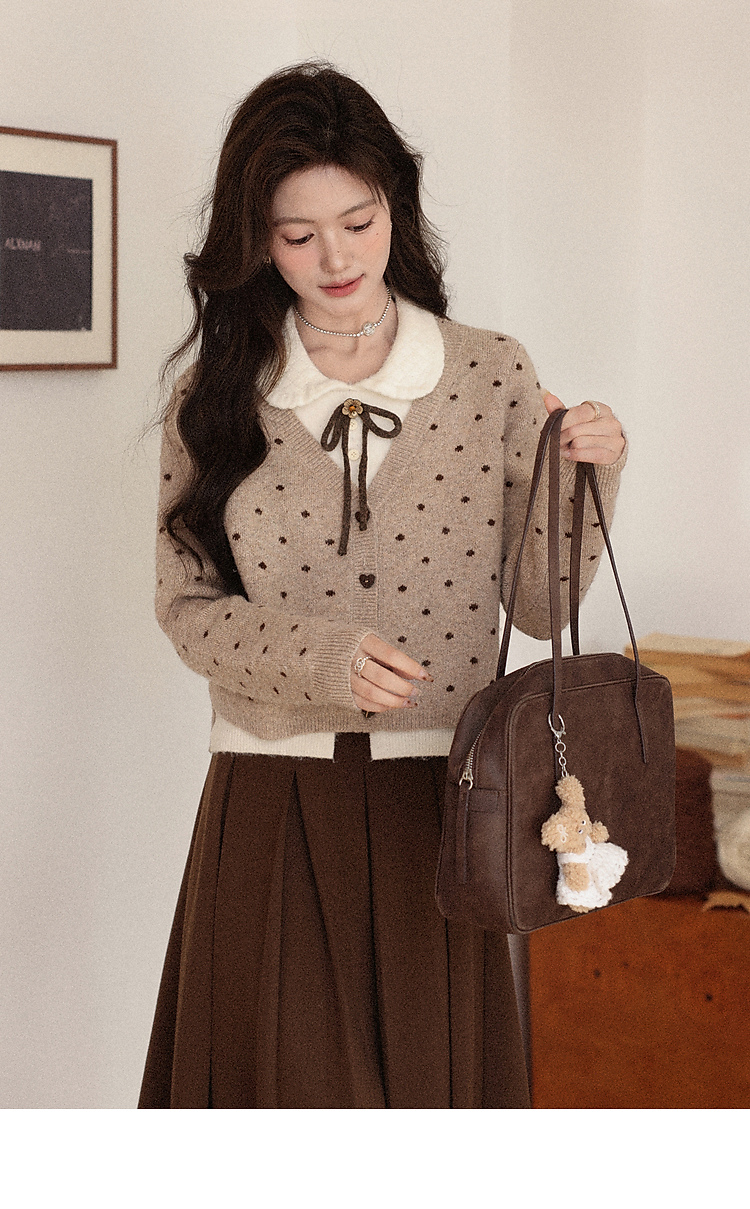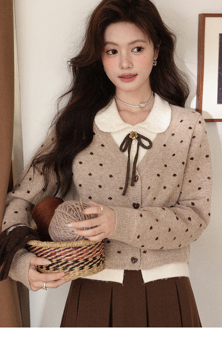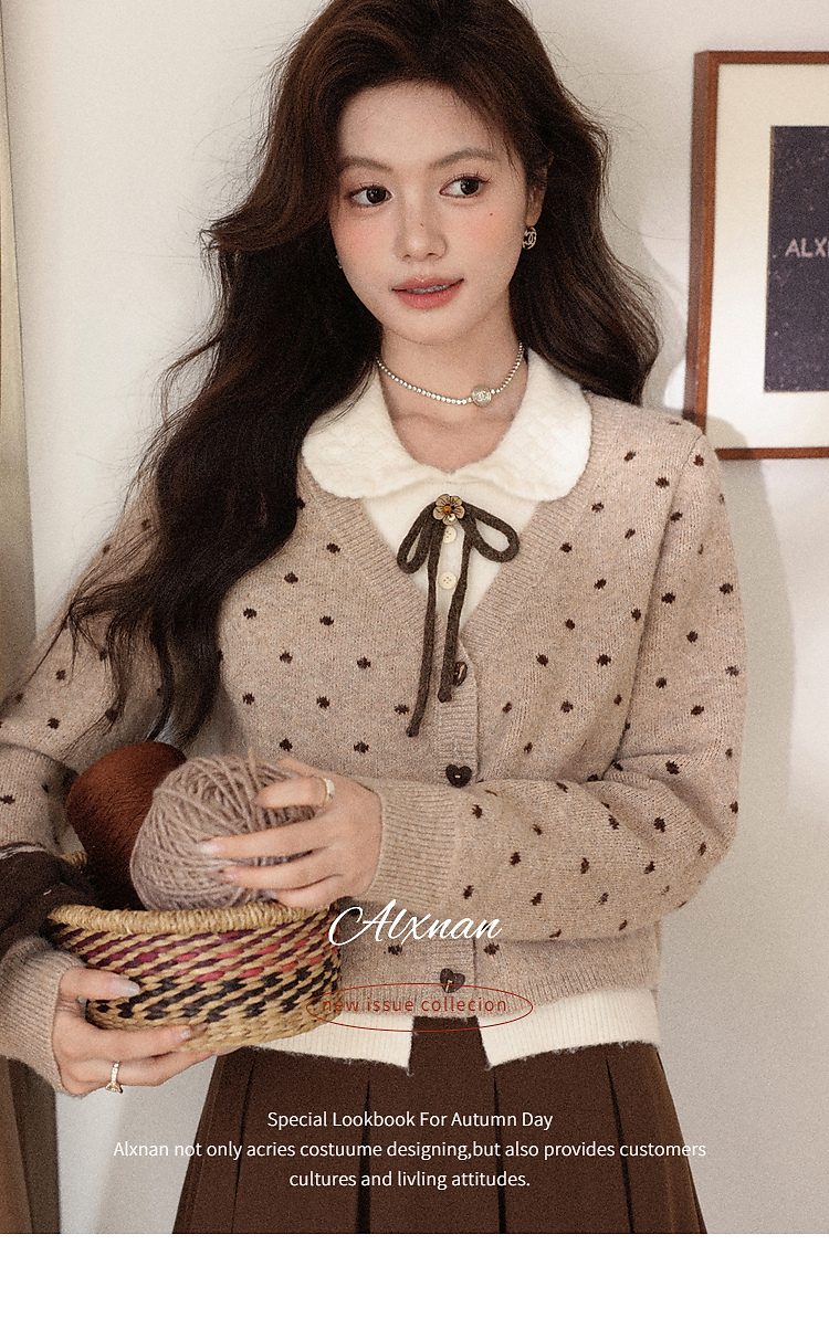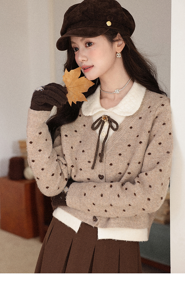 鹿向南「栗色织梦」棕色假两件小众波点毛衣女秋新款别致长袖上衣