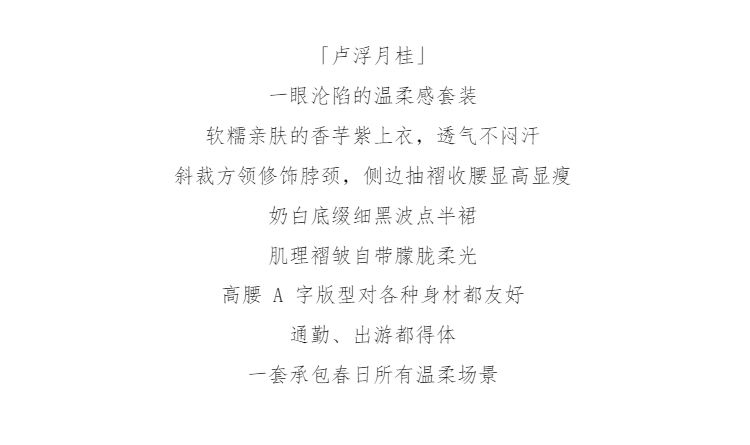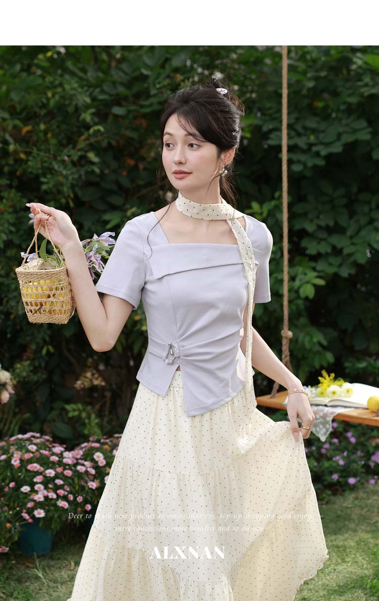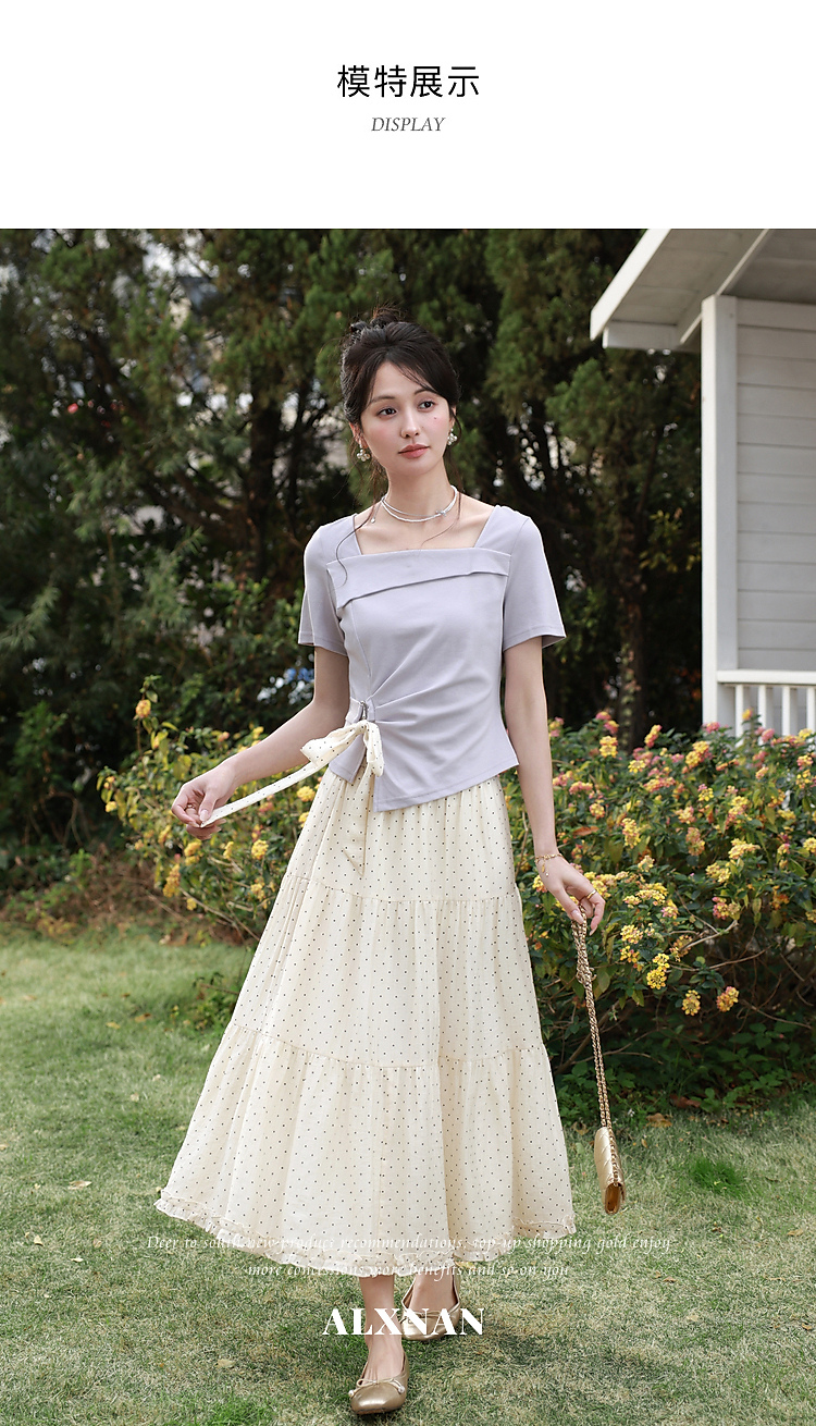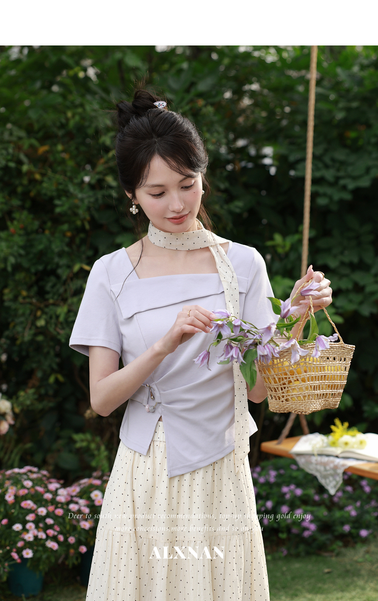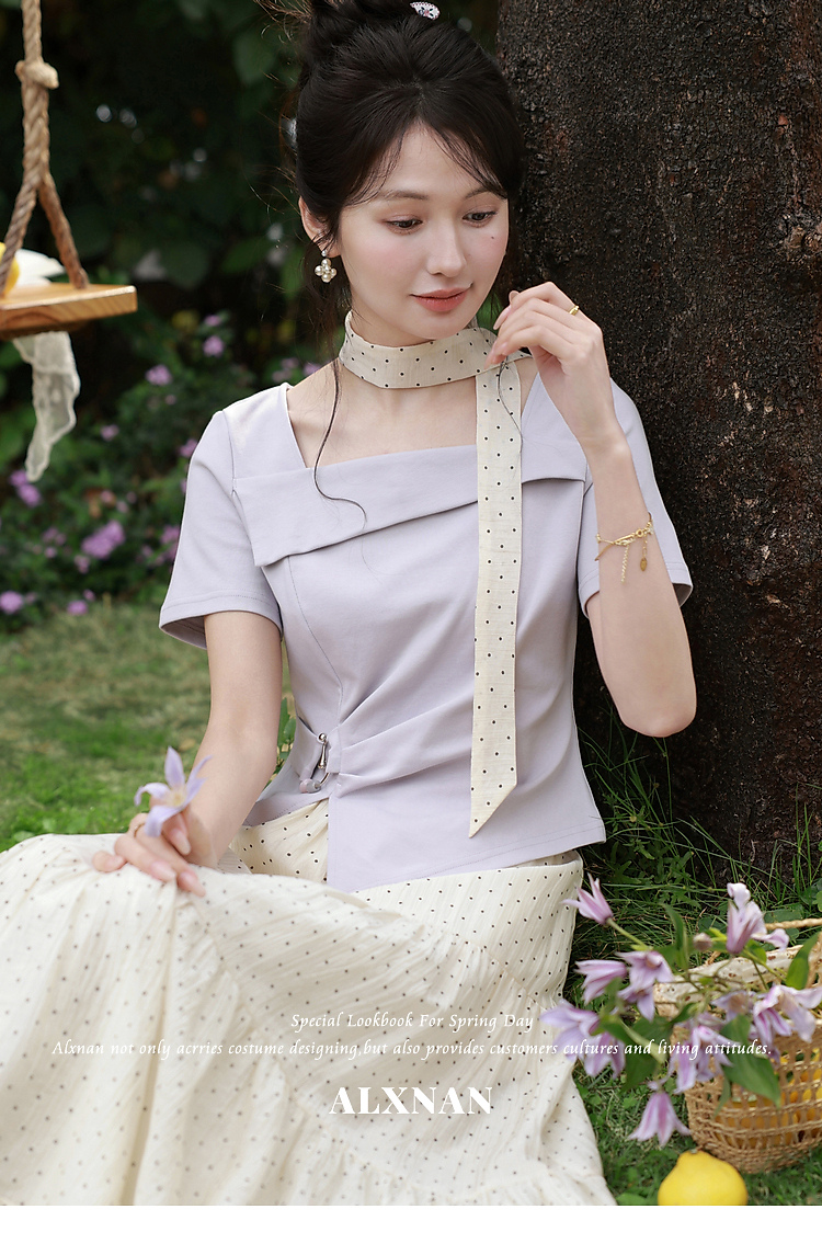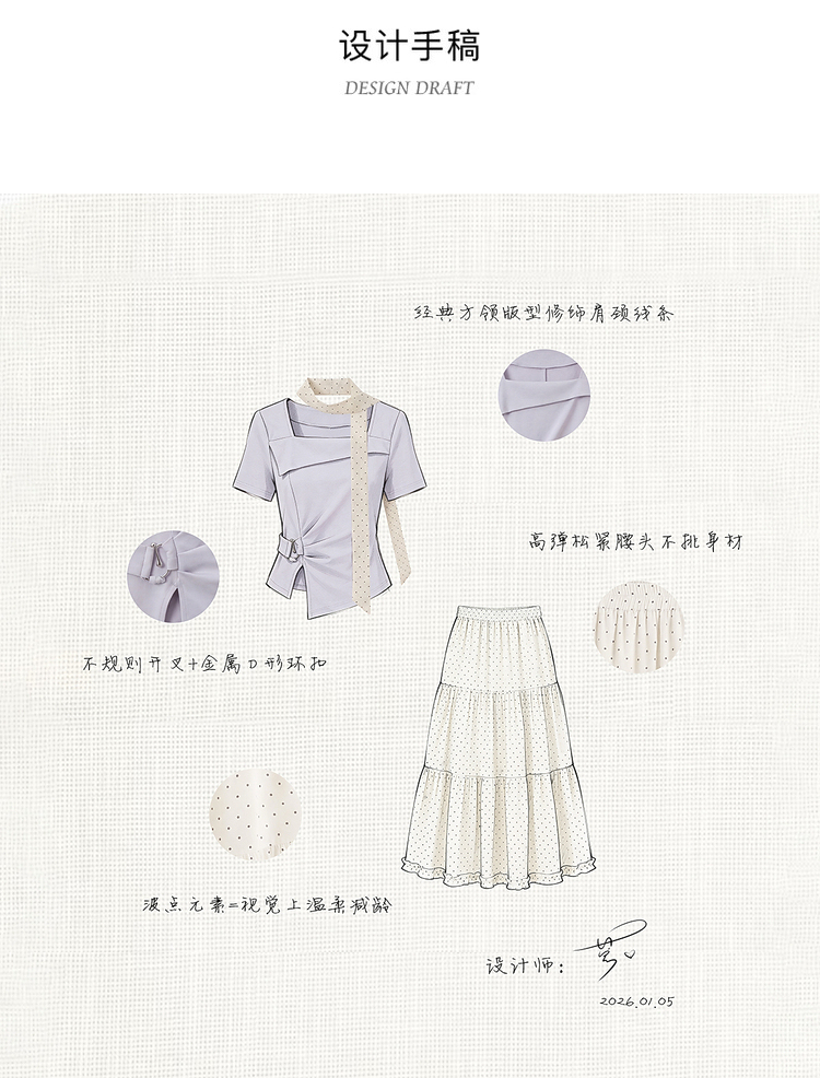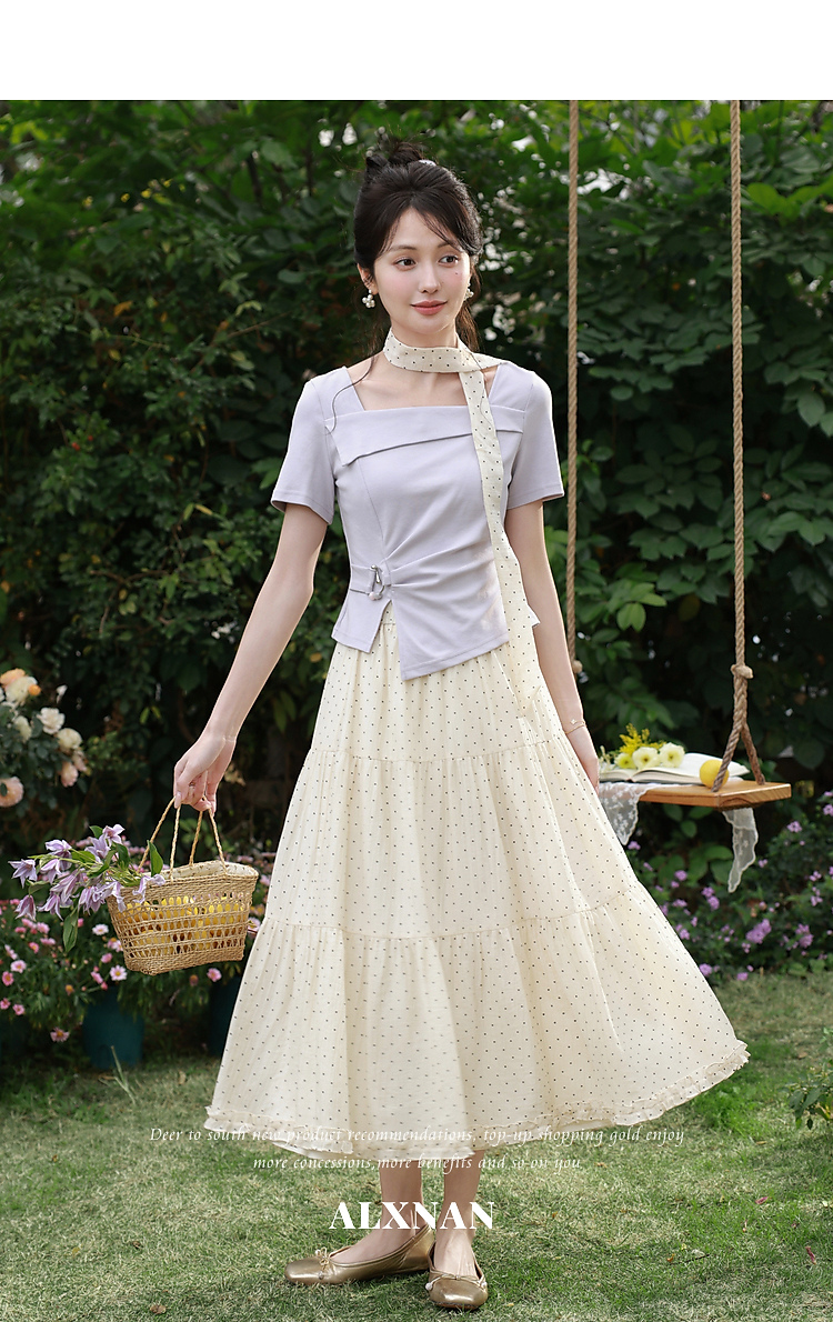 鹿向南「卢浮月桂」法式紫色T恤波点半身裙套装女夏季时尚两件套