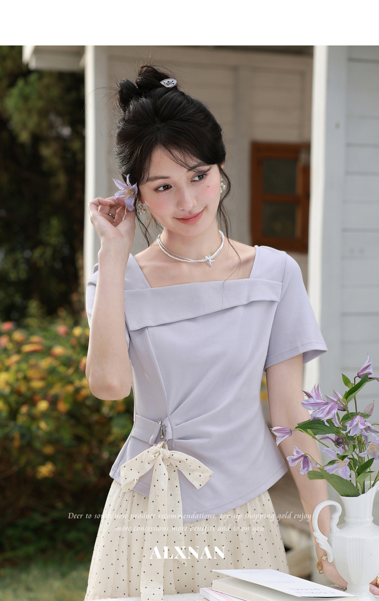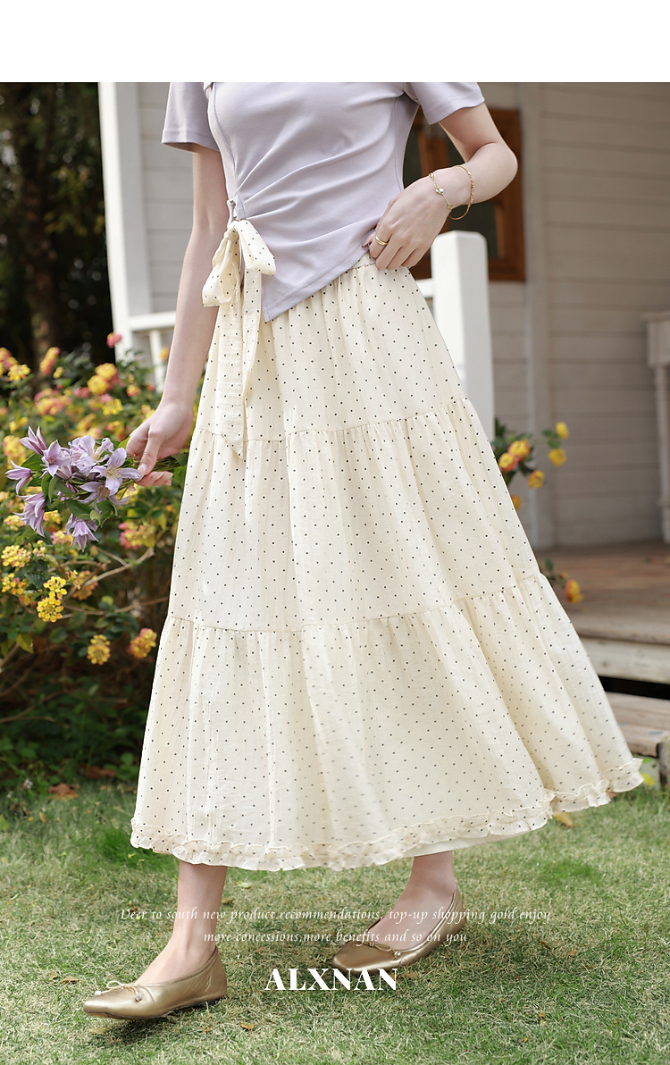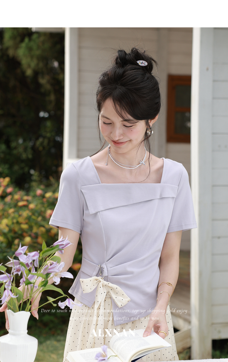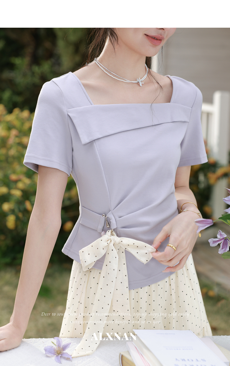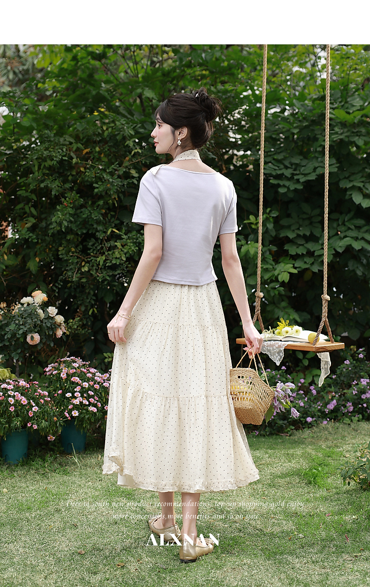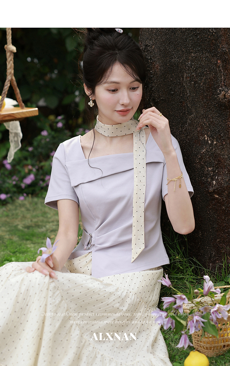 鹿向南「卢浮月桂」法式紫色T恤波点半身裙套装女夏季时尚两件套