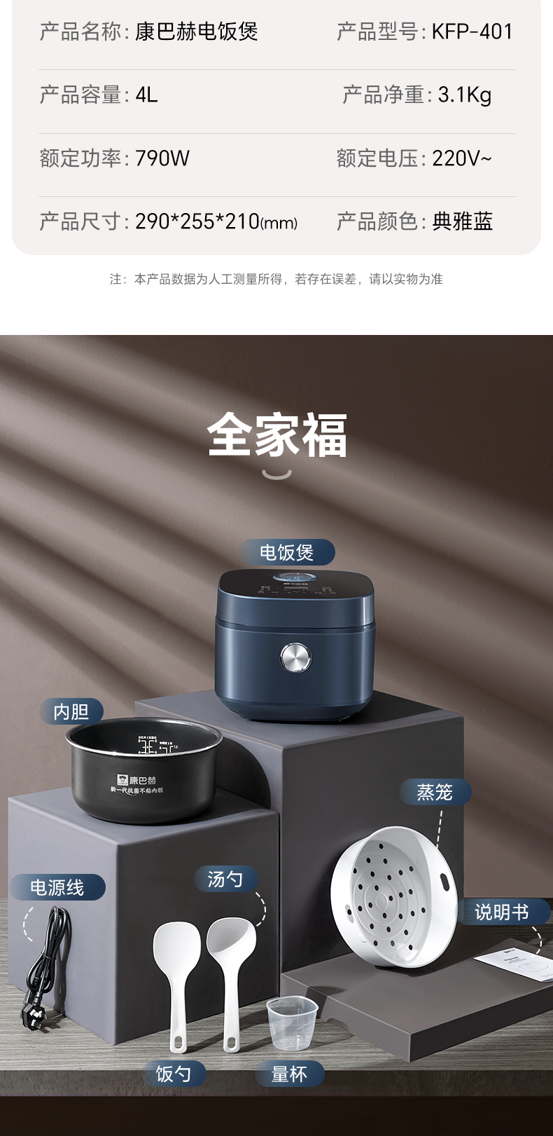 【防溢沸腾】康巴赫 旋风电饭煲 4L/台 焖香更锁水