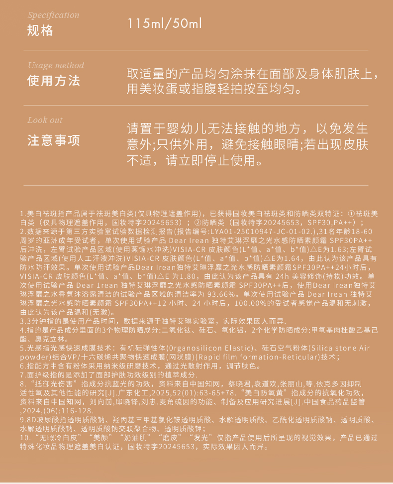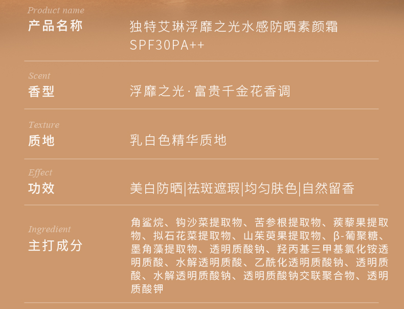 独特艾琳浮靡之光水感防晒素颜霜SPF30PA++