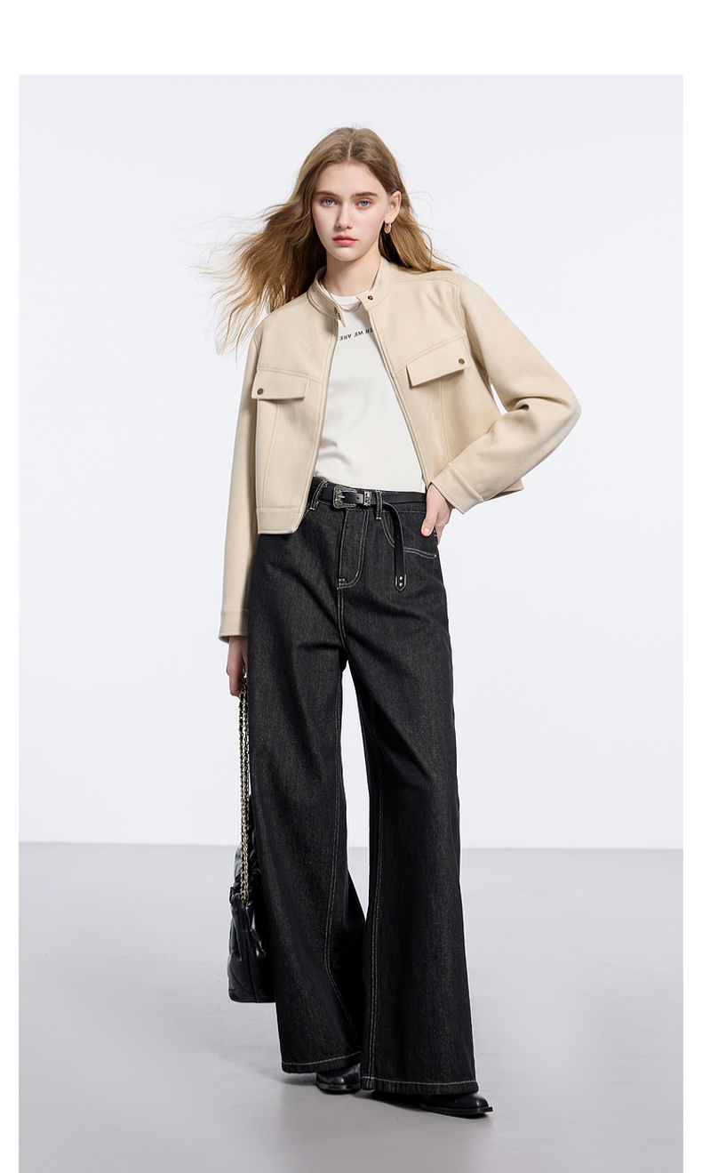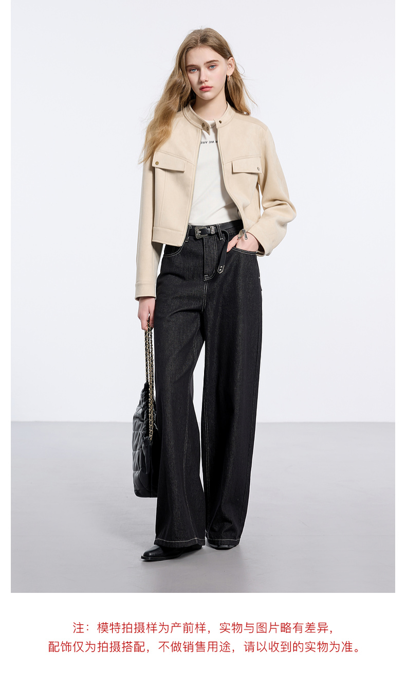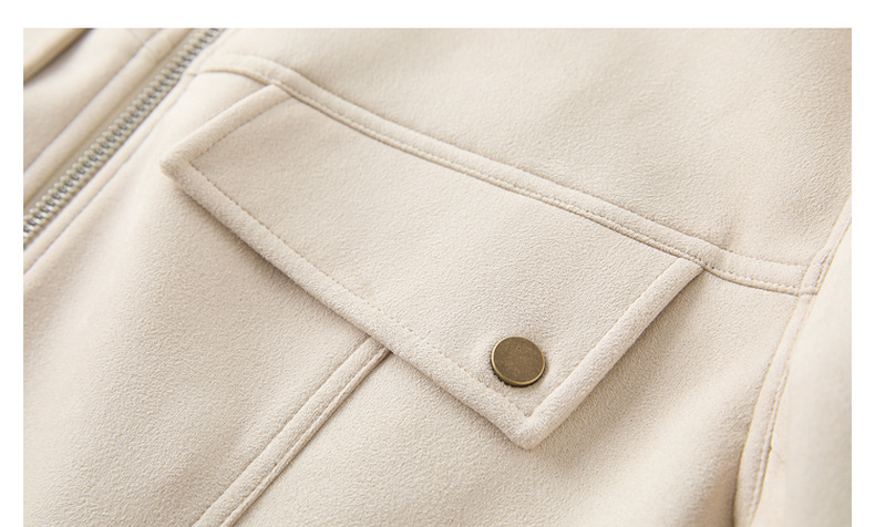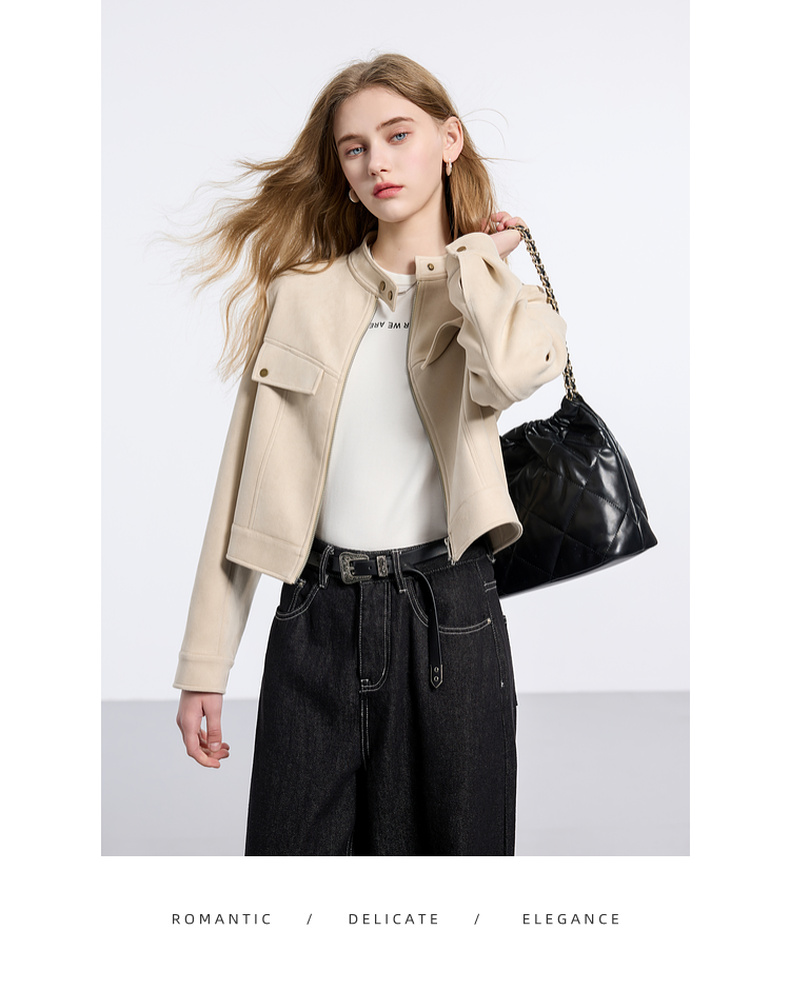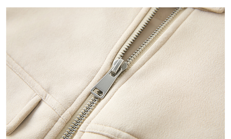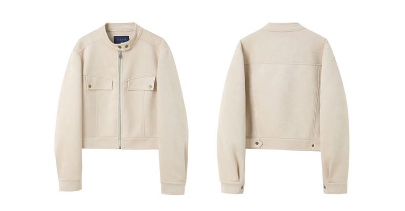 三彩2026春季新款宽松短款仿麂皮绒空气层外套简约夹克上衣M
