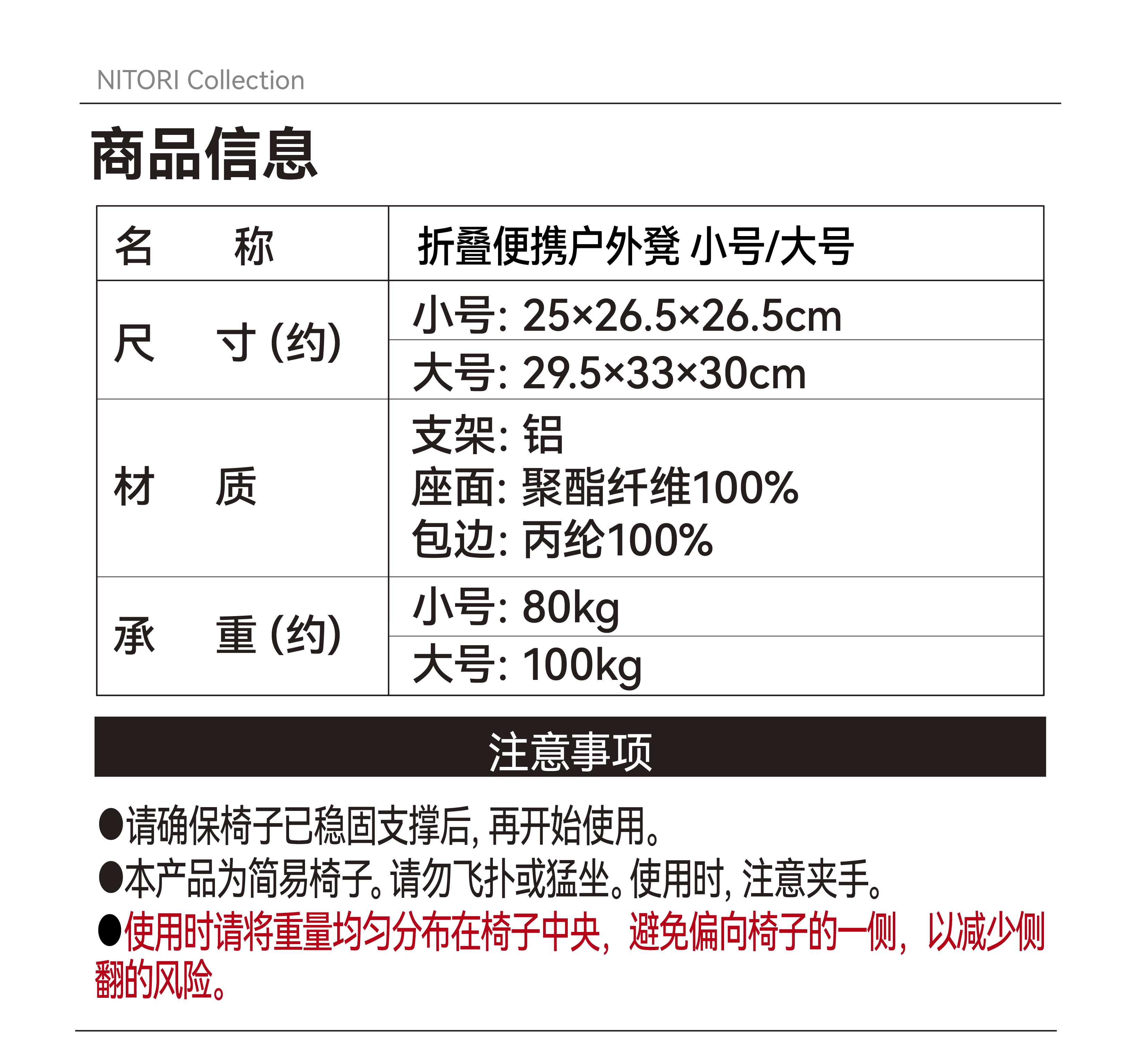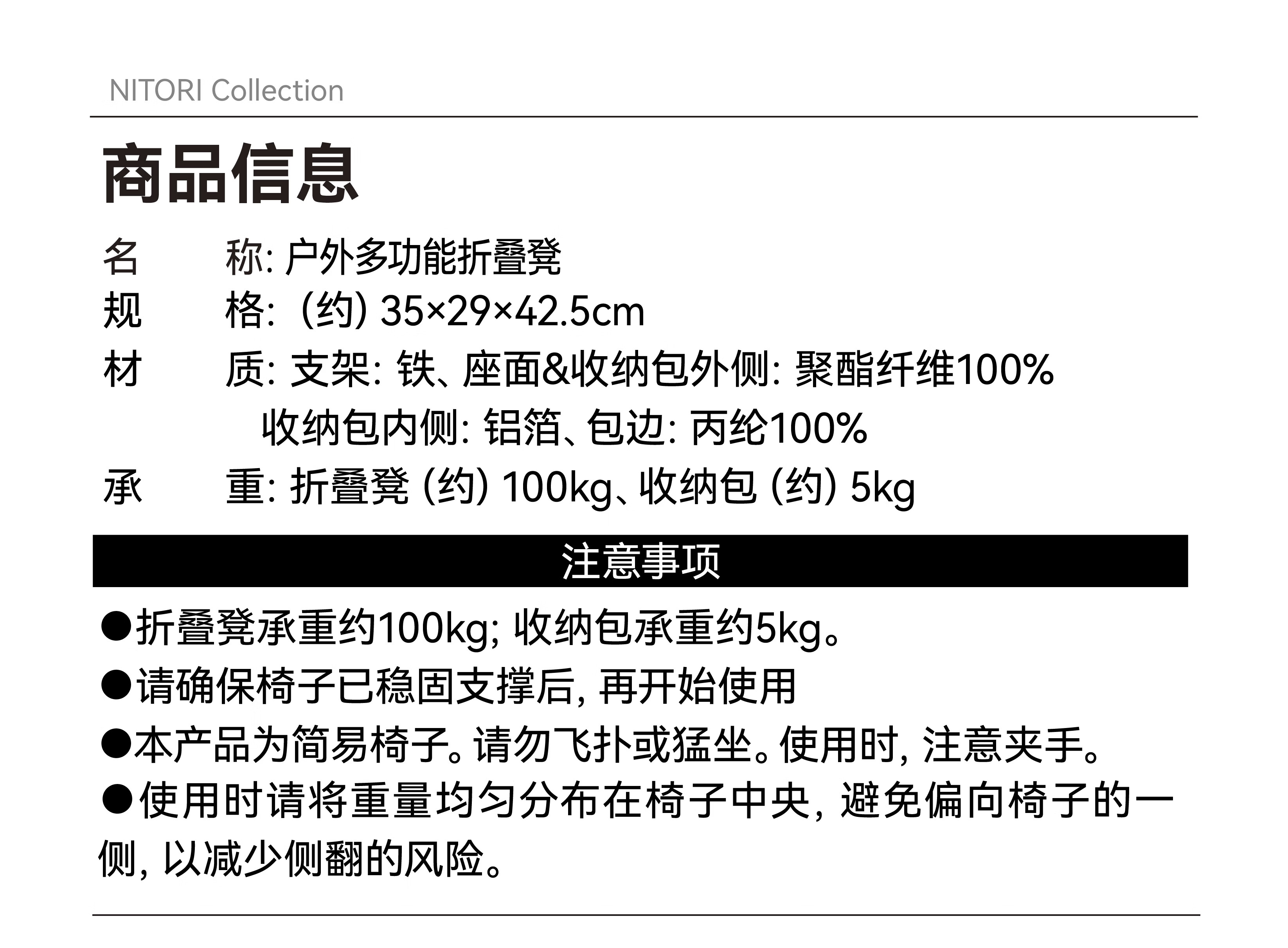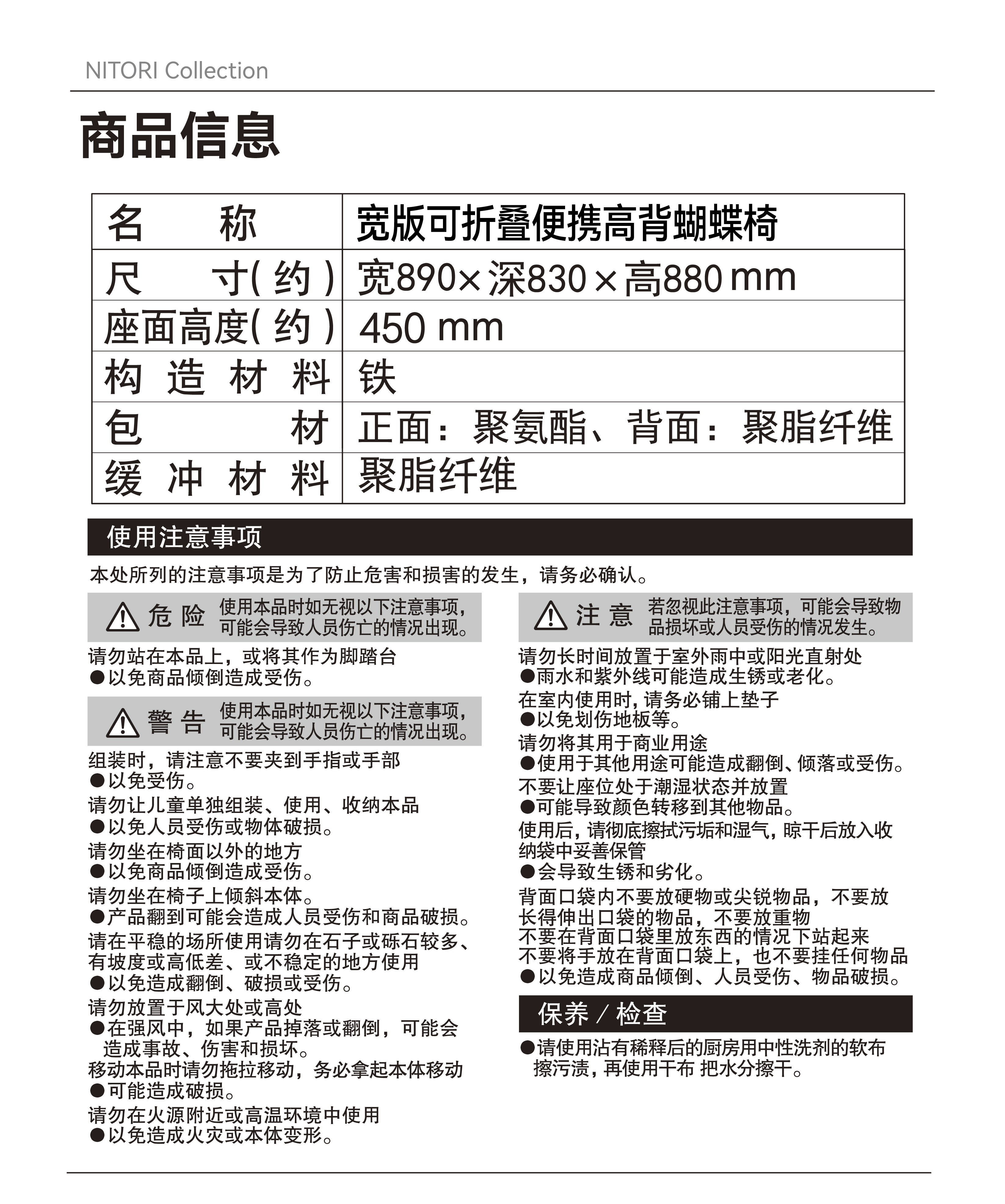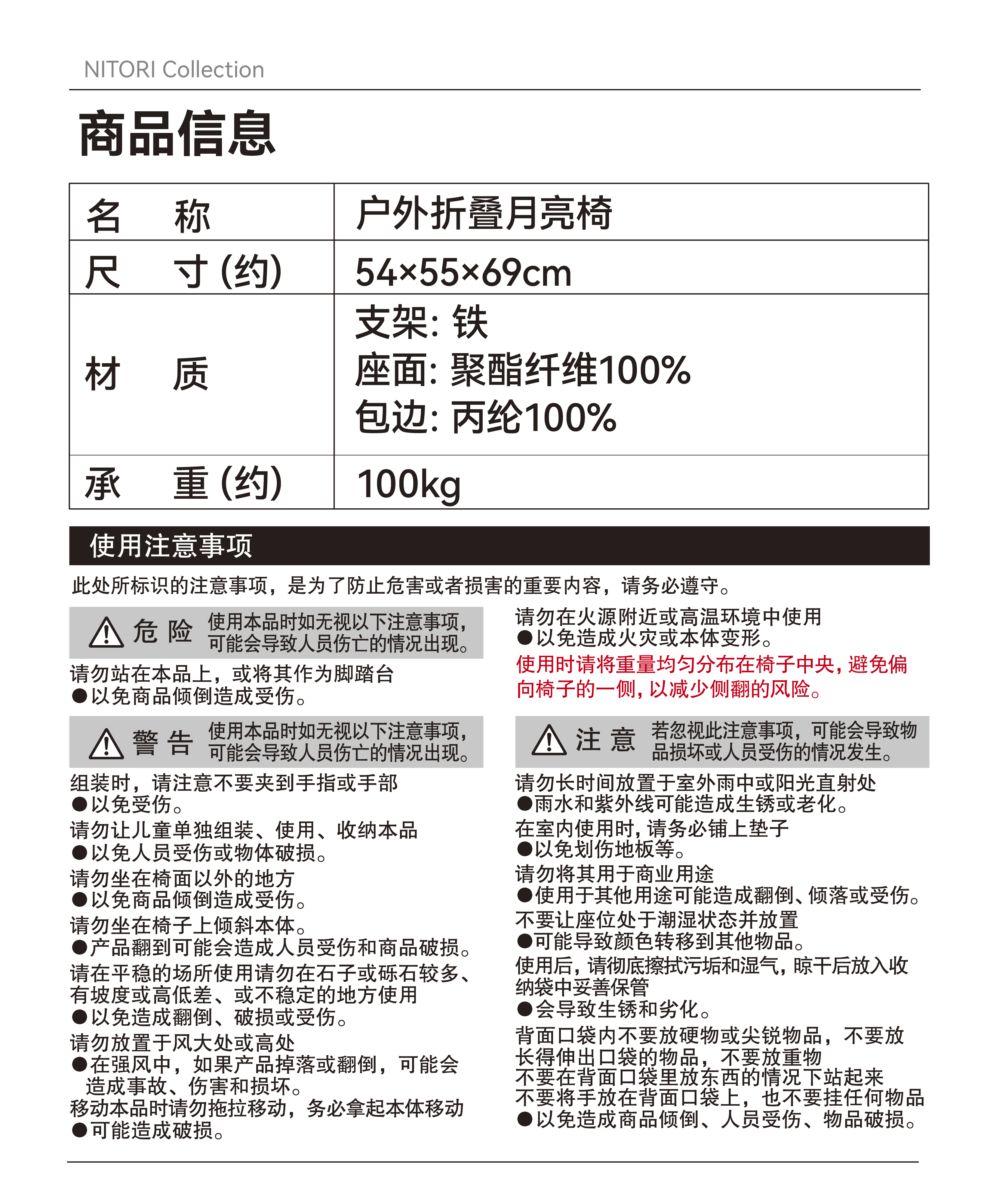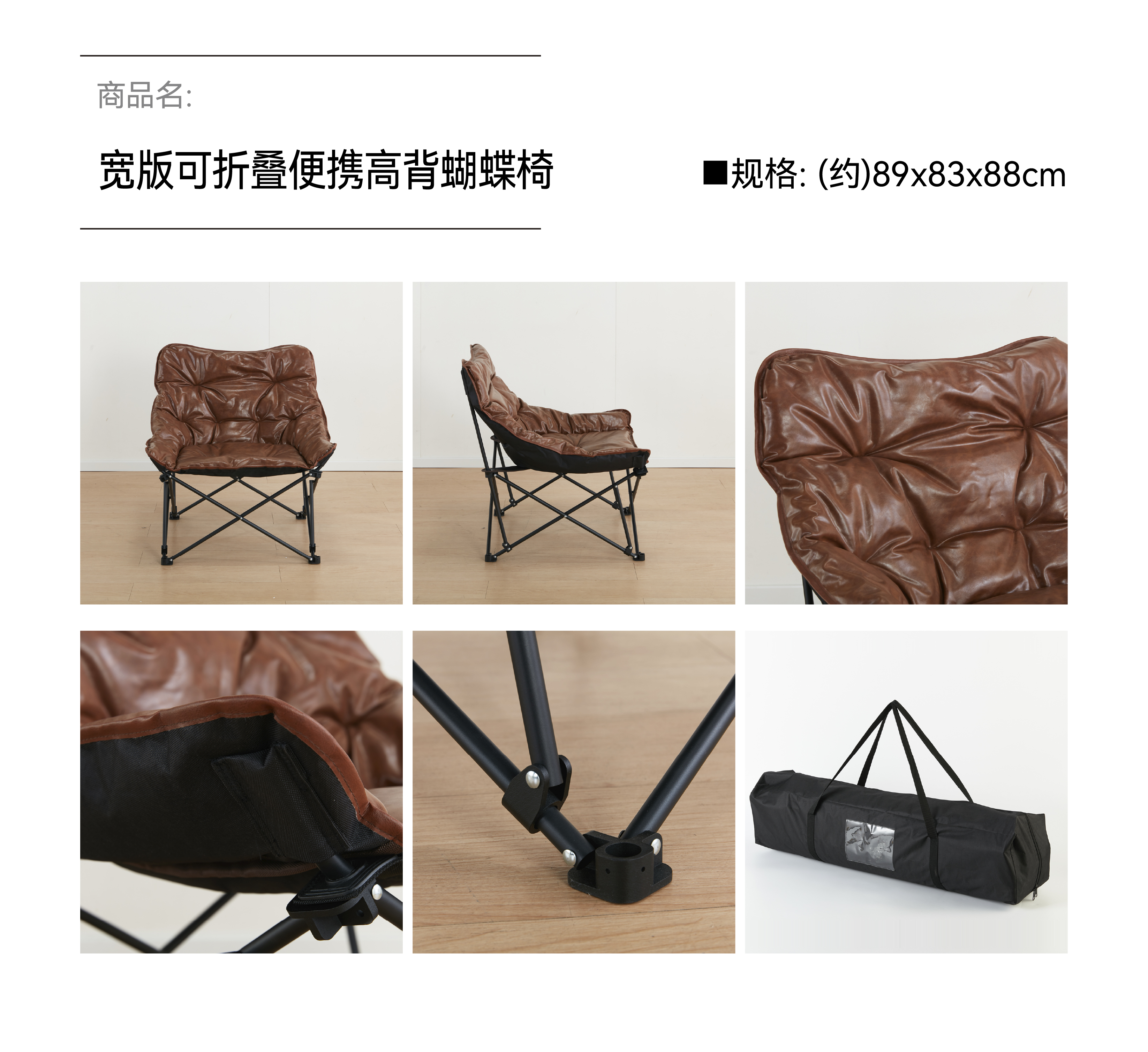 NITORI宜得利家居露营可折叠椅便携式复古高背蝴蝶椅慵懒风月亮椅折叠凳